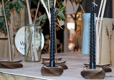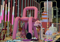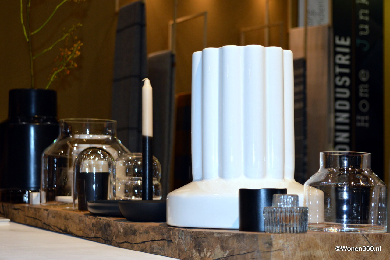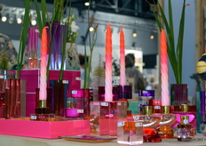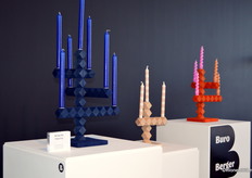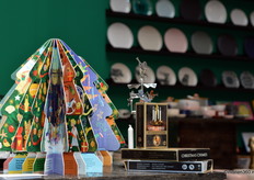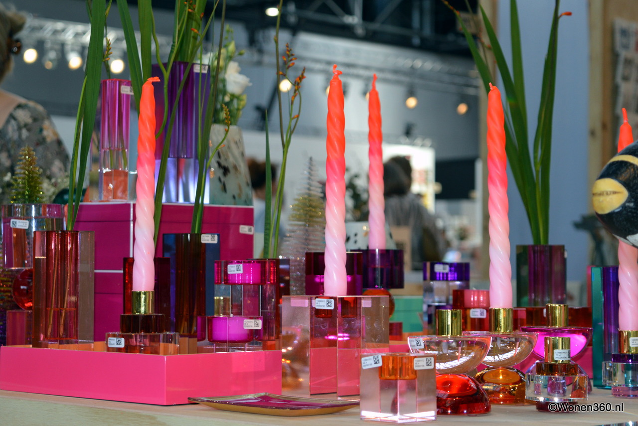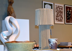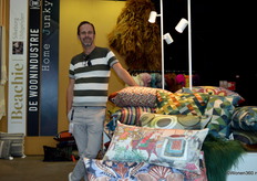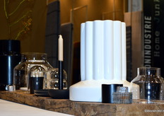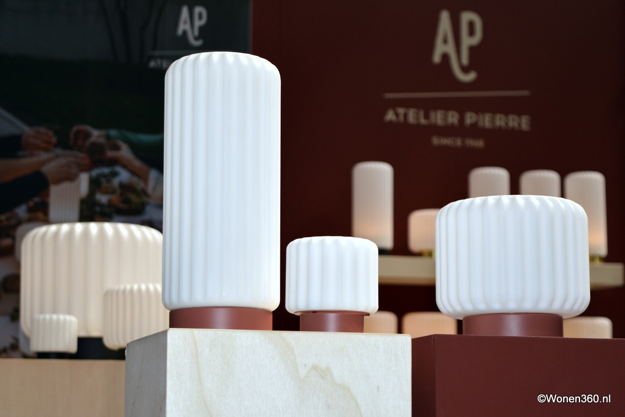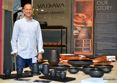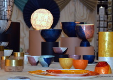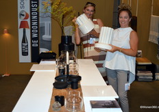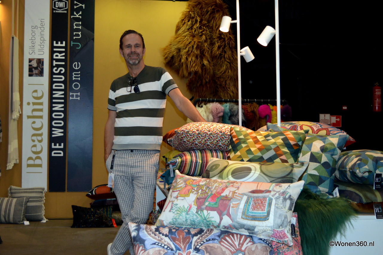 Ook Sompex stond op de gezamenlijke stand van een aantal exposanten uit De Woonindustrie. Robin Punt poseert naast de glanzende verlichtingscollectie die in samenwerking met Villeroy & Boch is gemaakt.