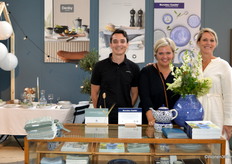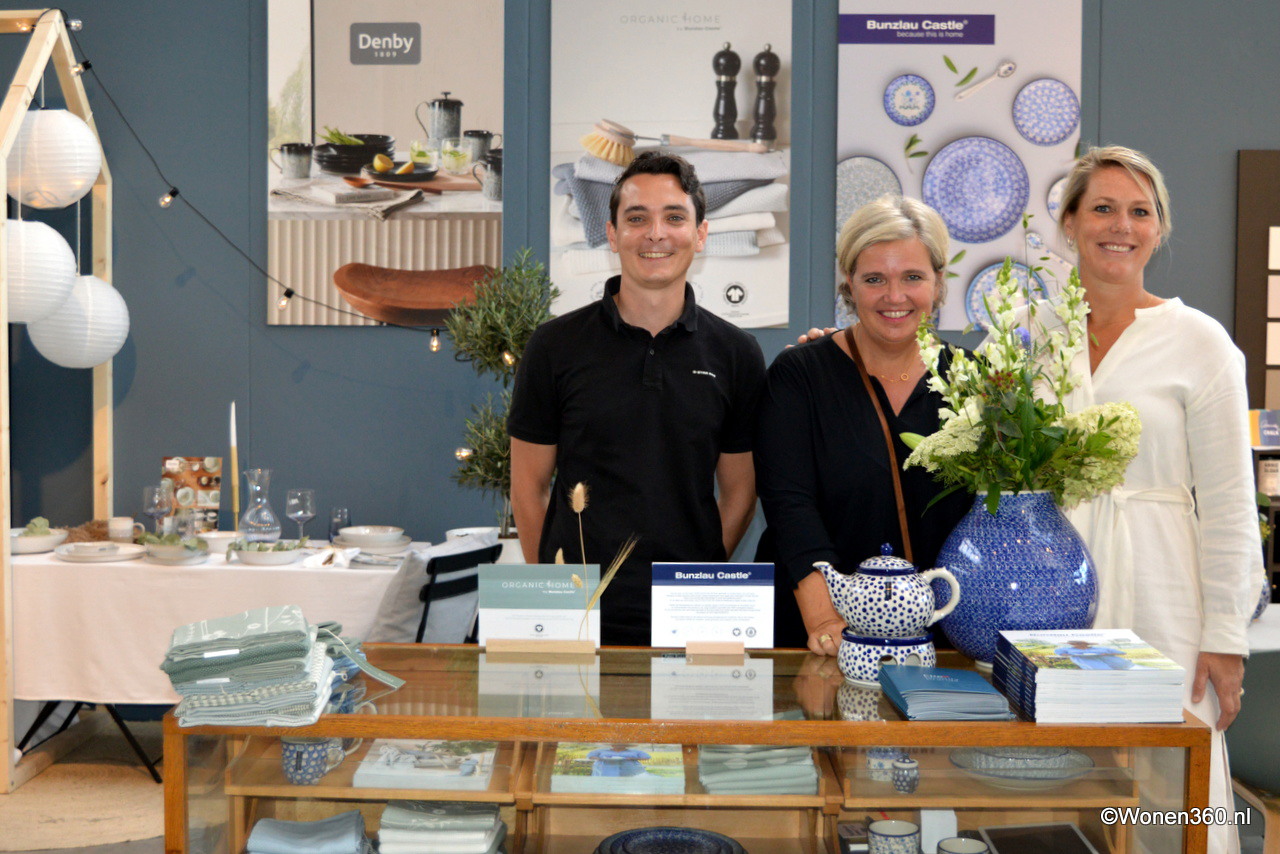 Rick Harink, Sanne te Brake en Ruchama Bakker van Clip Quality Brands. Op de achtergrond zijn de merken Denby, Organic Home en Bunzlau Castle te zien.