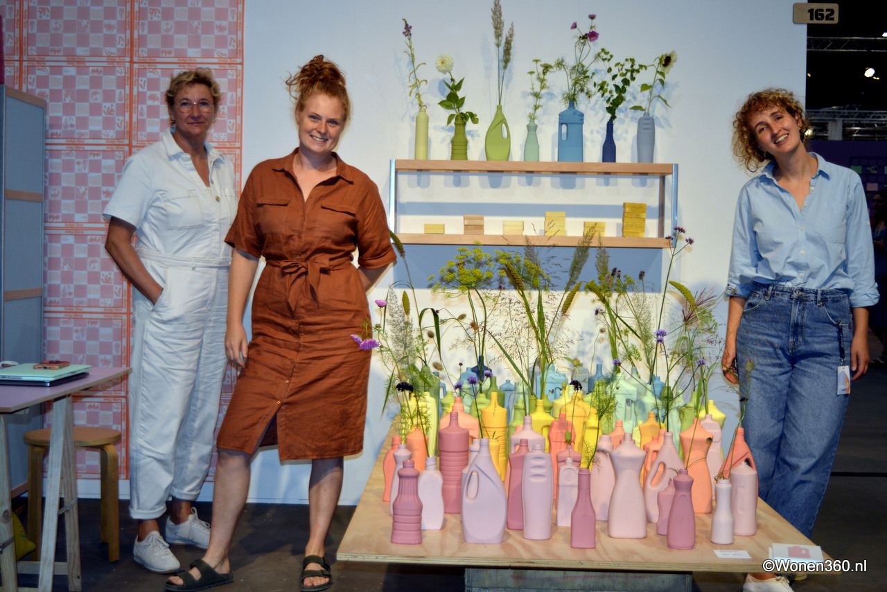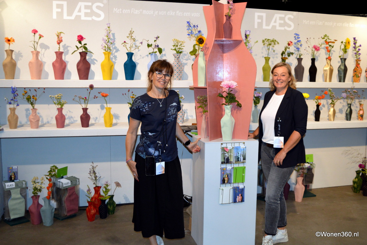 De vriendinnen en ondernemers Maartje Appels en Kaat Zeedijk. De FLÆS, een textielen hoes voor lege wijn-, bier- en frisdrankflessen, werd onder de aandacht gebracht.
