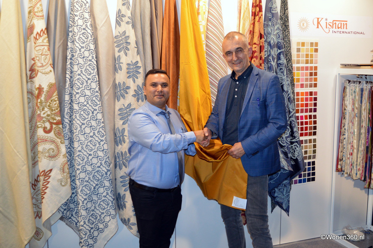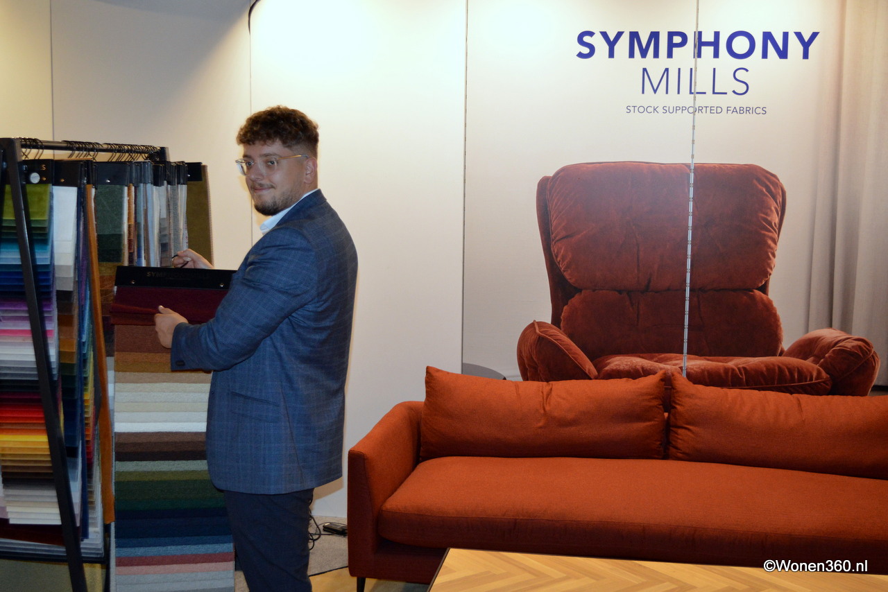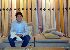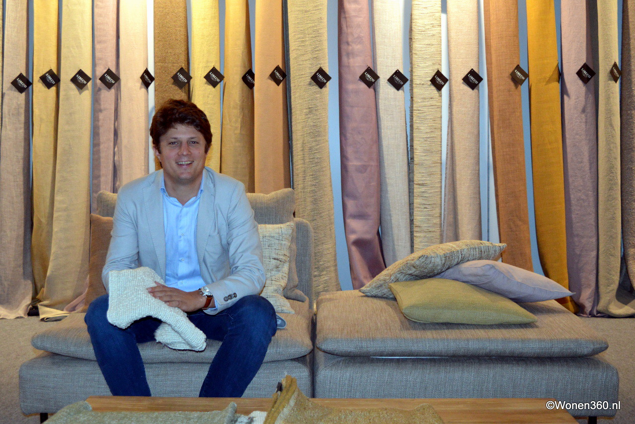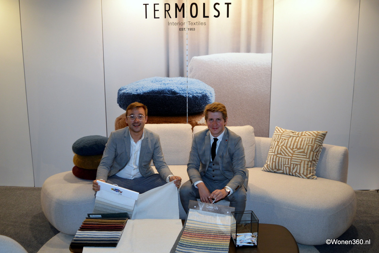 Tom Bels heeft een deel van de Vivalife collectie in zijn hand. De easyclean en kleurvaste stof Cocoon (zoals de bank) is de nieuwste in de collectie. Vlad Bulanov toont de Linen Life collectie. Deze is, net zoals alles dat Termolst lanceert, volledig gemaakt van ecologische producten.
