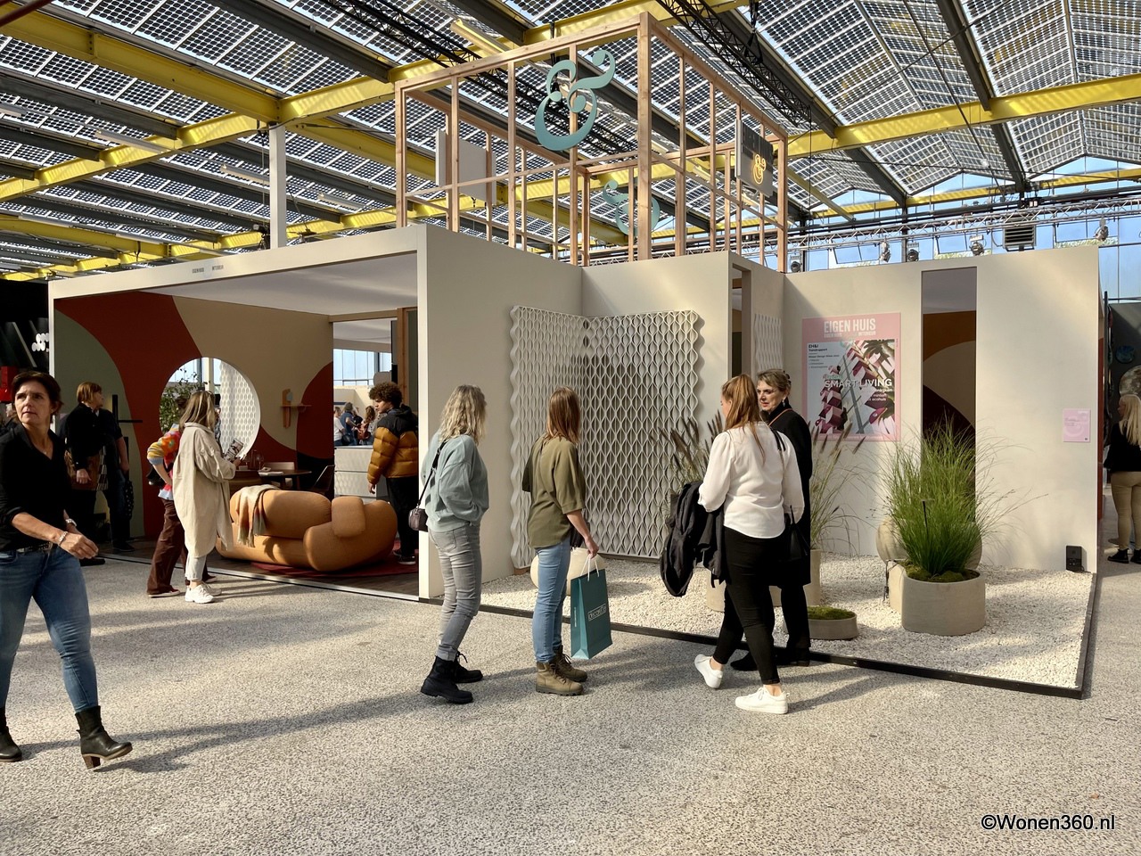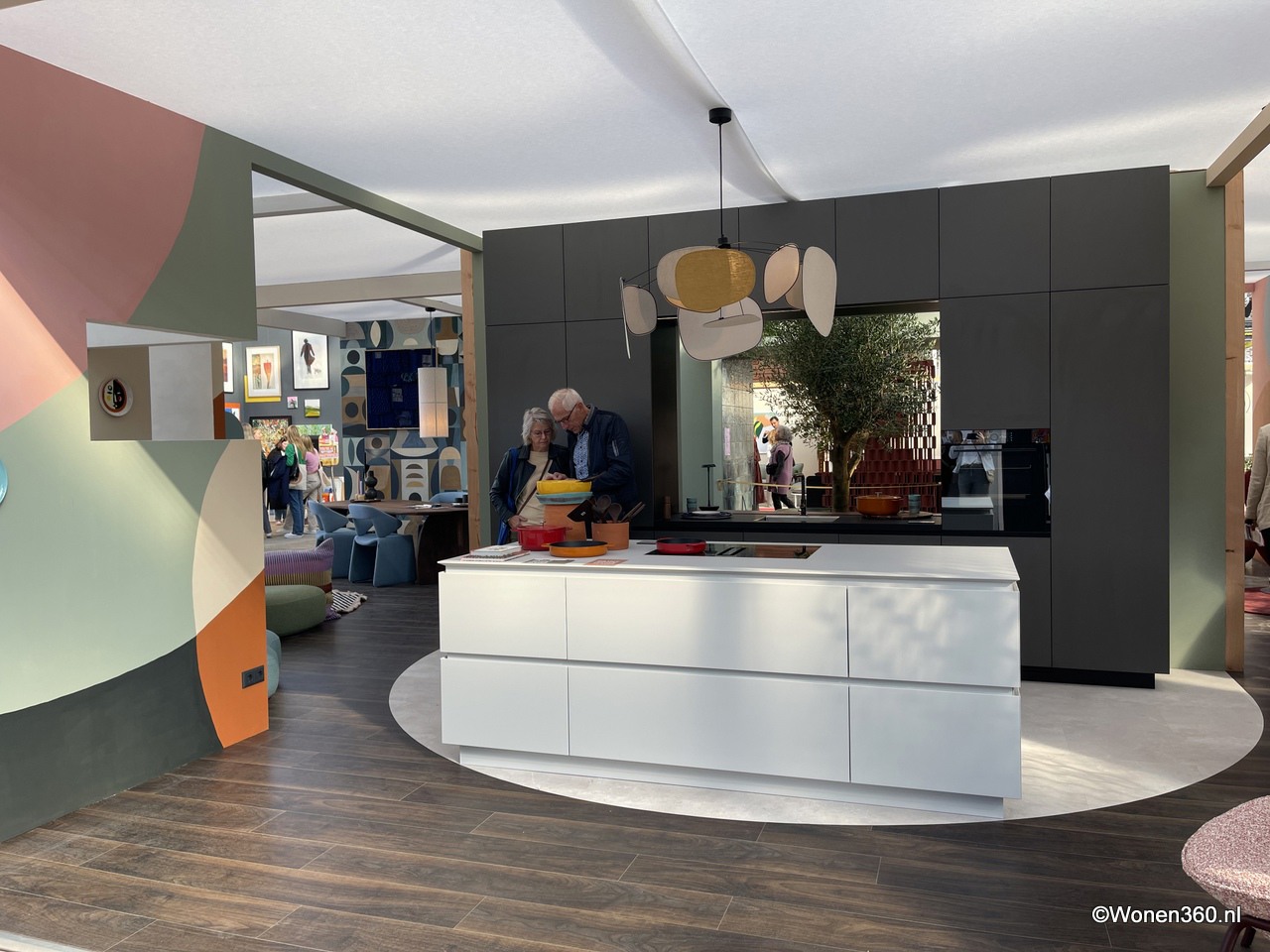 Ook de modulaire houten kast tegen de wand was niet te missen en is verkrijgbaar in allerlei onderdelen.