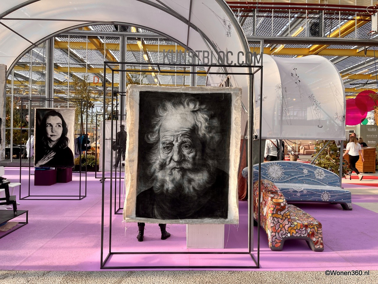 Alle kunstwerken in de slaapkamer van het inspiratiehuis kwamen via de online gallery Oode.