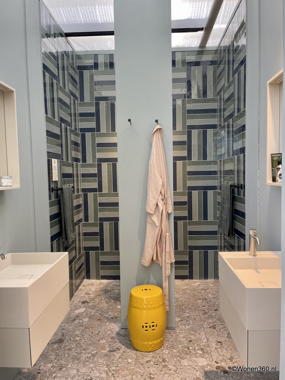 Wandtegel Marrakesh uit de vtwonen collectie van Douglas & Jones in kleur oceanblue glans, seagreen glans en armygreen glans.