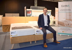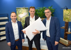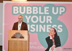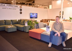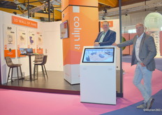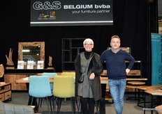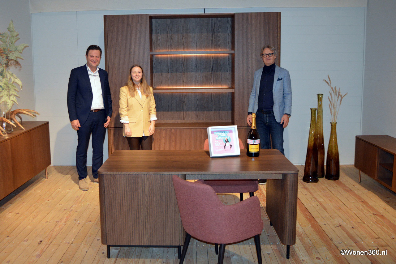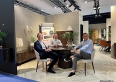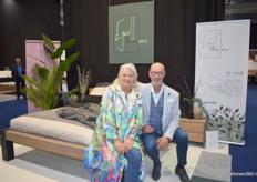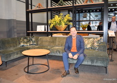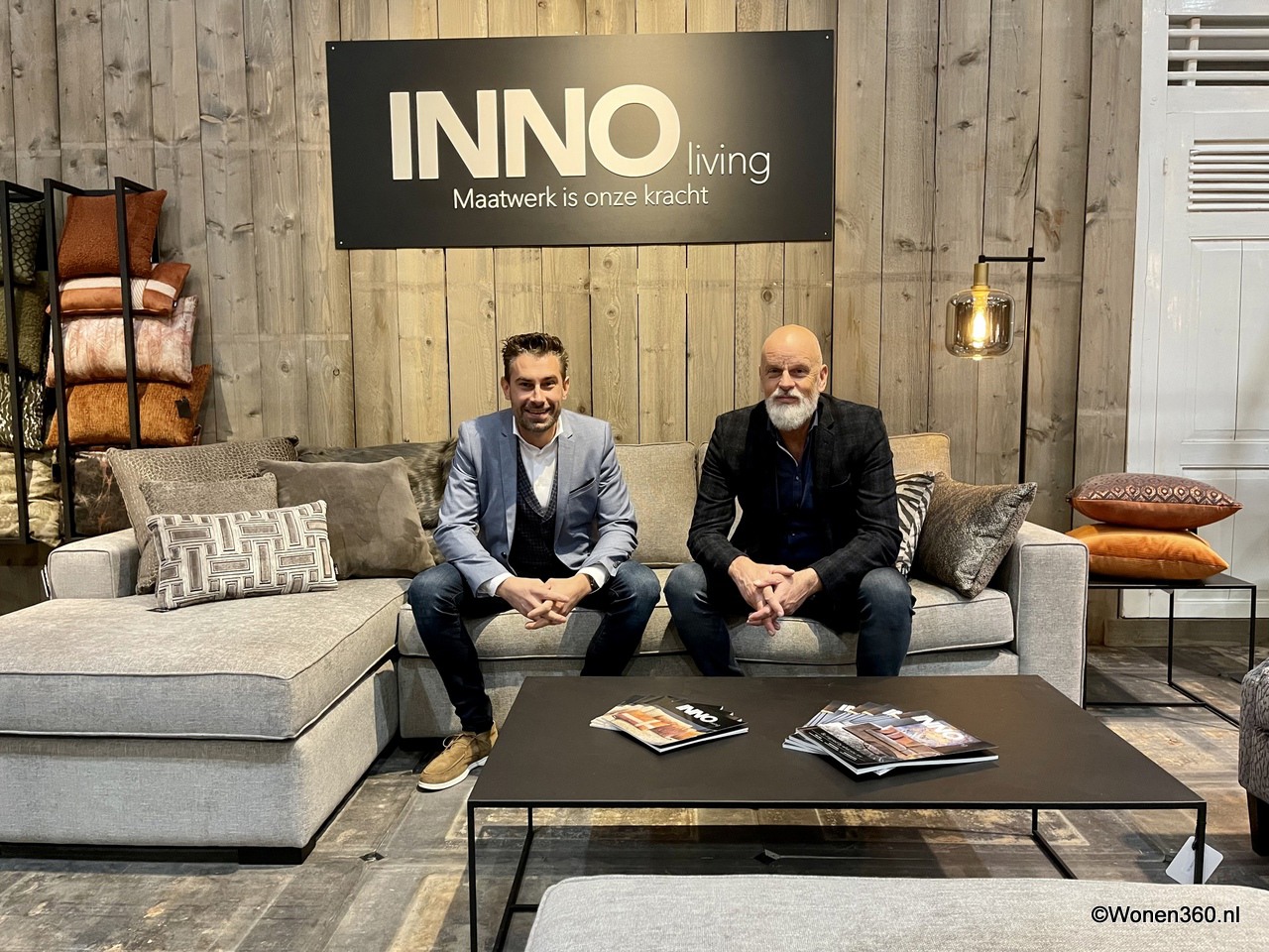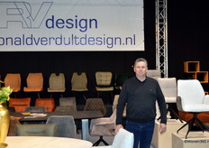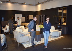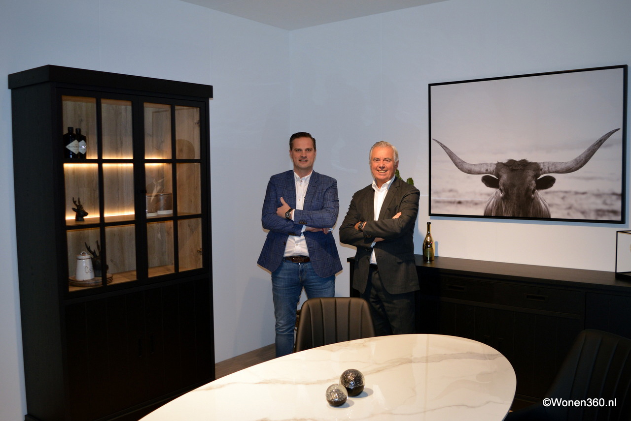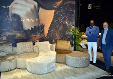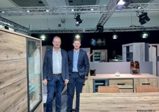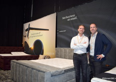 Andreas Knippert en Huib Heldens in de vernieuwde stand van zitmeubelfabrikant ROM. Links is het zevende model uit de Rom1961 collectie te zien: De Matheo.