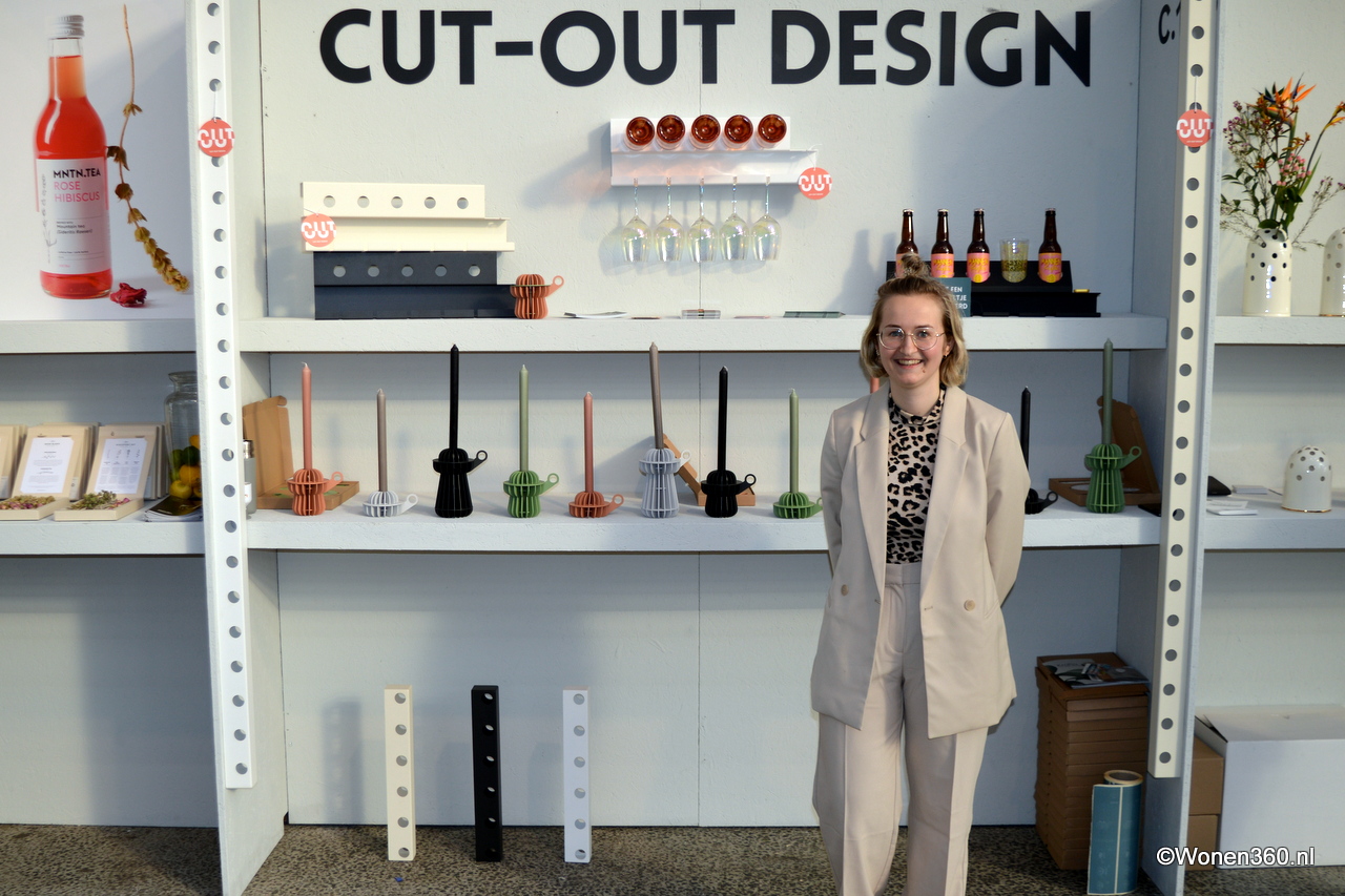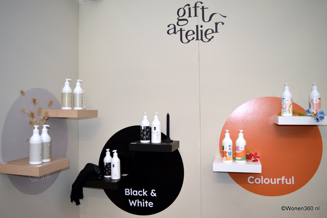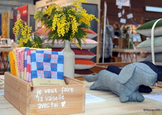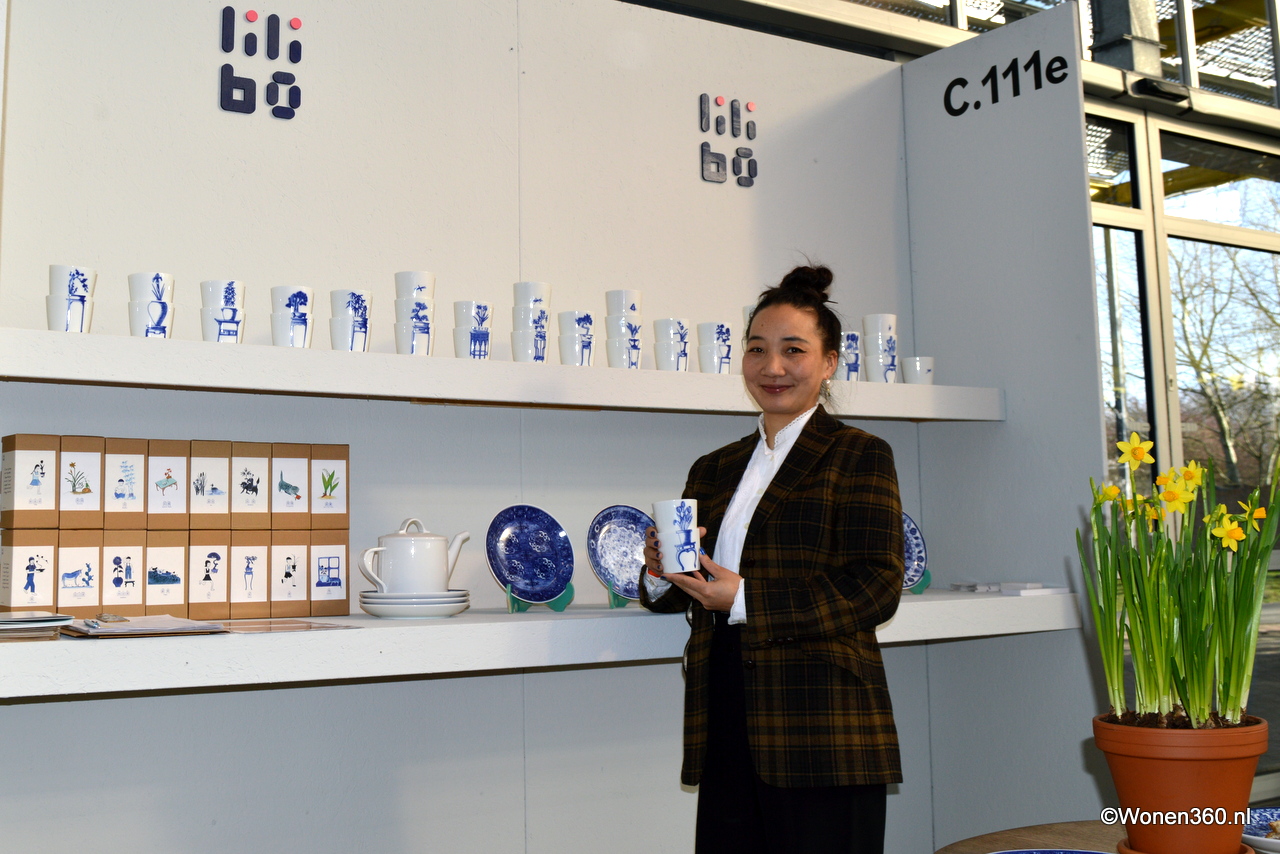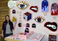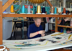 Achter Karen Vollmuller is de stitched art collectie te zien. De handgemaakte producten zijn herkenbaar door het Lemonwise handschrift.