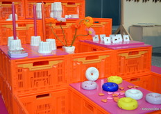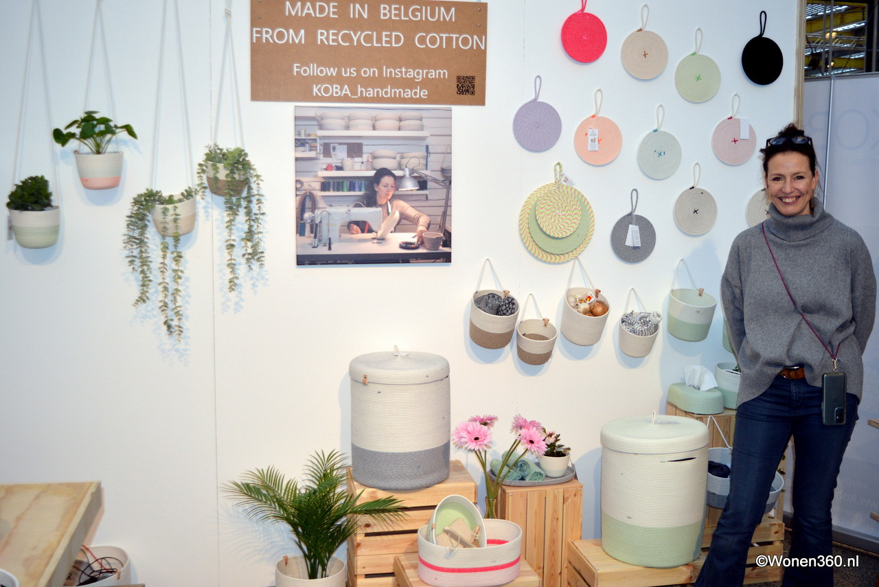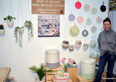 Koba Quisquater staat naast de handgemaakte manden met een katoenen koord. Drie nieuwe kleuren werden er toegevoegd aan het assortiment.