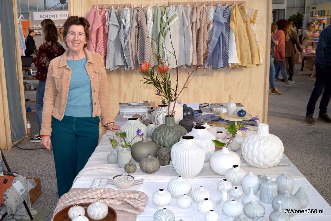Ozlem Kilic en Azra Cetin tonen op de beurs niet alleen handgemaak keramiek, maar ook een nieuwe collectie kussens. Ontworpen in Amsterdam, gemaakt in Turkije.