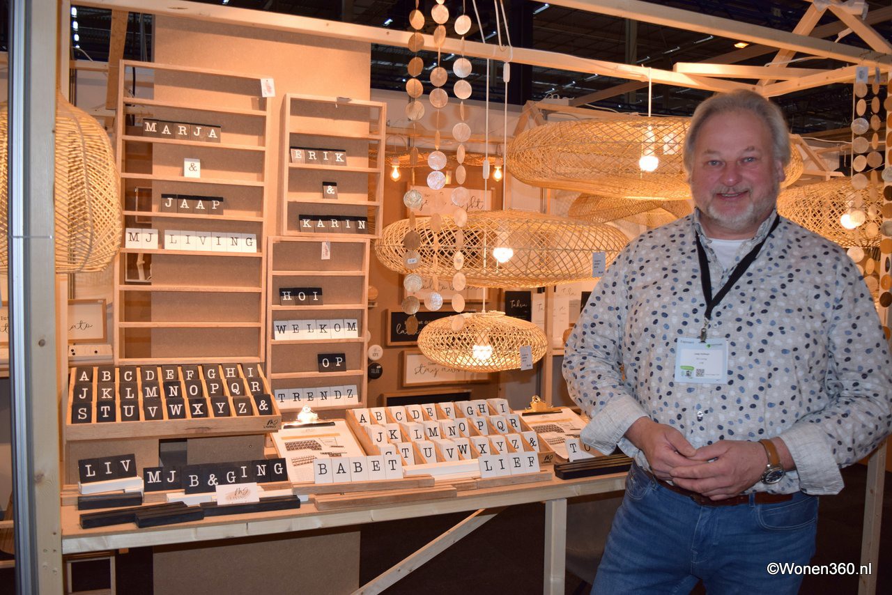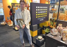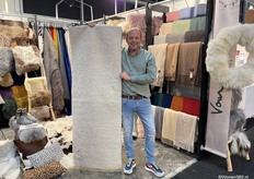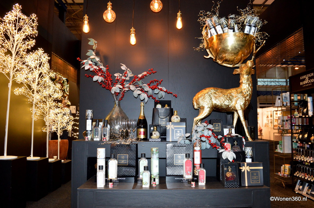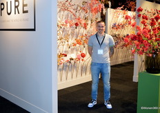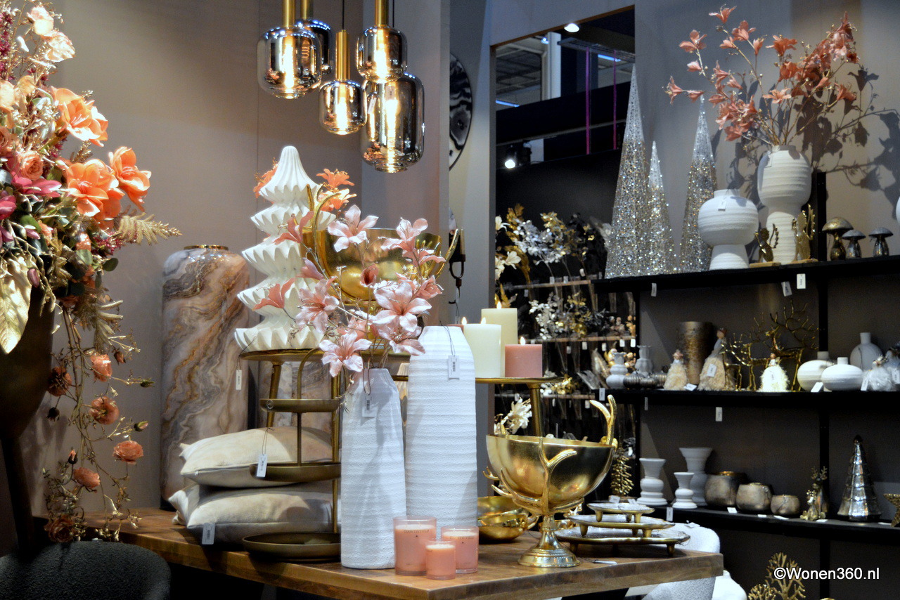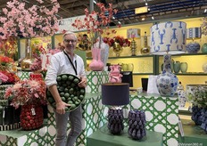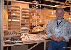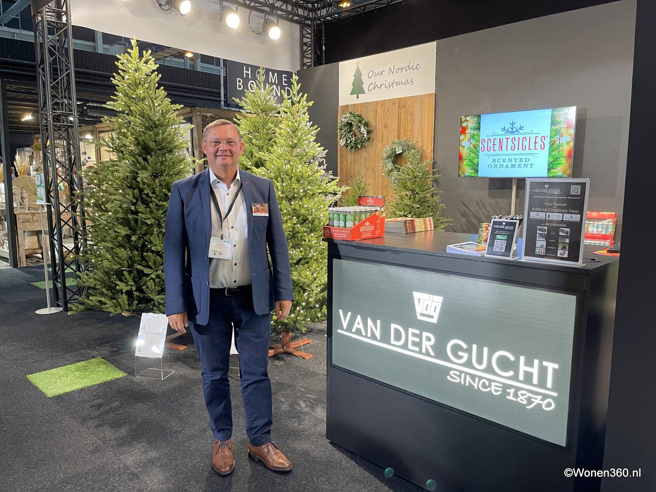 Een grote witte kerstboom vol nieuwe kerstdecoratie pronkt naast Joost van der Vlugt op de stand van Mansion Atmosphere.