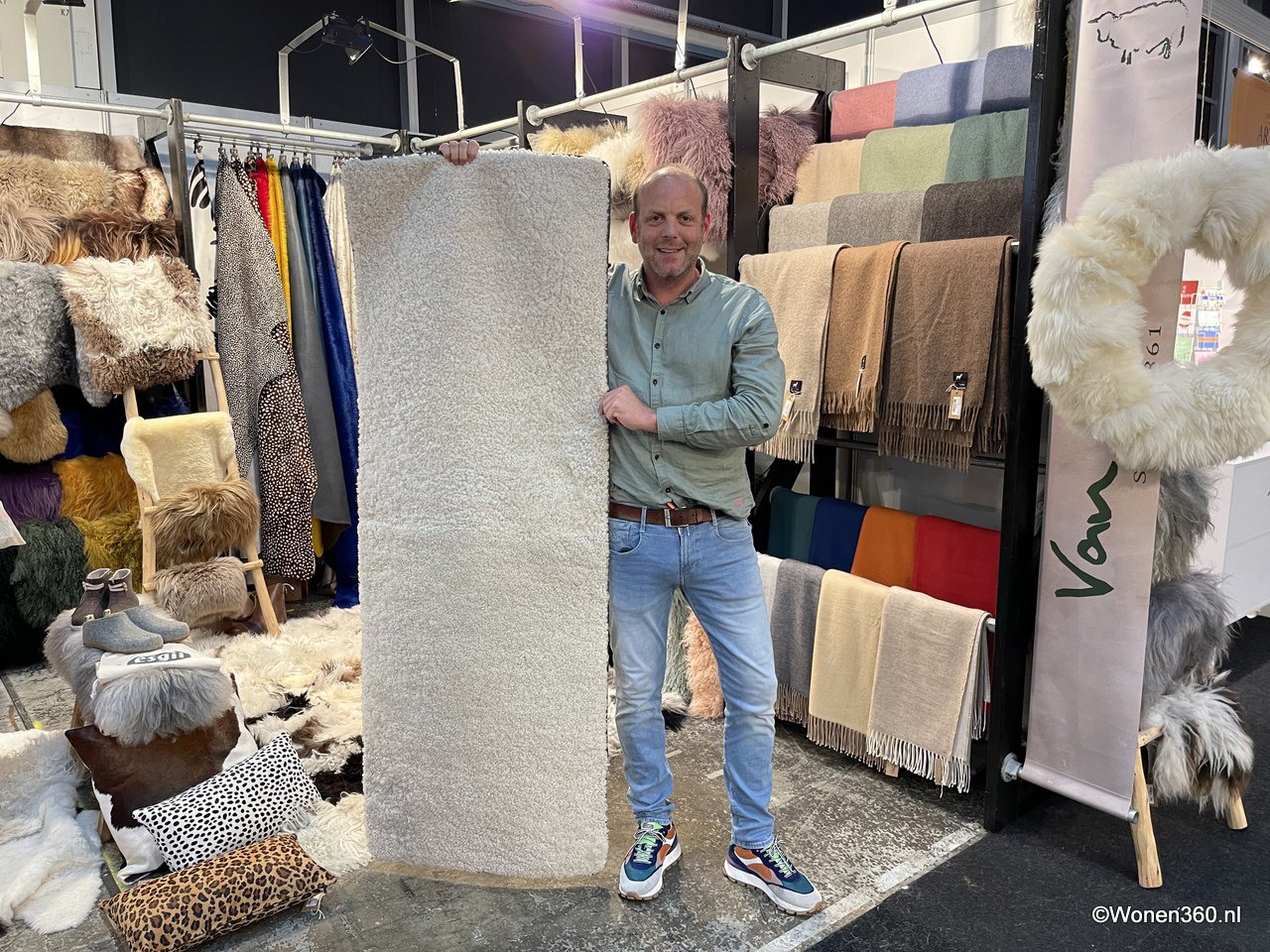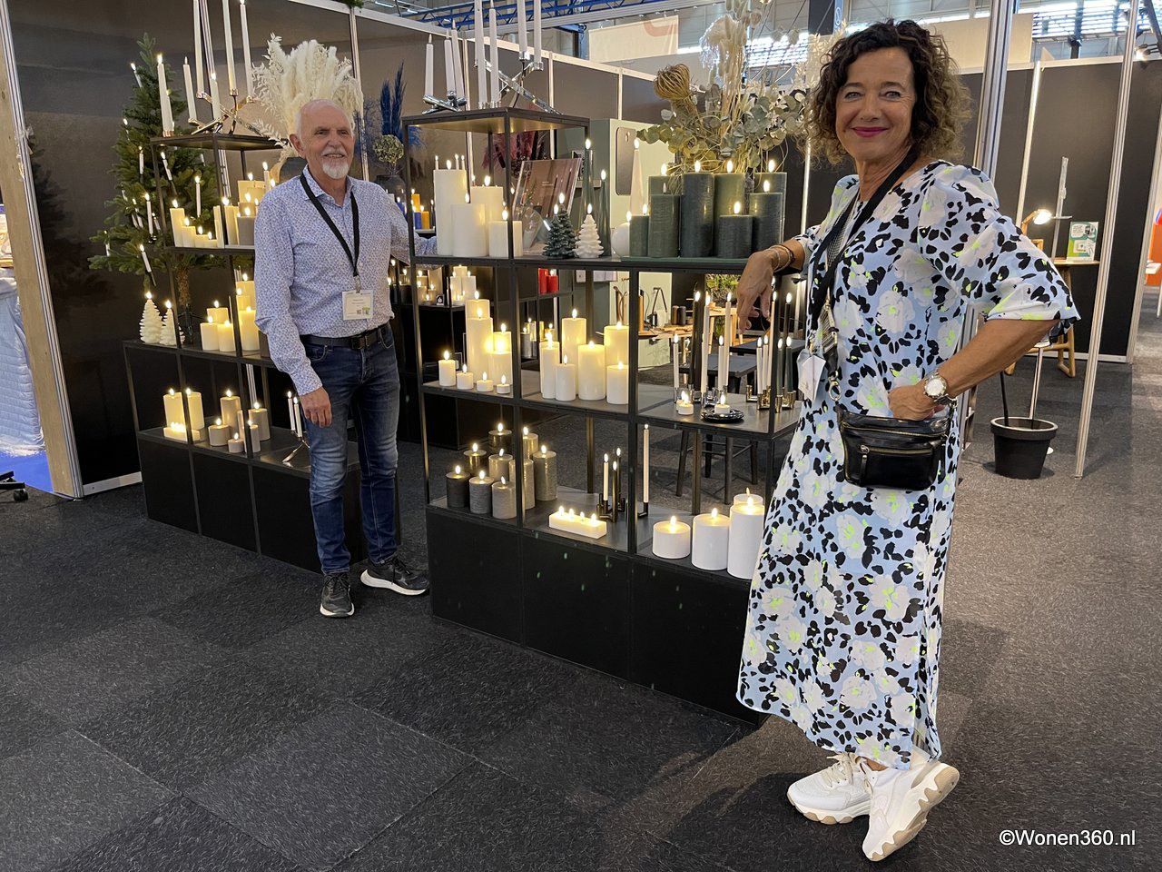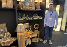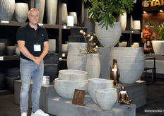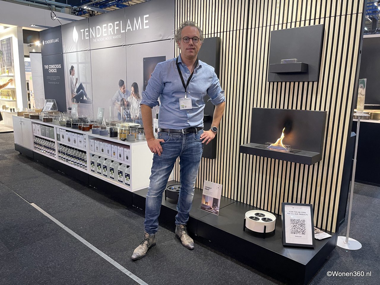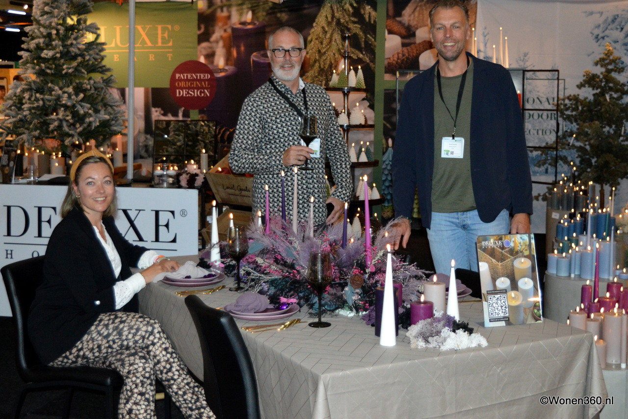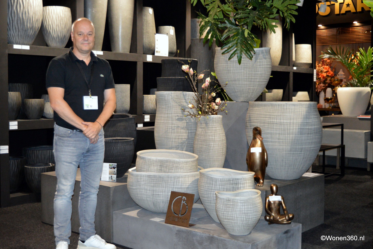 Een grote witte kerstboom vol nieuwe kerstdecoratie pronkt naast Joost van der Vlugt op de stand van Mansion Atmosphere.