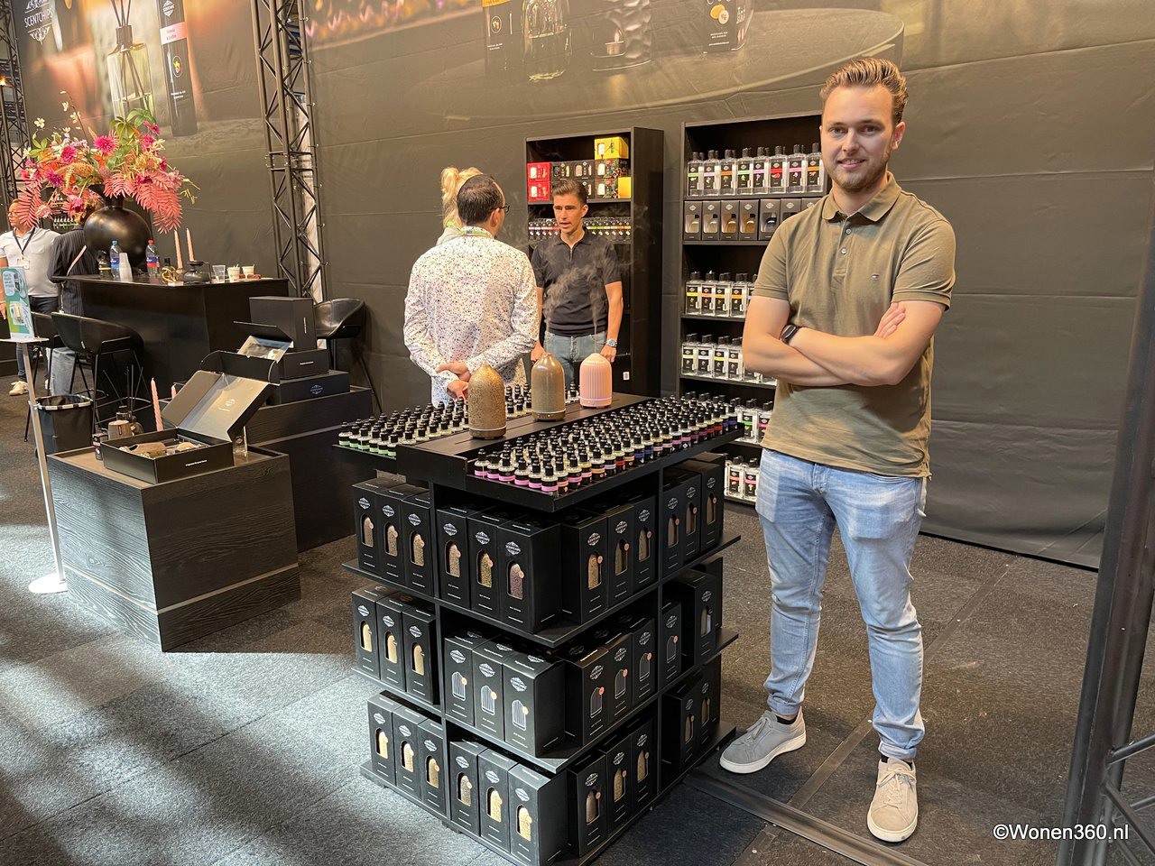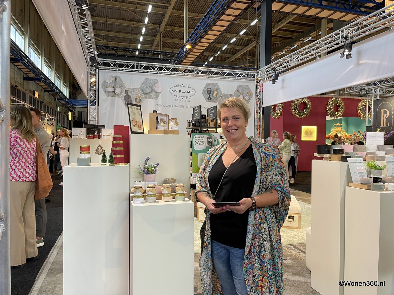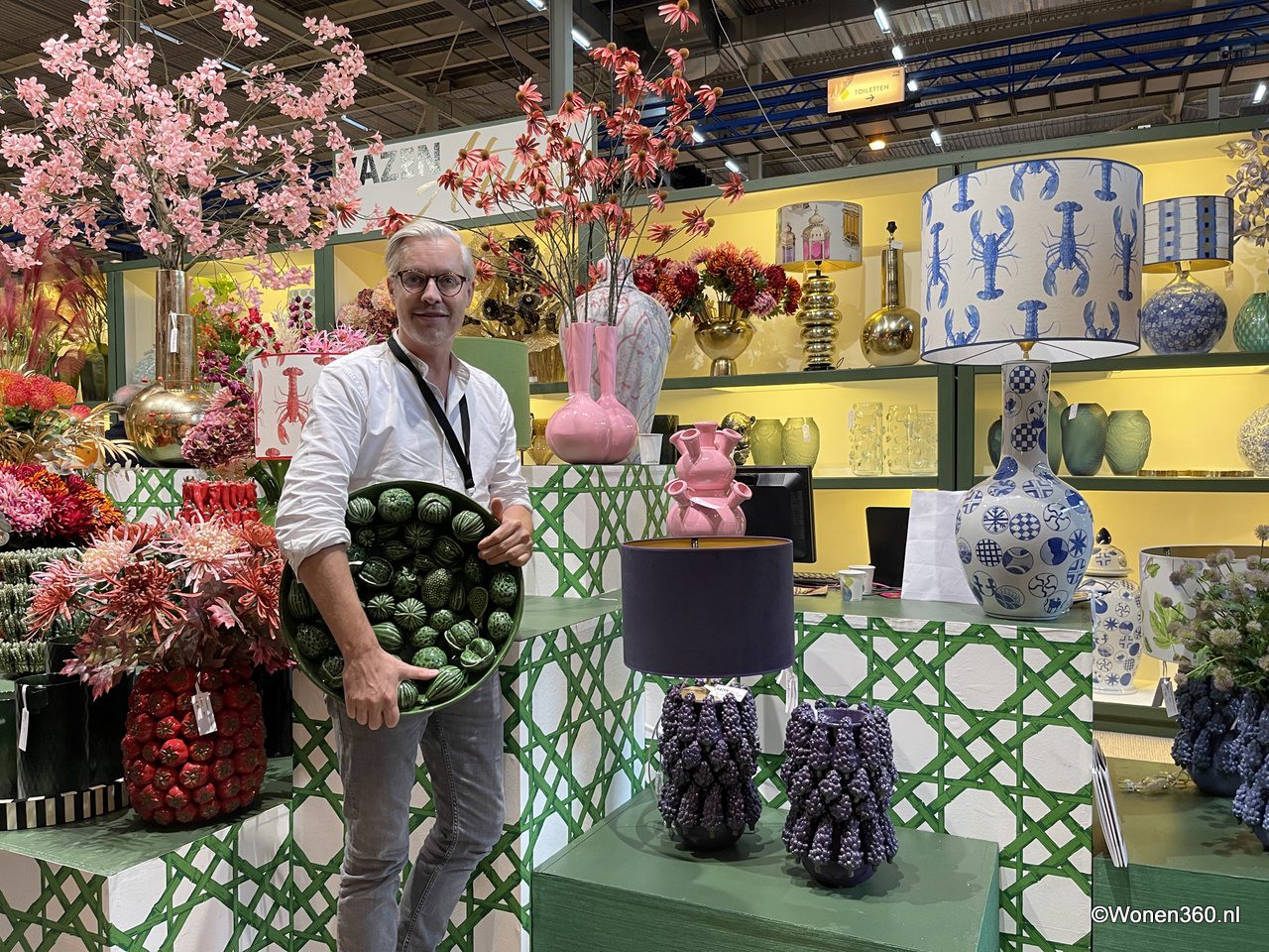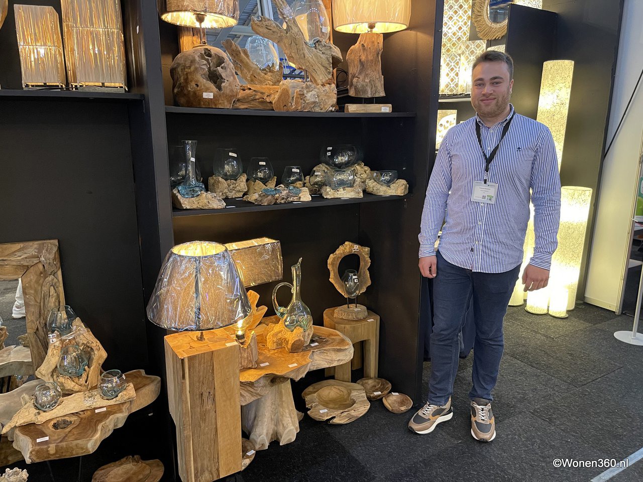 Een grote witte kerstboom vol nieuwe kerstdecoratie pronkt naast Joost van der Vlugt op de stand van Mansion Atmosphere.
