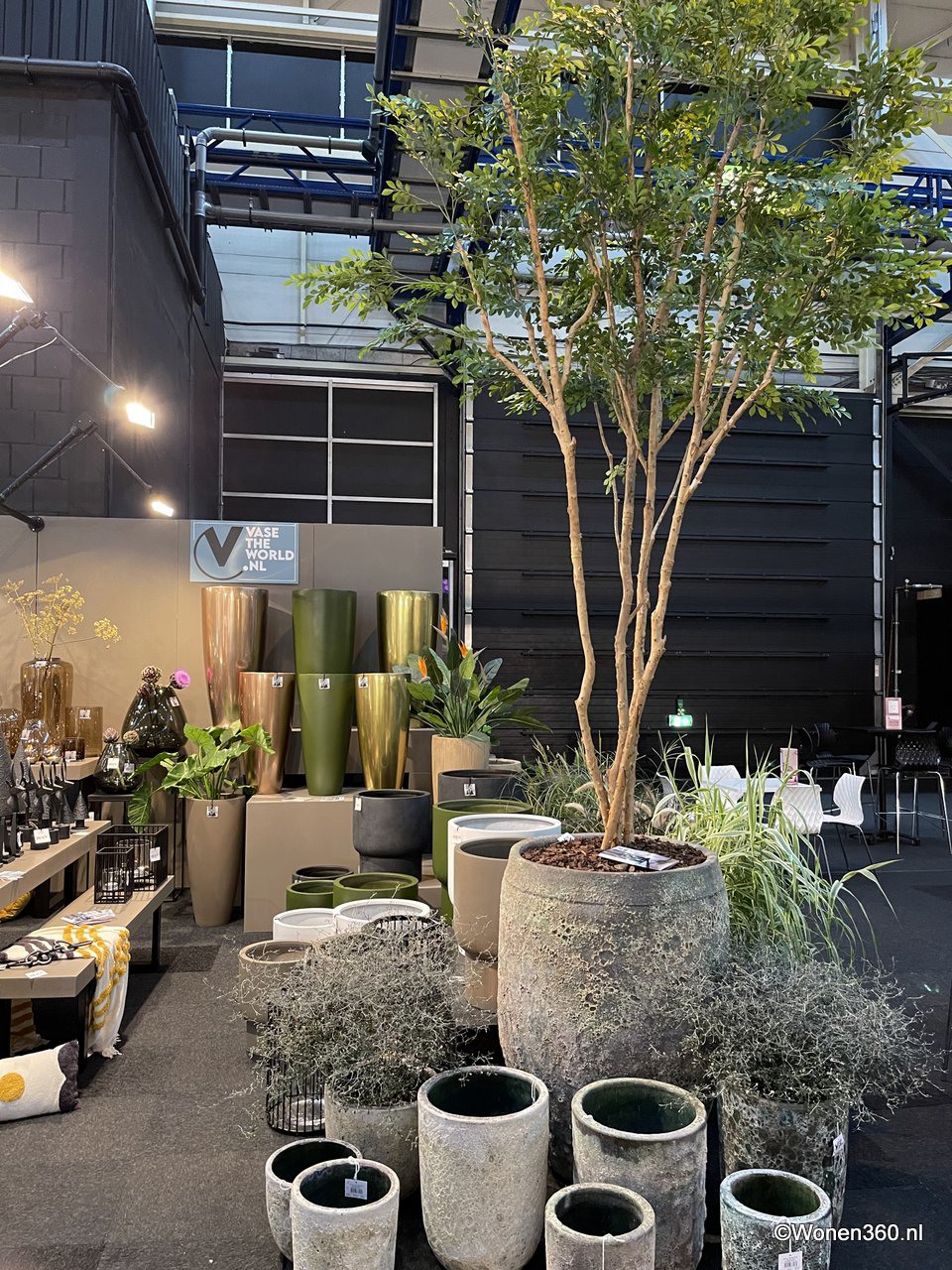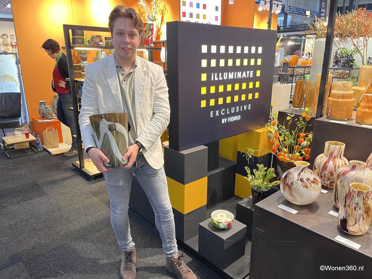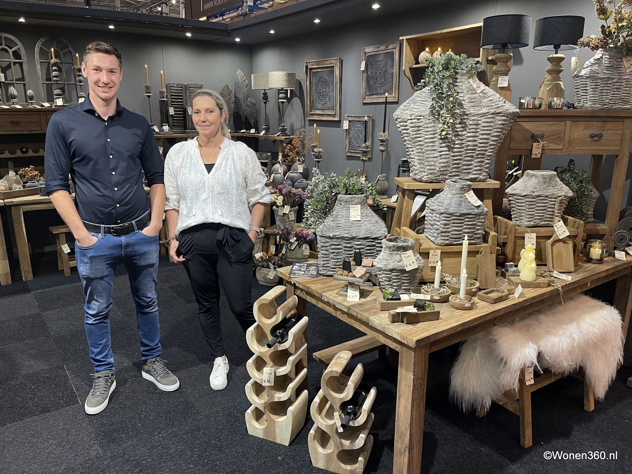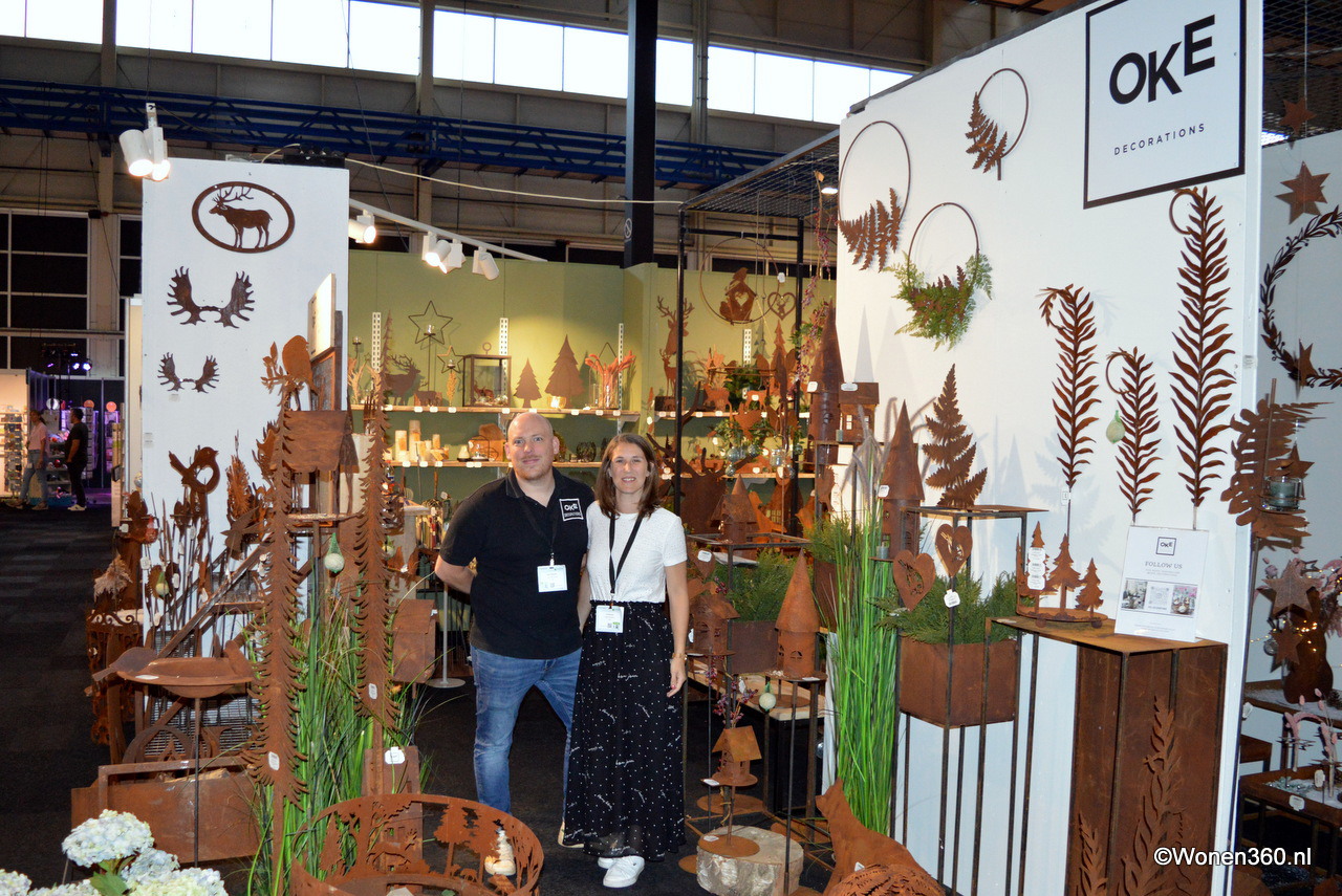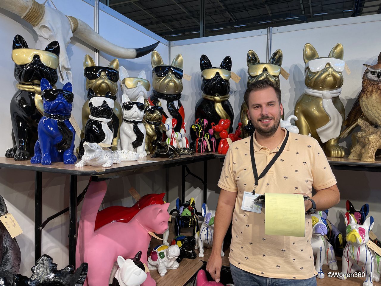 Een grote witte kerstboom vol nieuwe kerstdecoratie pronkt naast Joost van der Vlugt op de stand van Mansion Atmosphere.