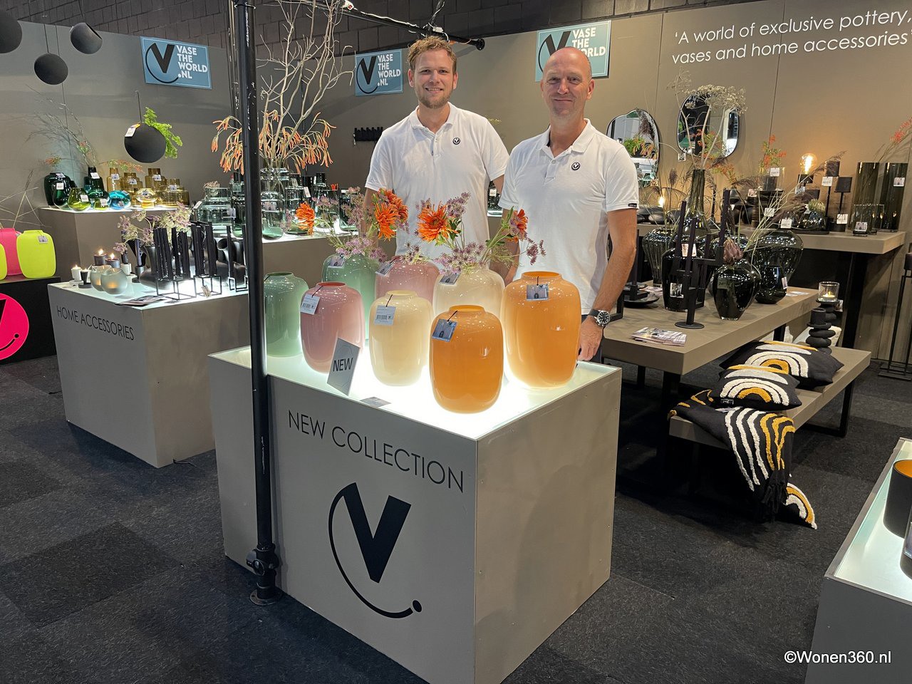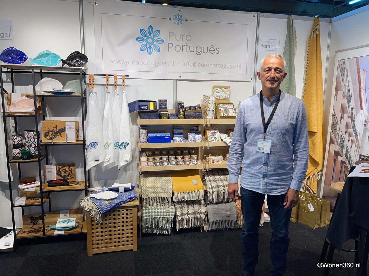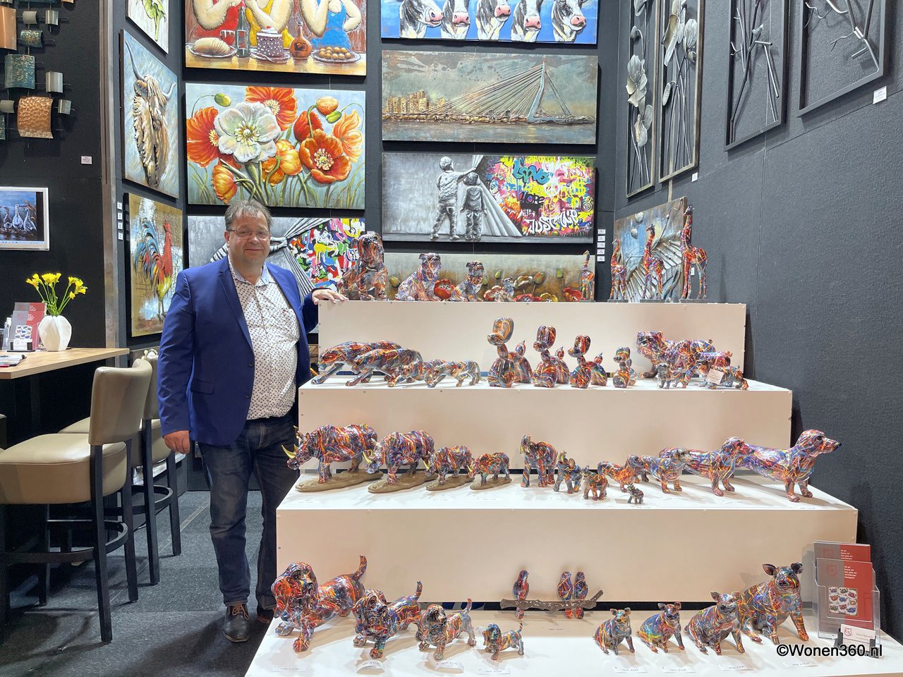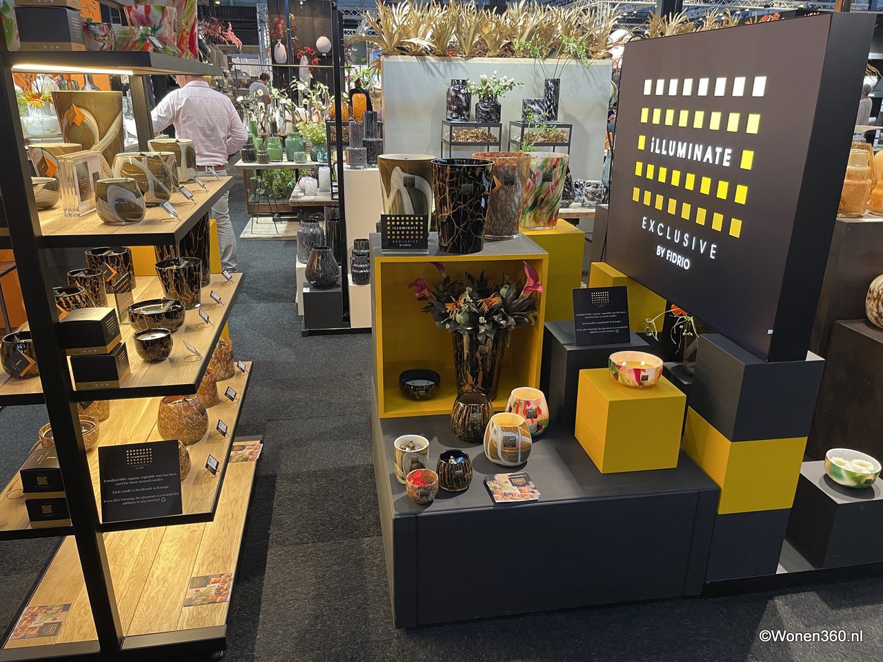 Een grote witte kerstboom vol nieuwe kerstdecoratie pronkt naast Joost van der Vlugt op de stand van Mansion Atmosphere.