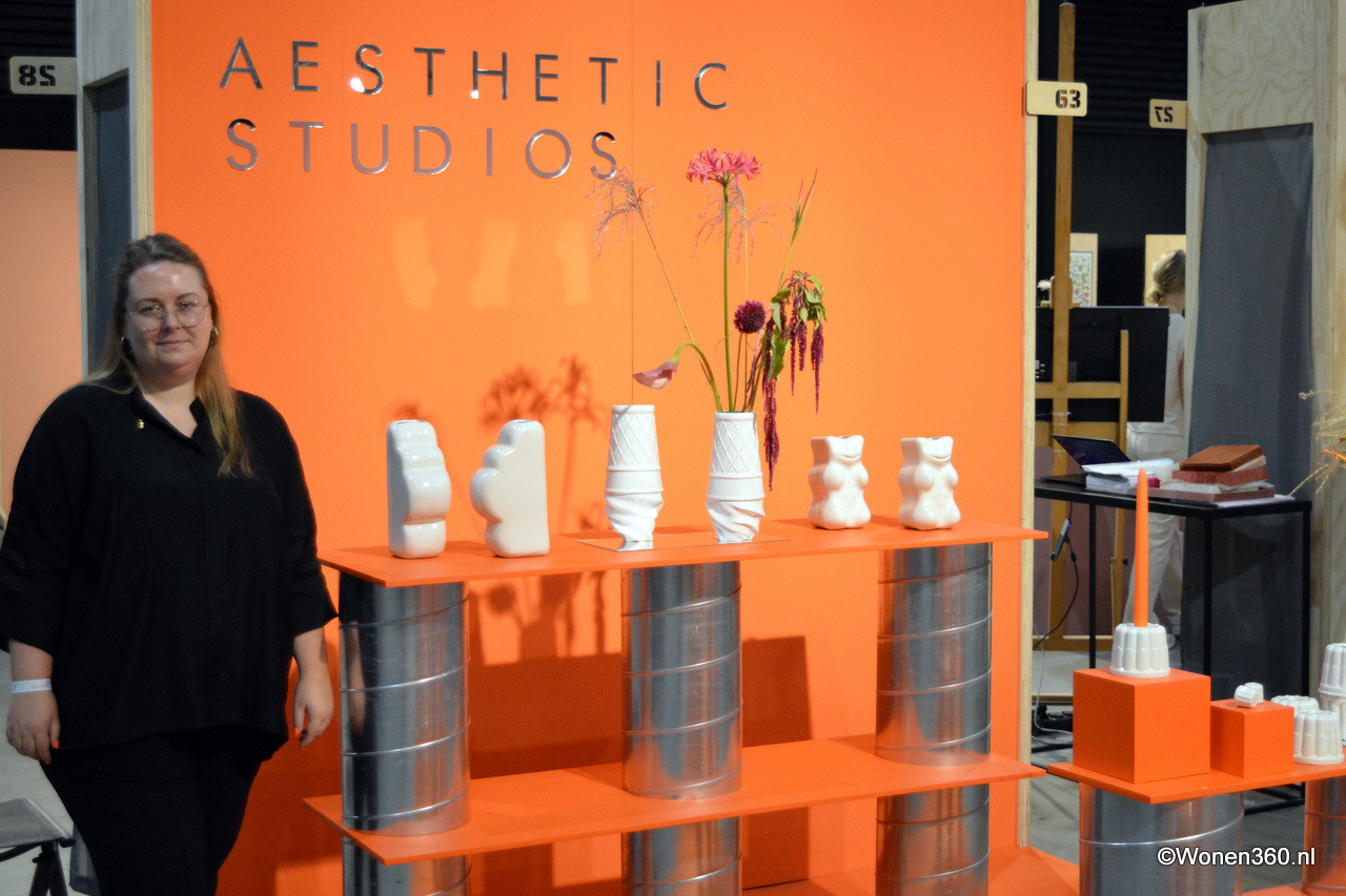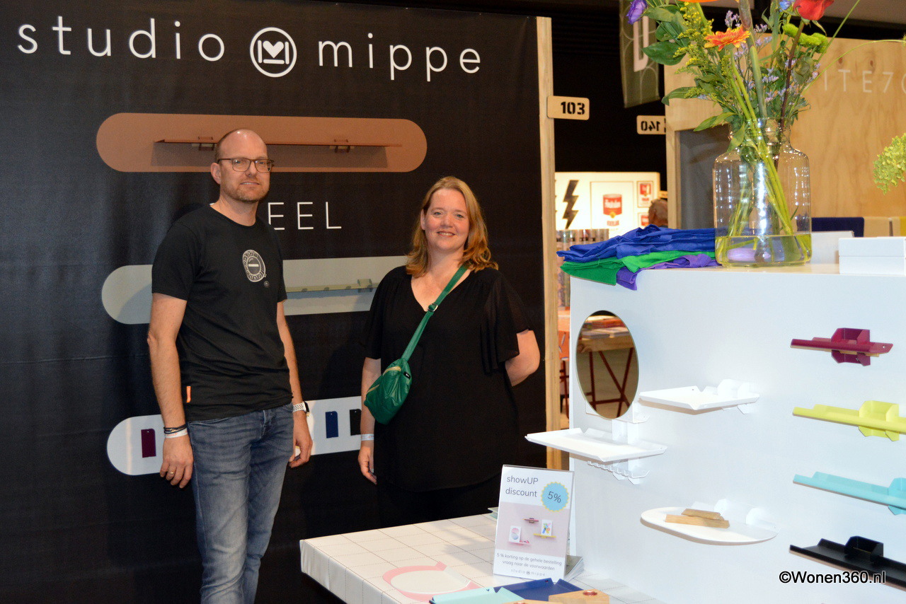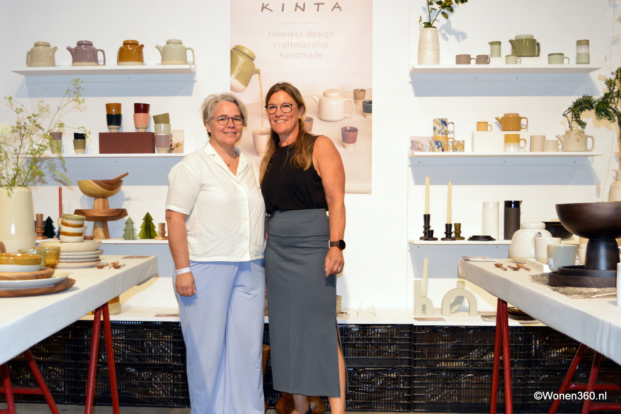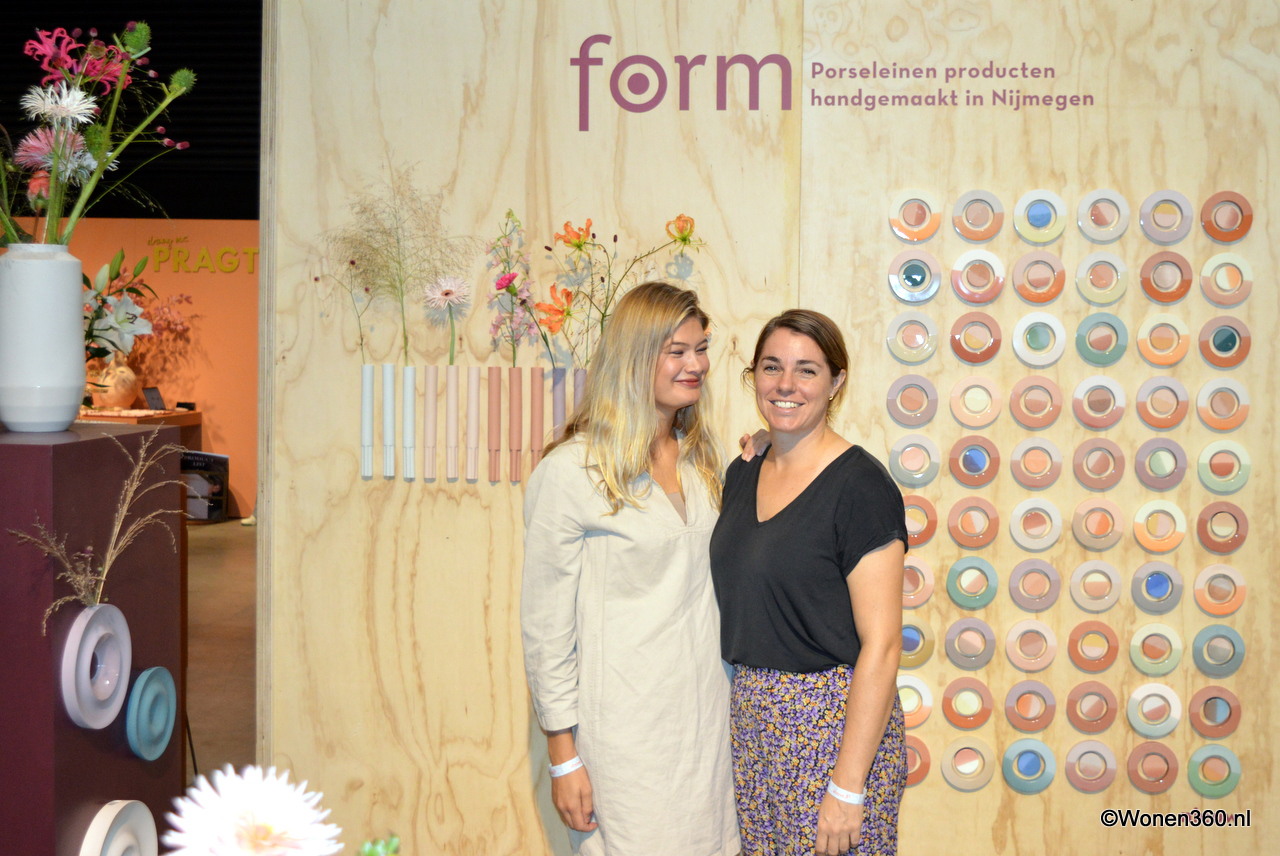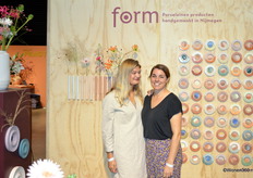 Hella Duijs en Elke Peters hebben een nieuwe naam voor hun label: Form. Achter hen is de kersverse wandcollectie te zien, gemaakt van restklei.