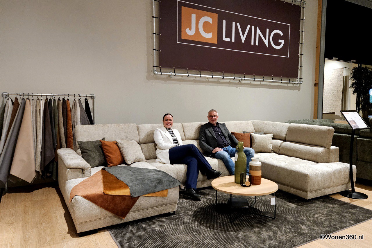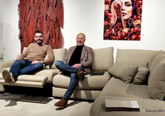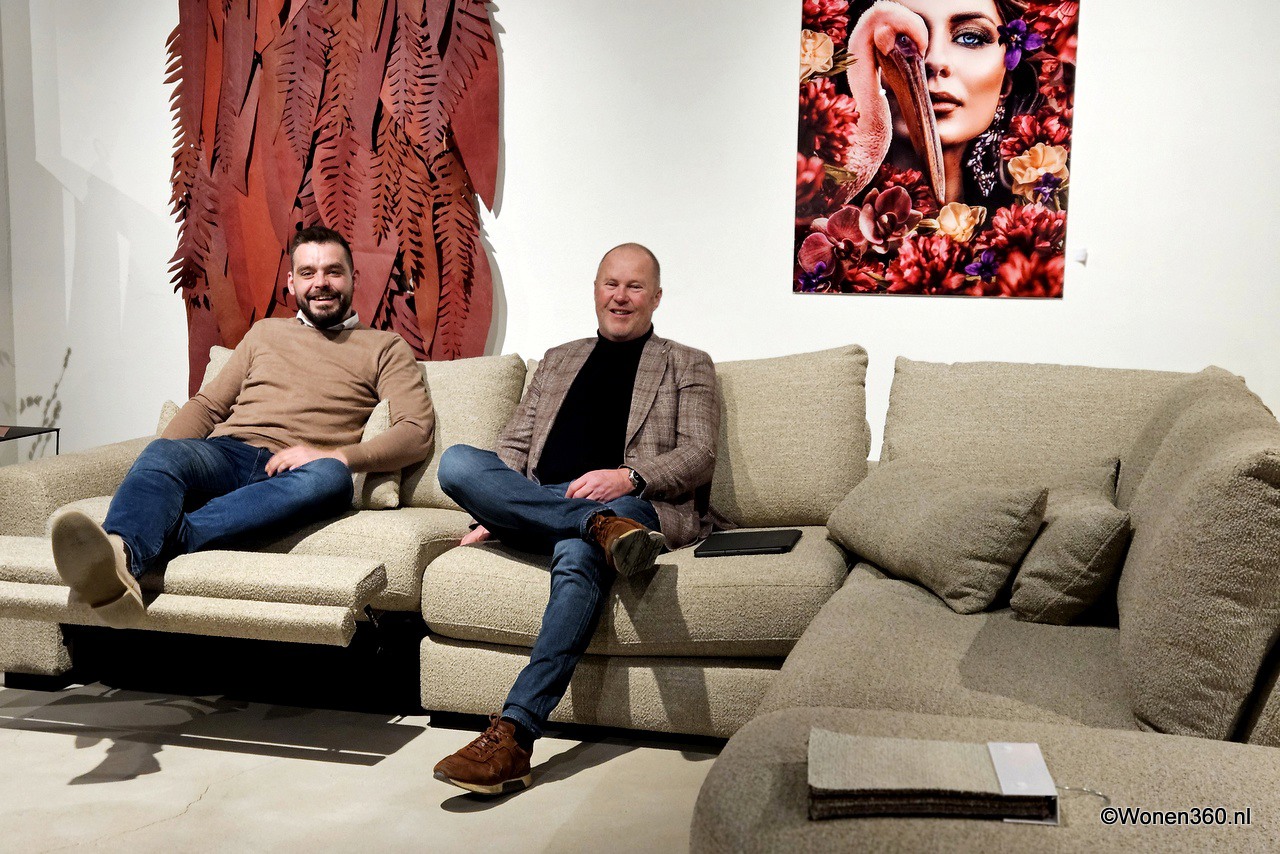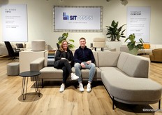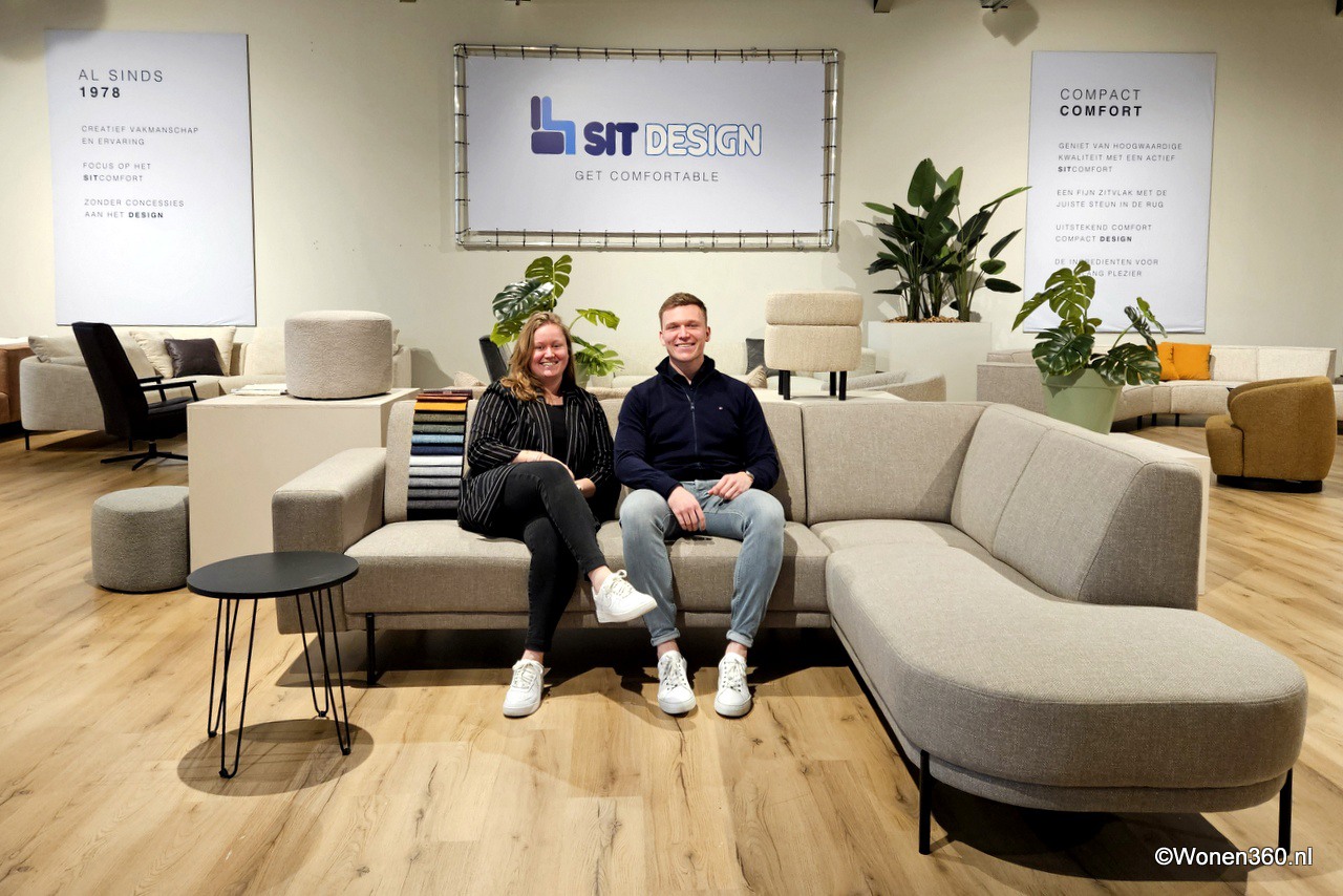 Samien en haar broer Sanco Blaauwendraad op het bankstel Axel. Voor het eerst komt Sit Design met twee modellen die vanuit voorraad leverbaar zijn.