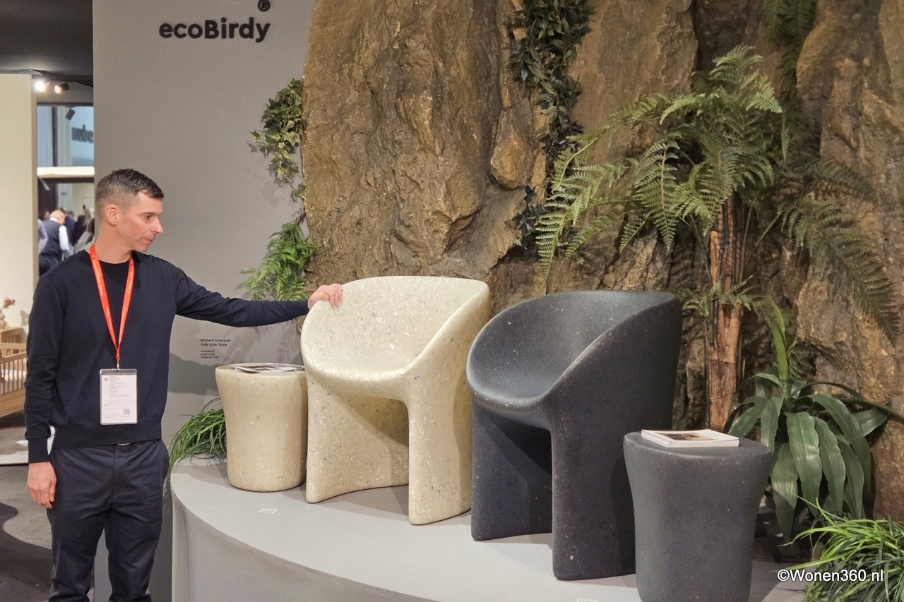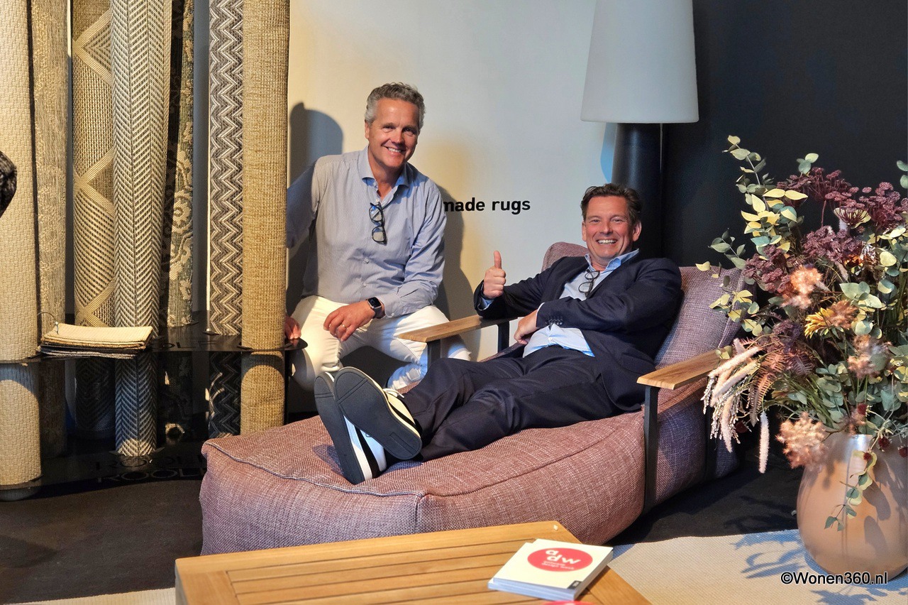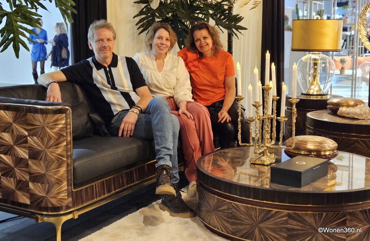 Pieter Adam, Carola en Marieke bij de Circum-collectie van Pieter Adam. De dressoirs en bank zijn afgewerkt met leer en eco-bewuste materialen aan de buitenkant.