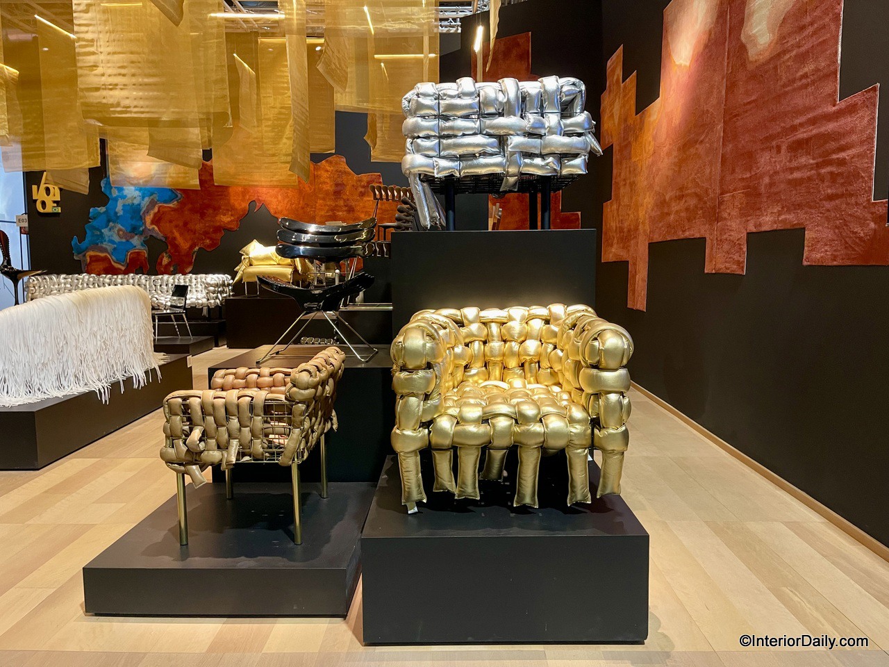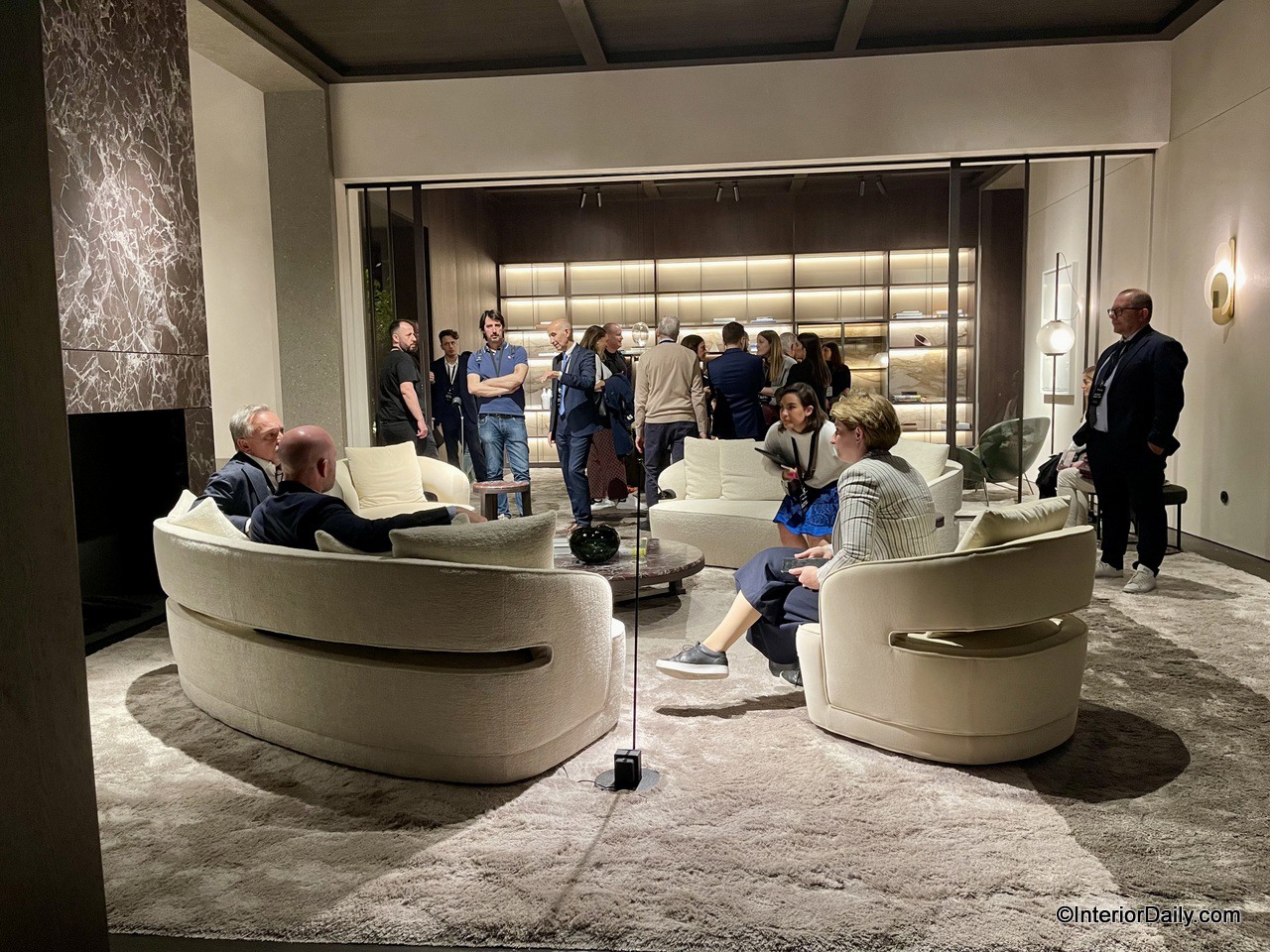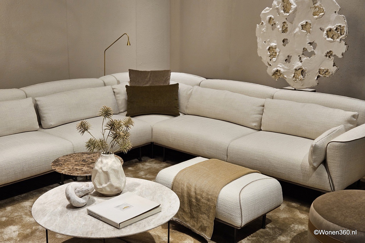 Pieter Adam, Carola en Marieke bij de Circum-collectie van Pieter Adam. De dressoirs en bank zijn afgewerkt met leer en eco-bewuste materialen aan de buitenkant.