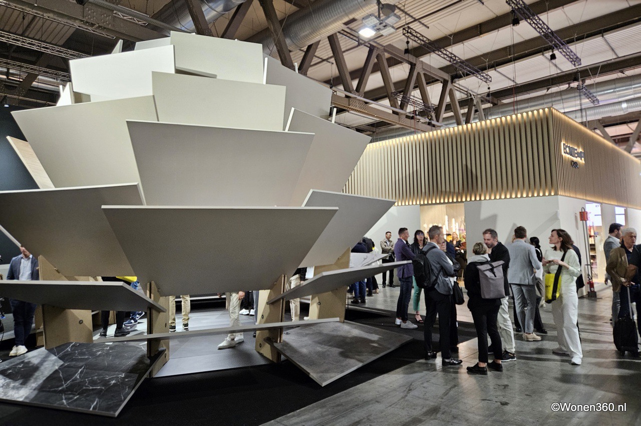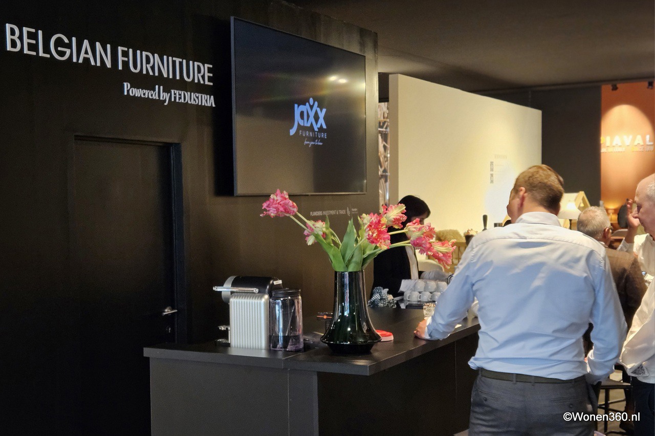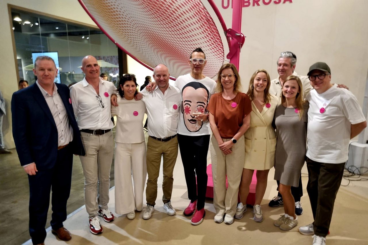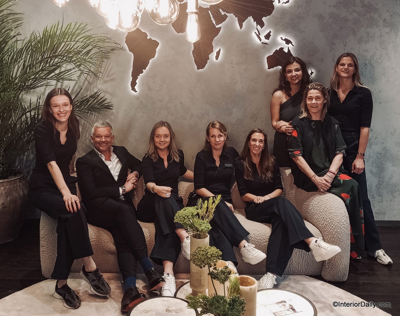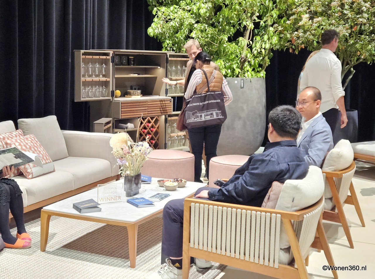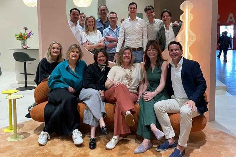 Groepsfoto op de stand van Muundo & Paul Rogers. Op de voorgrond is de Tone-tafel te zien van het merk Muundo.