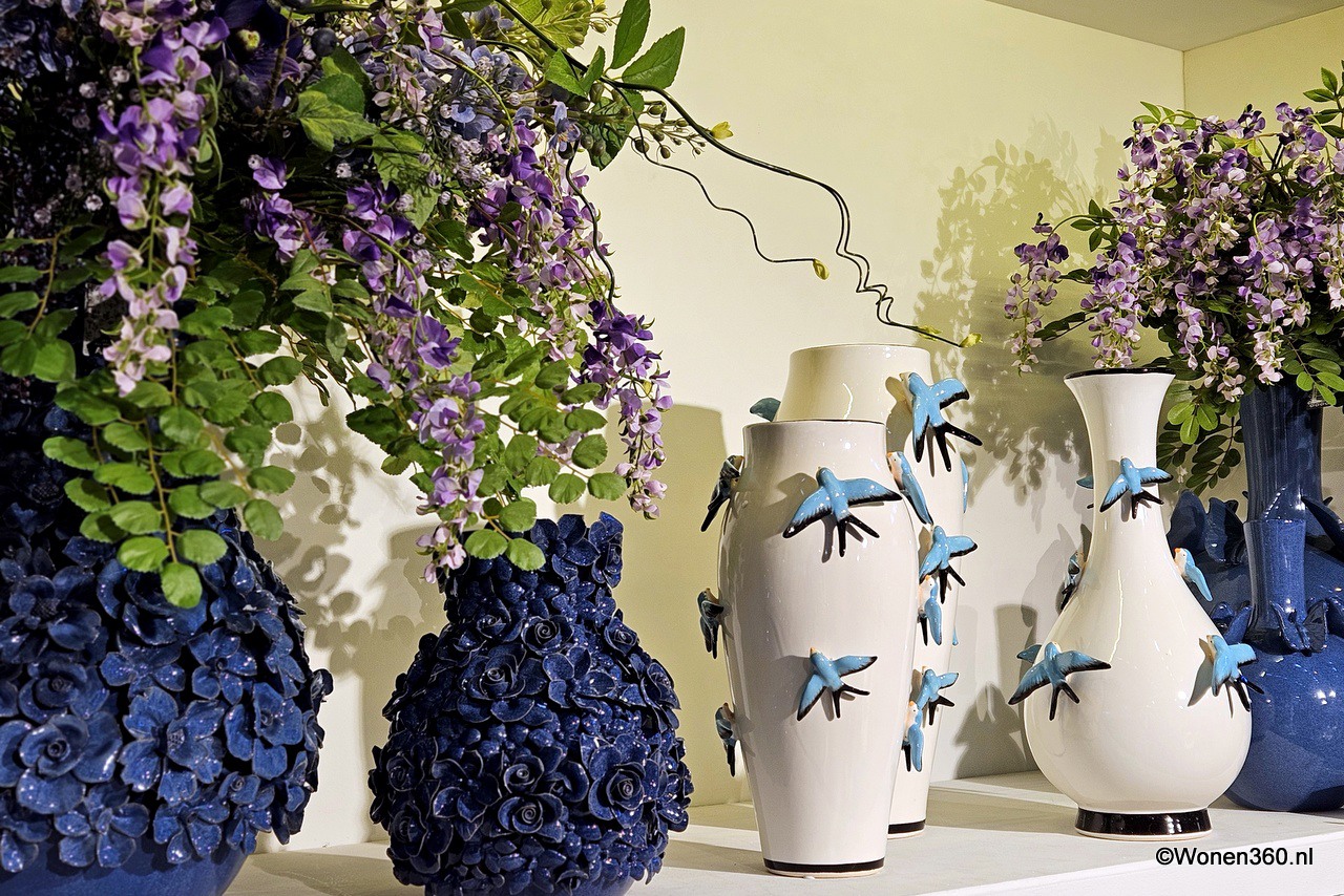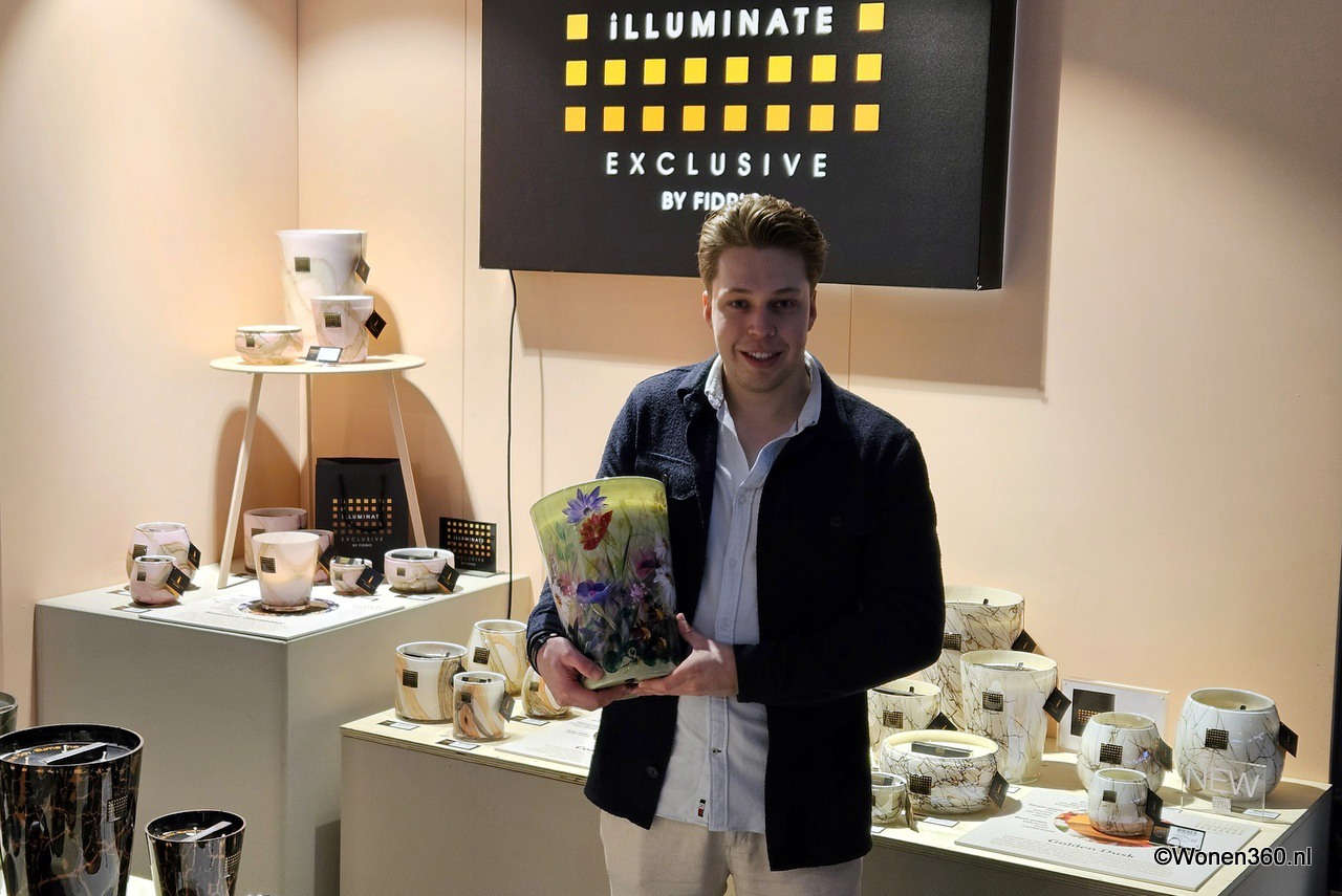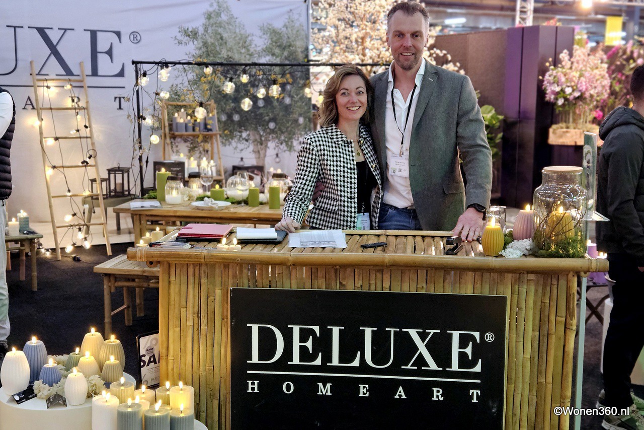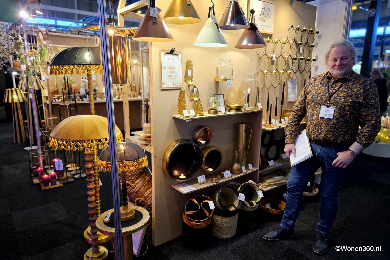 De stand van Deco Trading Twente (DTT). Onder het eigen label Tom Design verkoopt het potterie, hout- en glaswerk, kleinmeubelen, geurblokken, accessoires en LED-kaarsen.