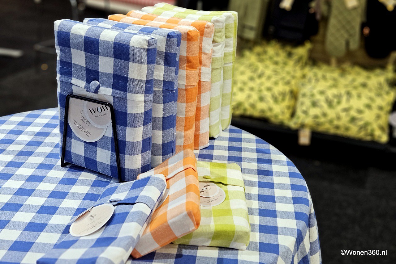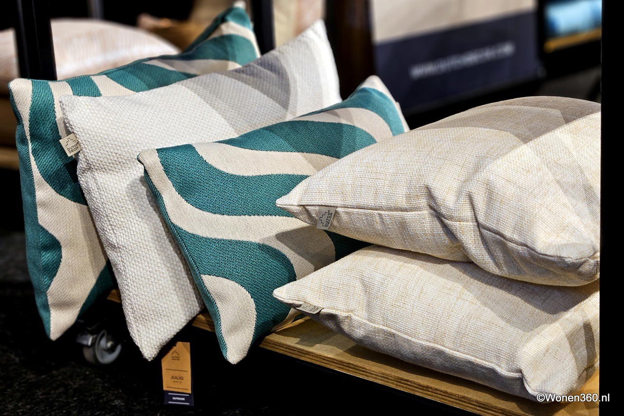 Arjen Vanleuven en Ina Gauquier laten een compleet nieuwe productgroep zien van OKE Decorations. De textiellijn wordt geproduceerd uit afvalstromen in Portugal. Nu nog alleen voor interieur, maar wellicht wordt dit uitgebreid naar een outdoorcollectie.