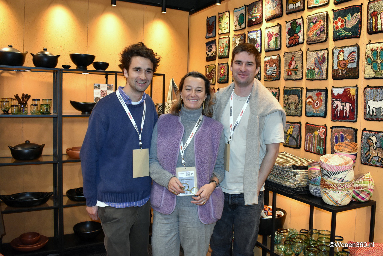 Sophie Verhaegen van Indigena (handgemaakte producten uit Latijns-Amerika) met haar zoons Alexander en Vicor Heger.