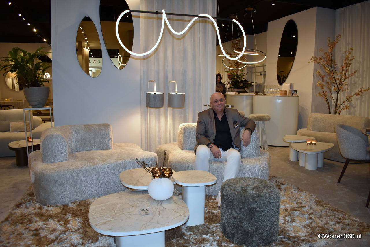 Richard Morée van PMP Furniture was een tevreden man. Niet alleen vanwege de grote belangstelling voor de collectie (“40% is nieuw”), maar ook omdat de opvallend vormgegeven stand door zijn twee zoons was ontworpen. Dat maakte hem ook een trotse vader.