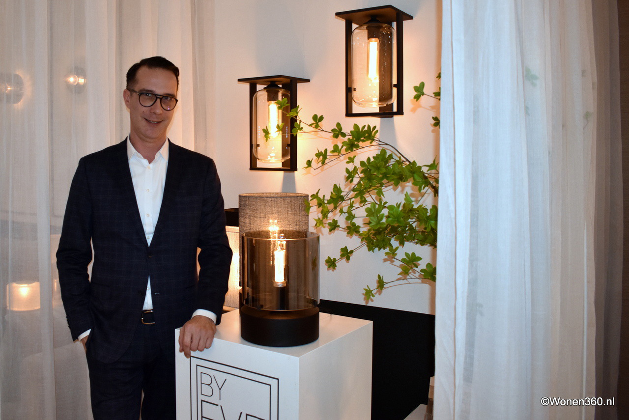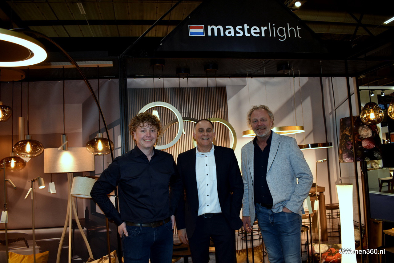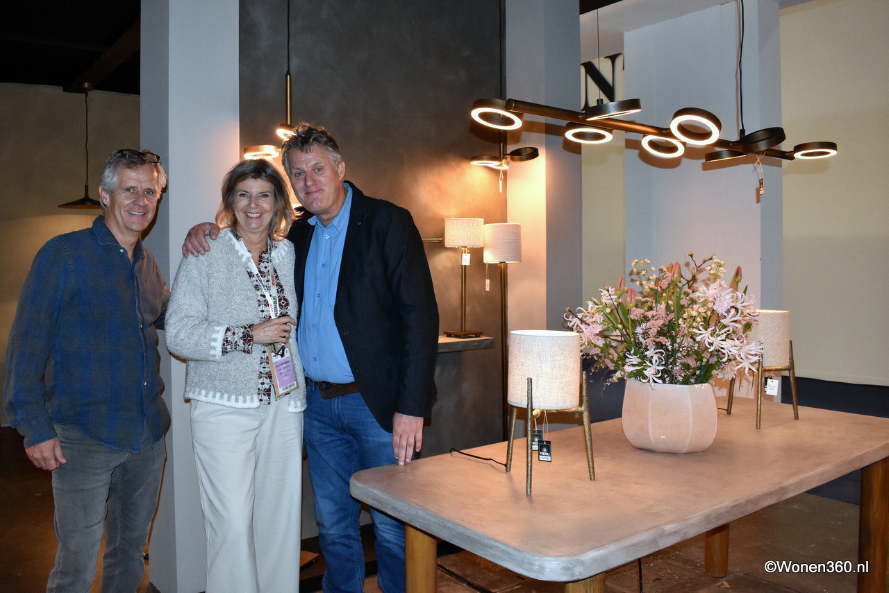 Martijn Gelissen van Frezoli met Ank Kemperman en broer Michel met rechts een lamp uit de nieuwe collectie.