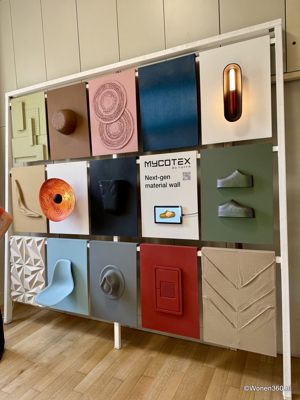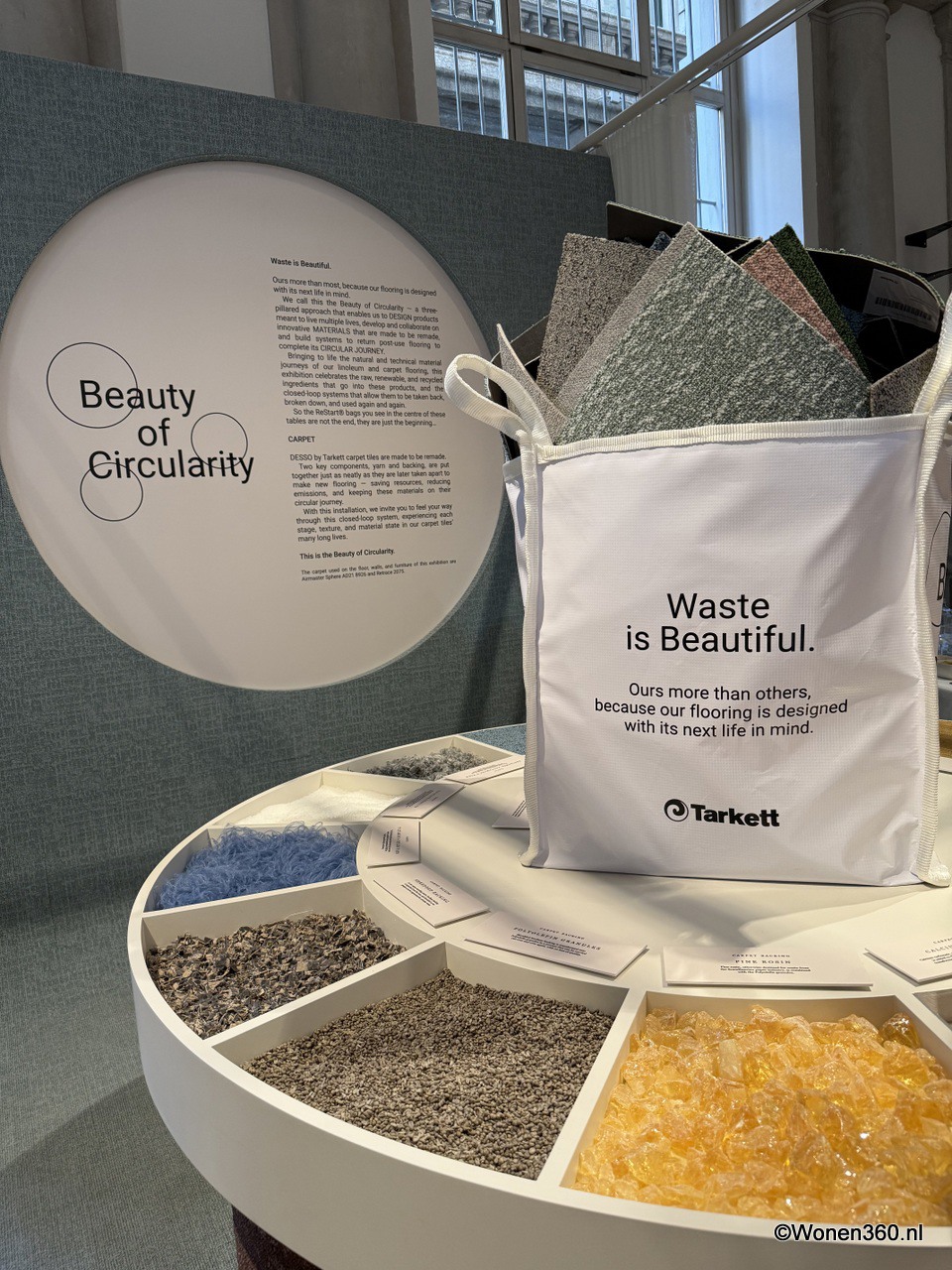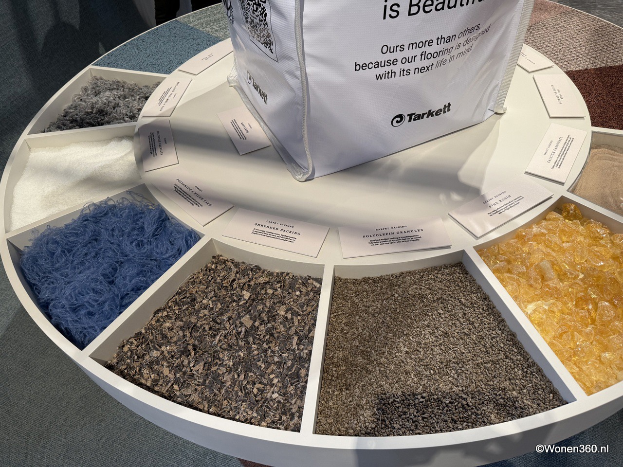 Rechts de Novel Grey, een luxe tegelcollectie van gerecyclede materialen.