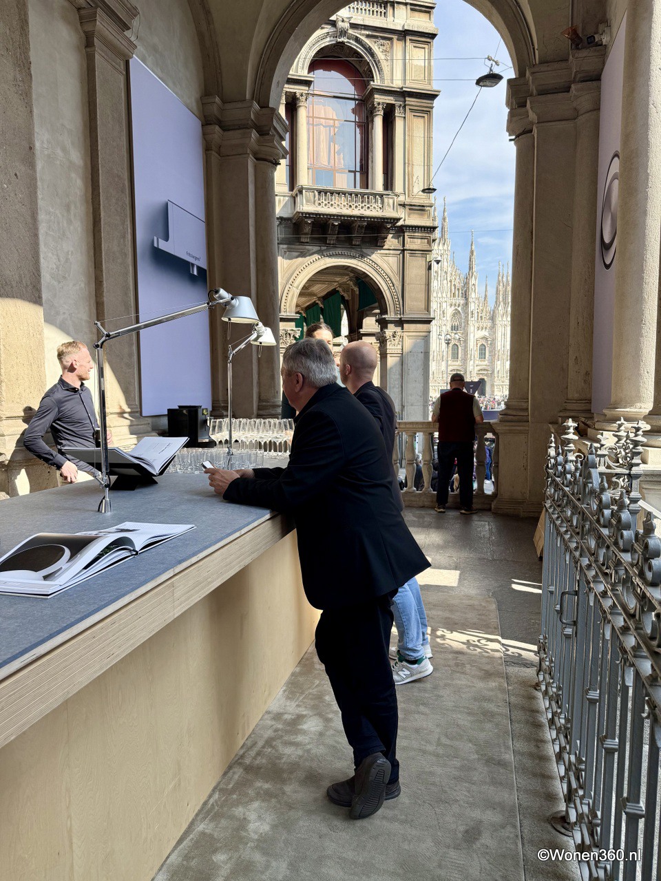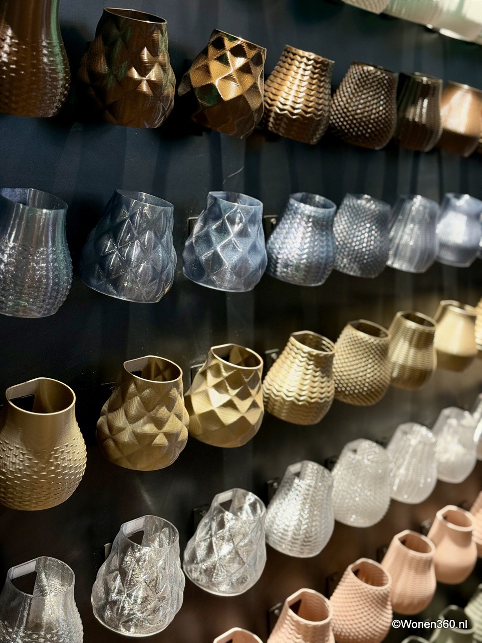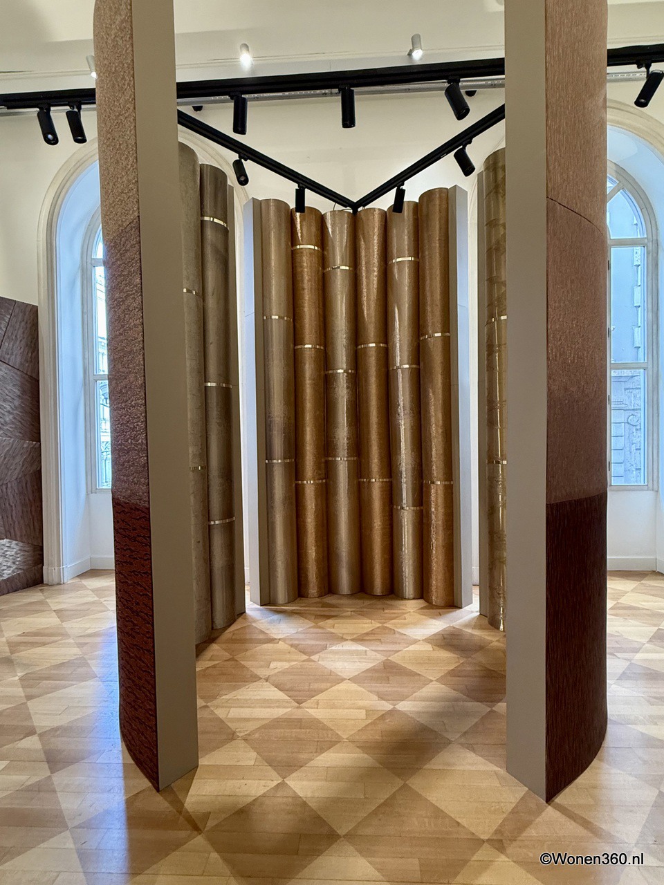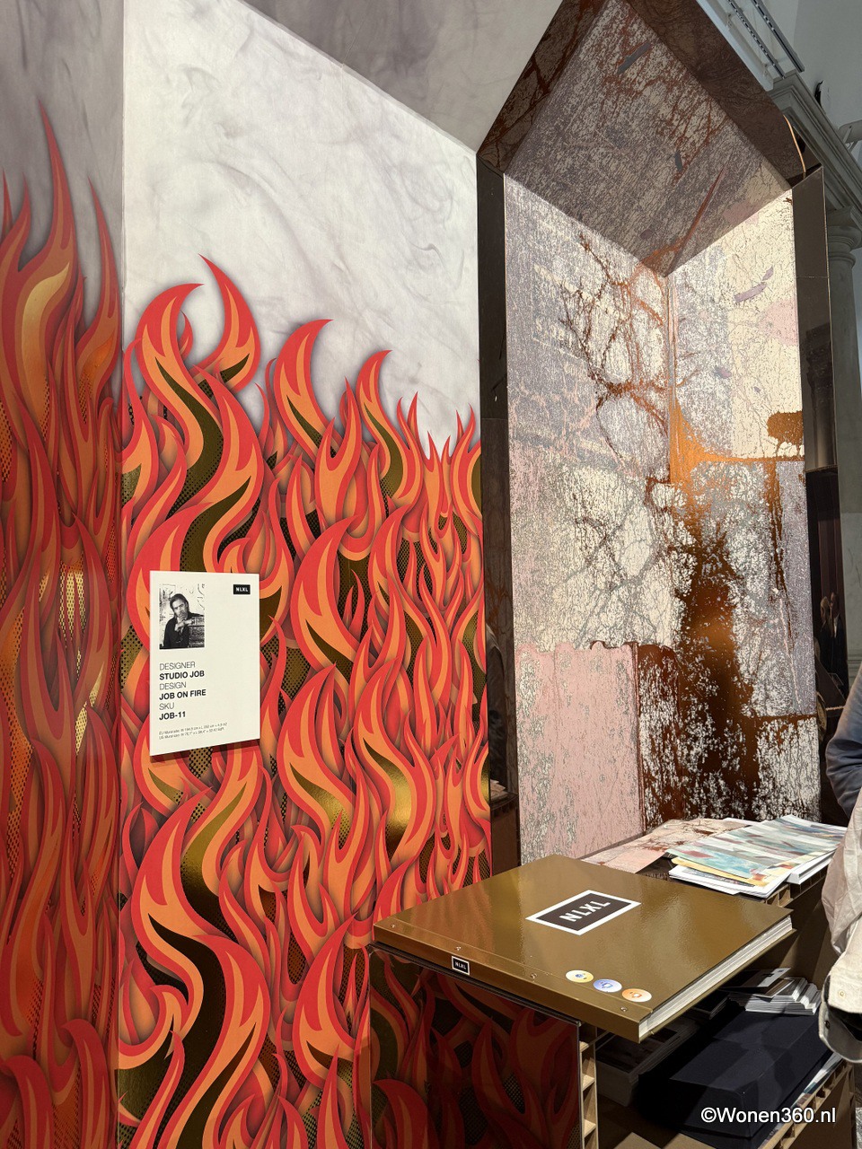 Rechts de Novel Grey, een luxe tegelcollectie van gerecyclede materialen.