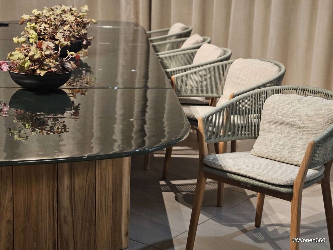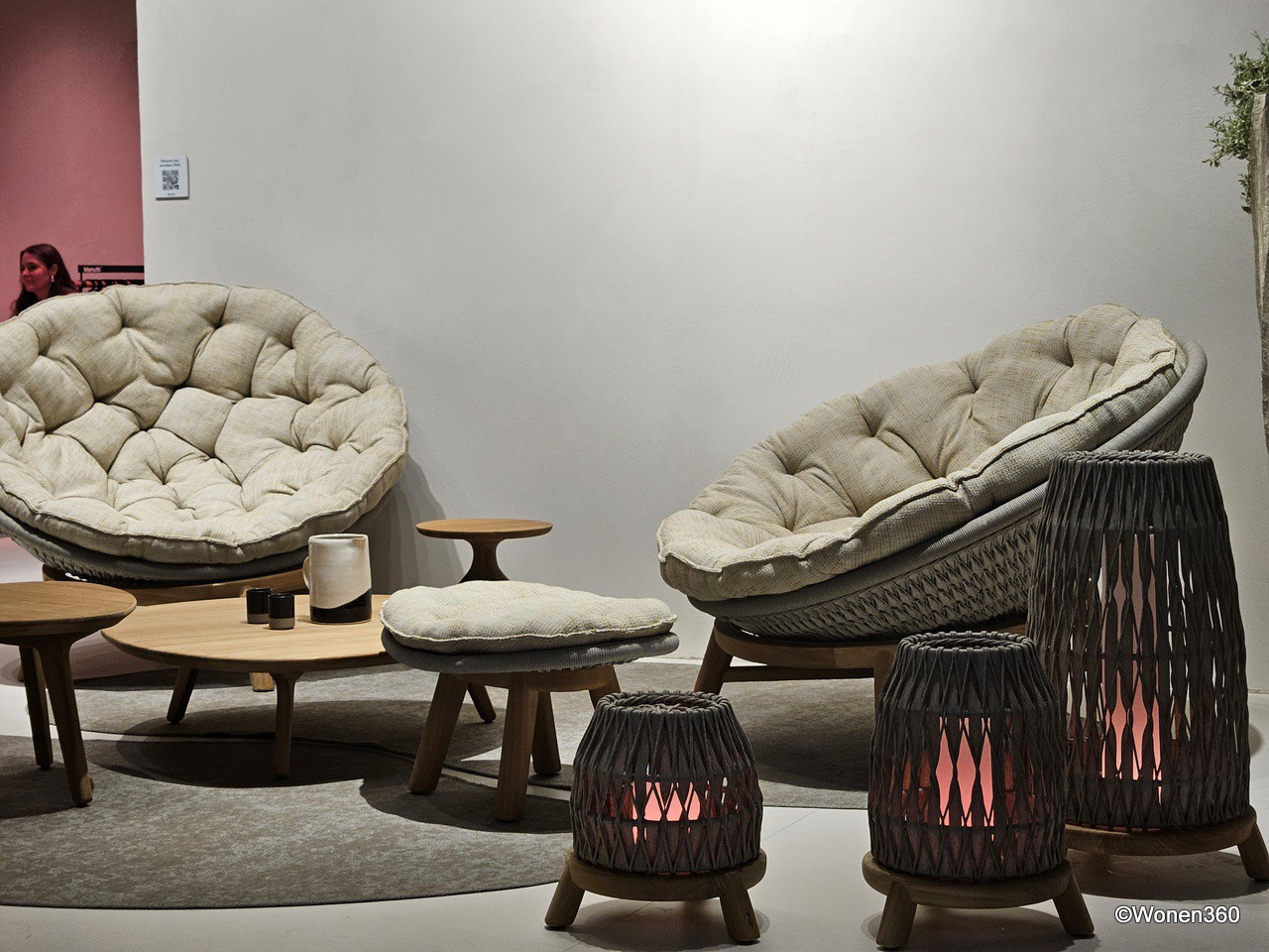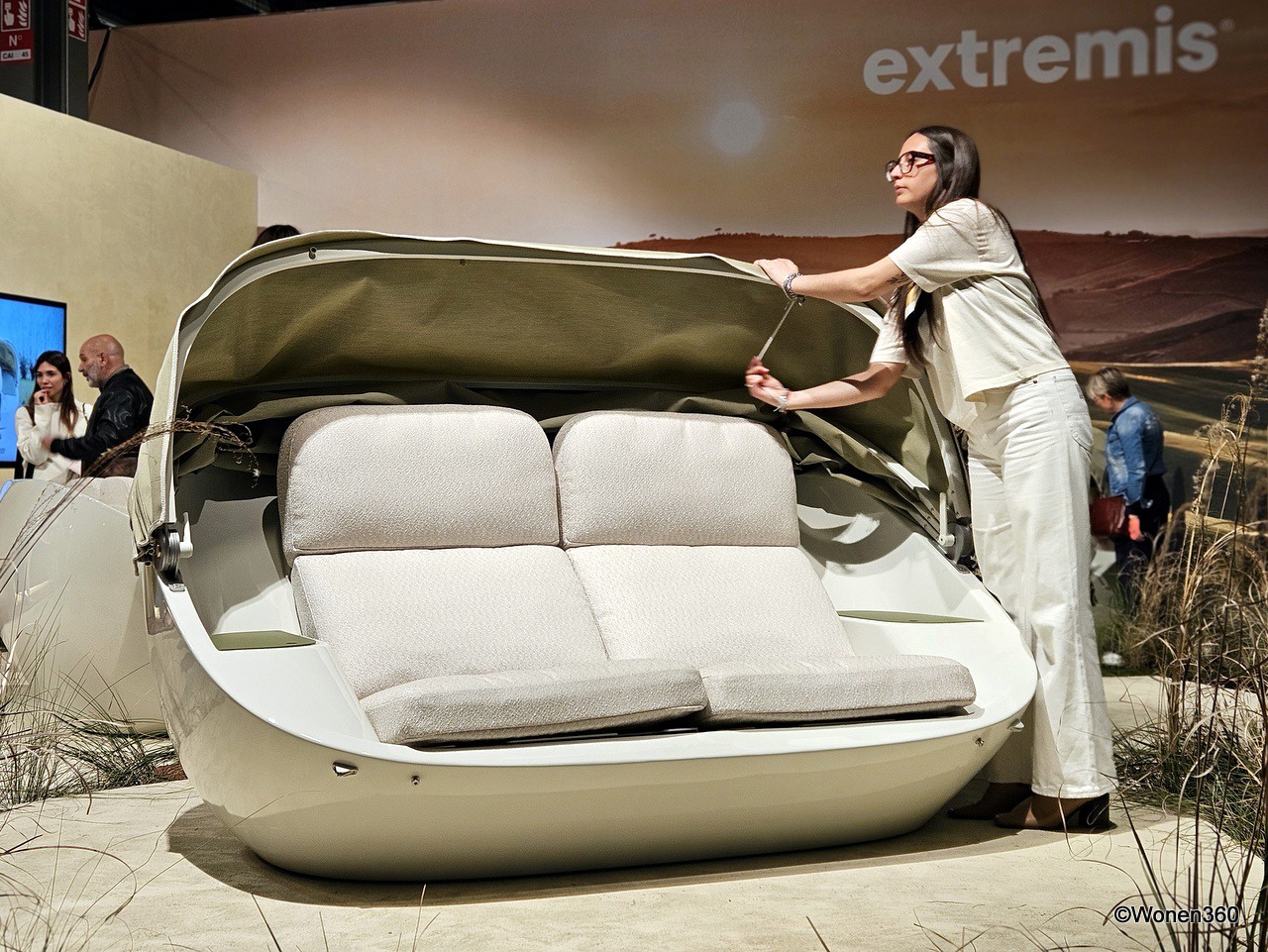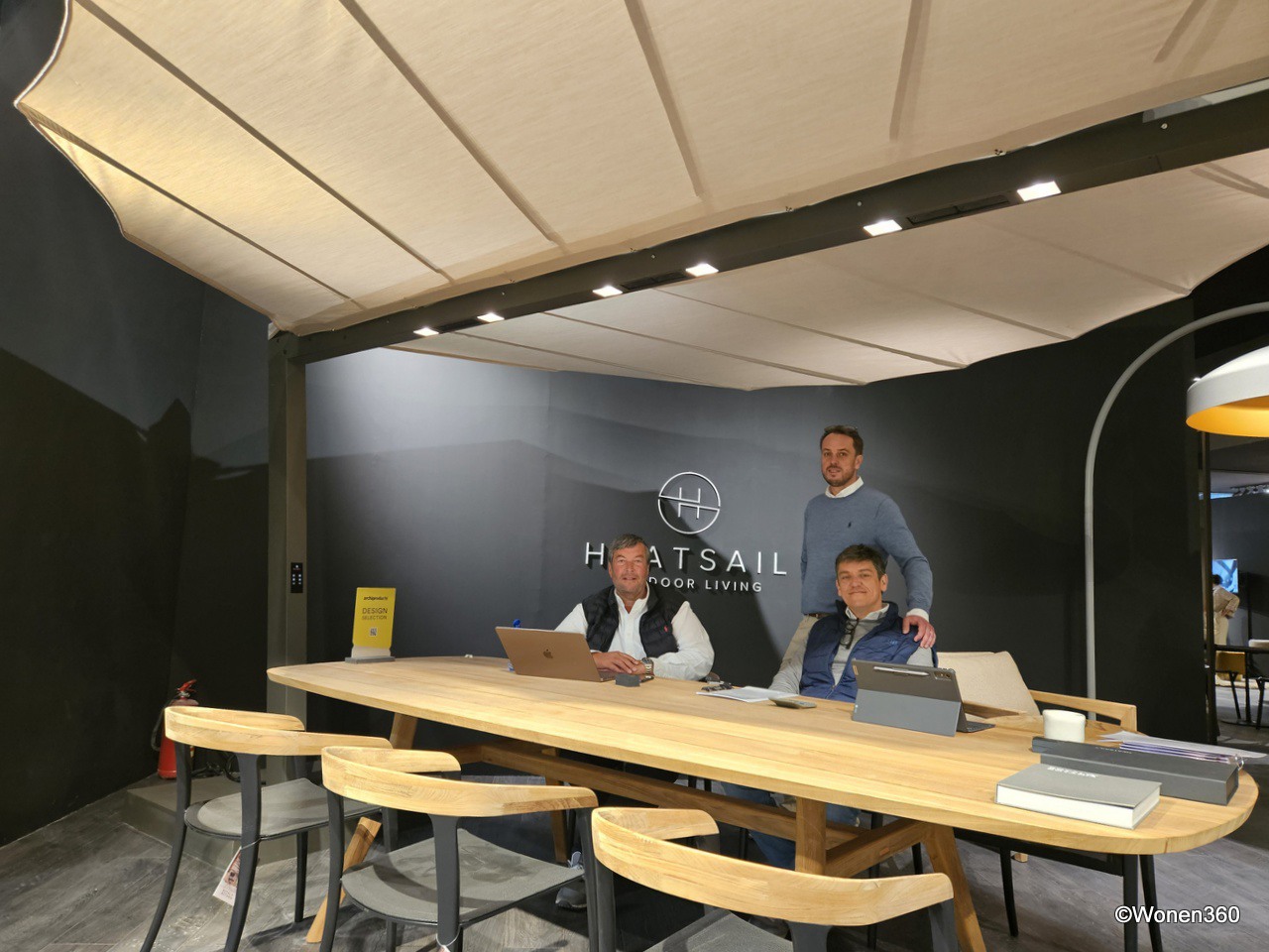 Amani, het pavilion van Renson, waar ook de haarden van Planika, de buitenmeubels van Coco Wolf en de buitenkeukens van Cubic Outdoor Living te vinden waren.