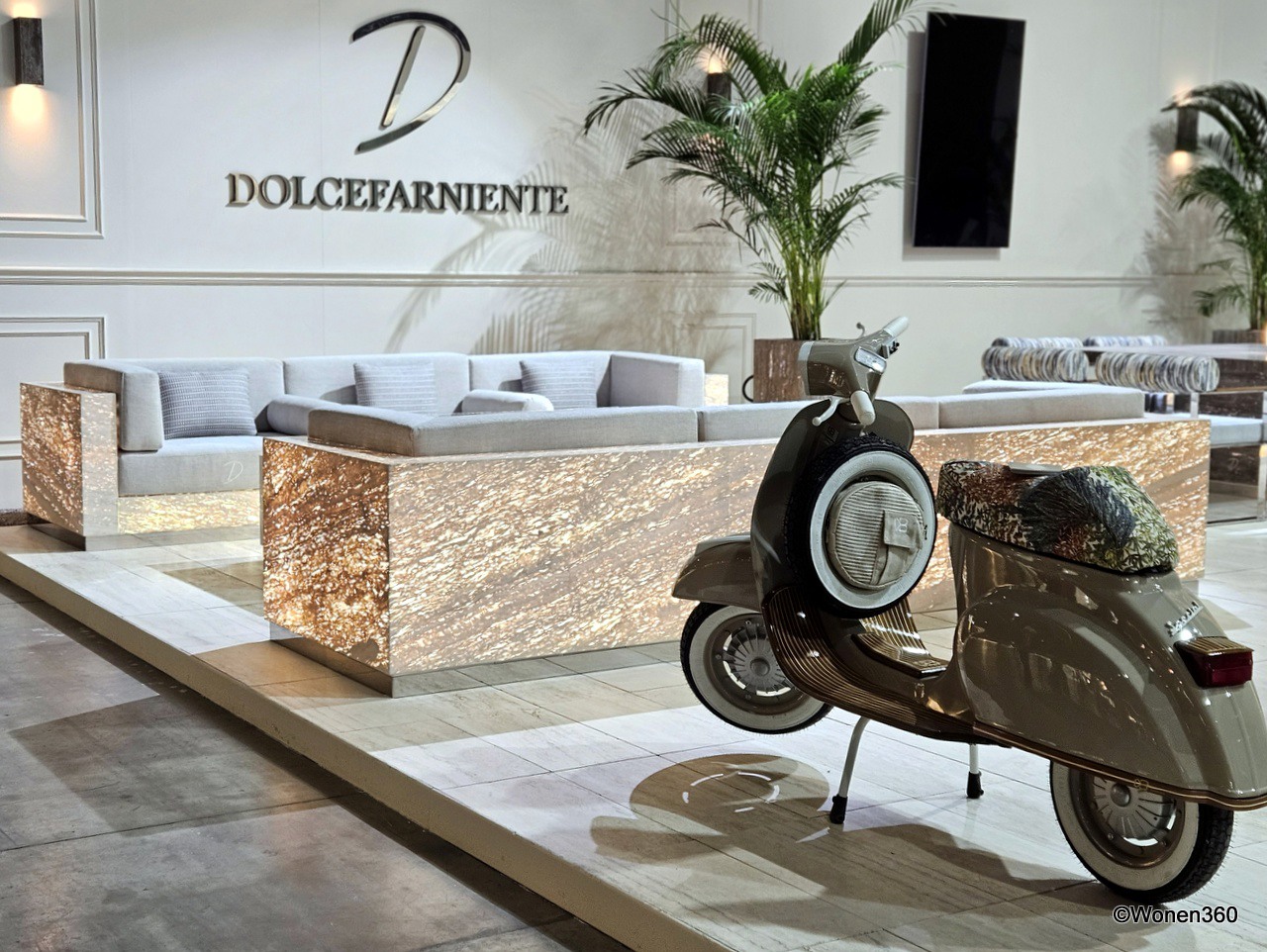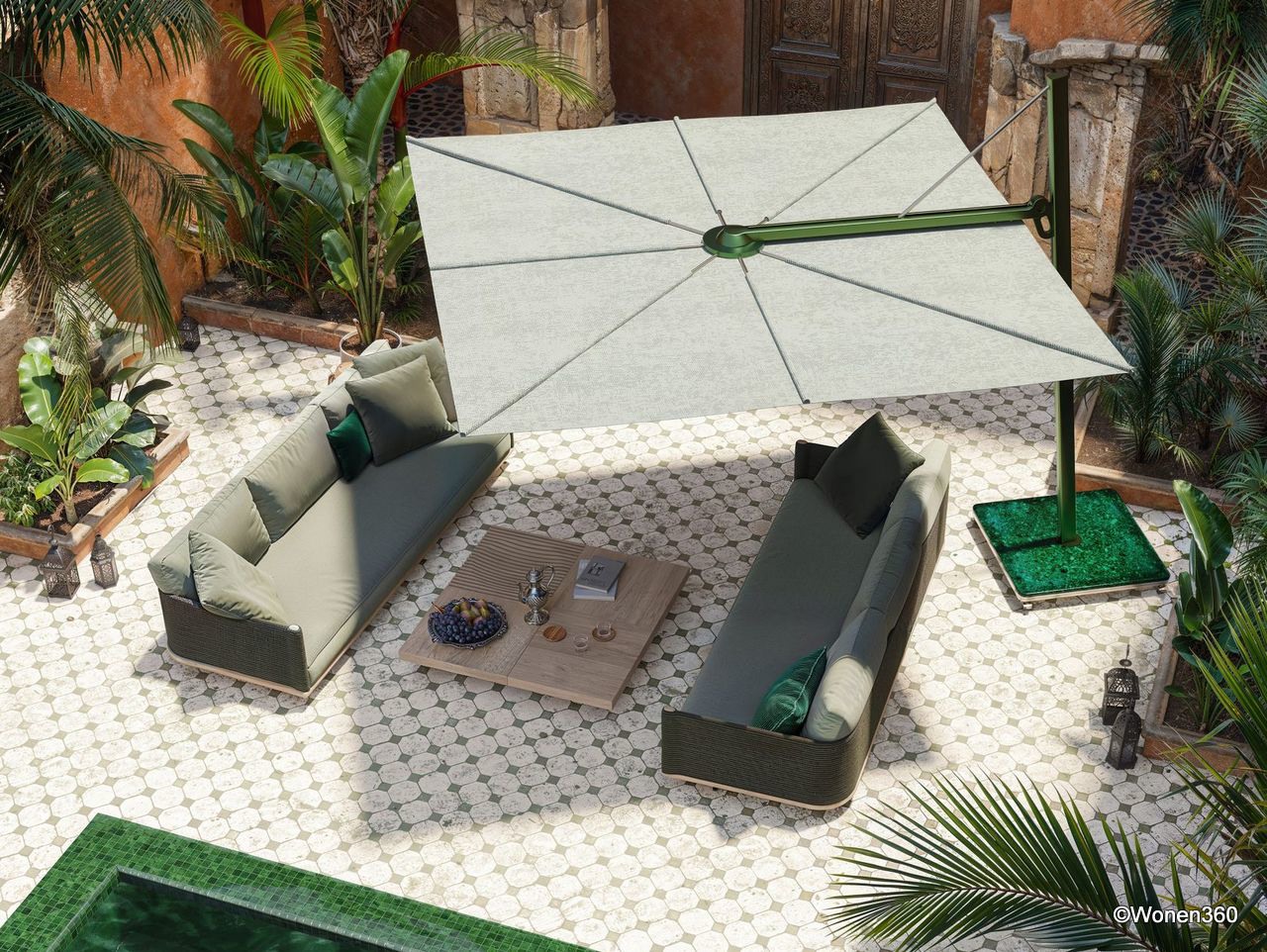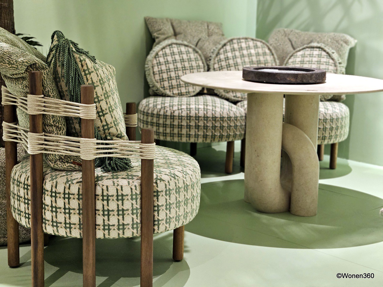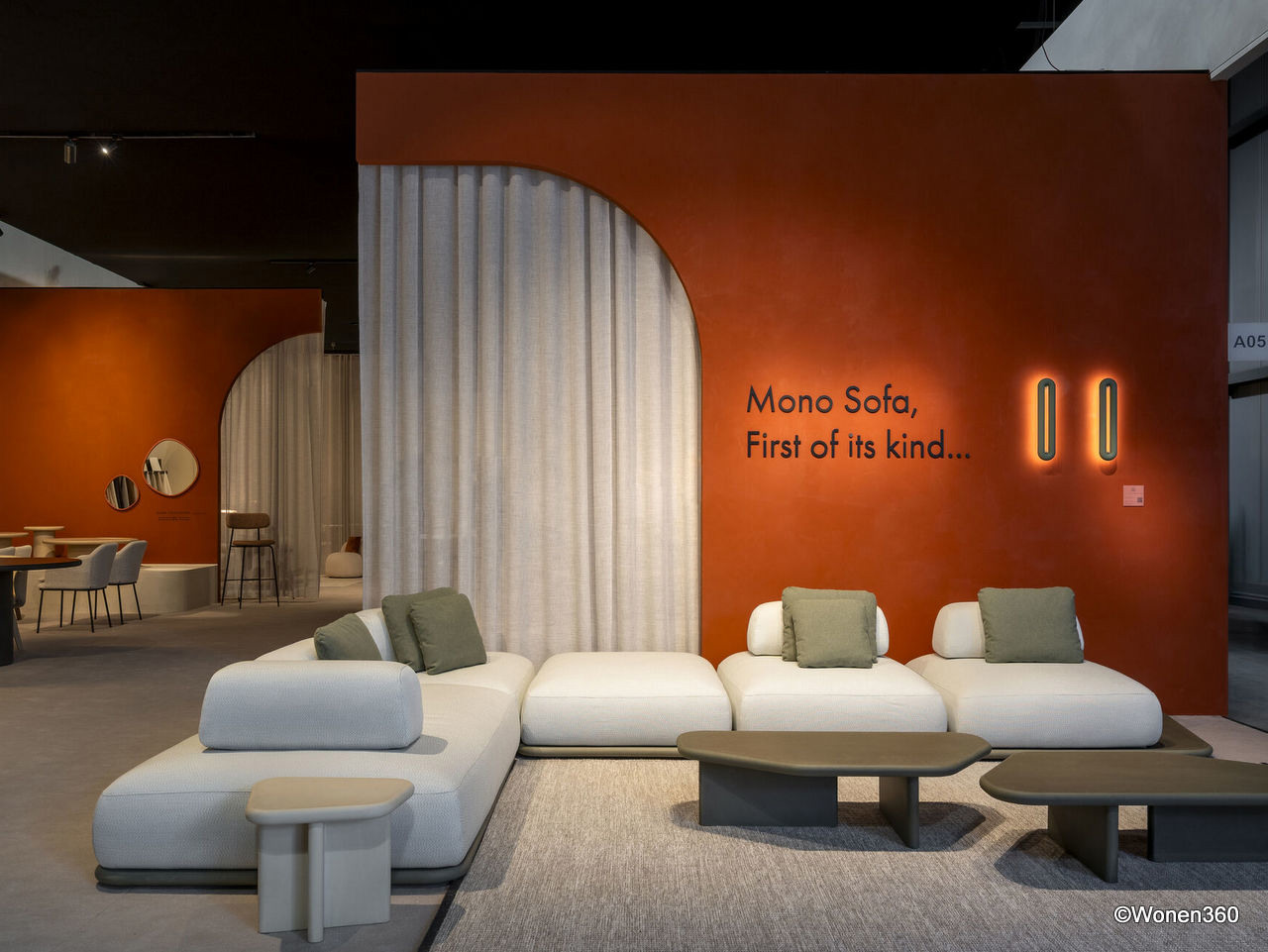 Amani, het pavilion van Renson, waar ook de haarden van Planika, de buitenmeubels van Coco Wolf en de buitenkeukens van Cubic Outdoor Living te vinden waren.