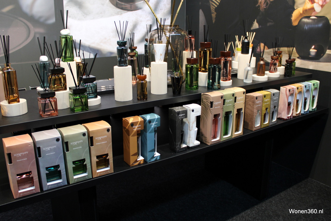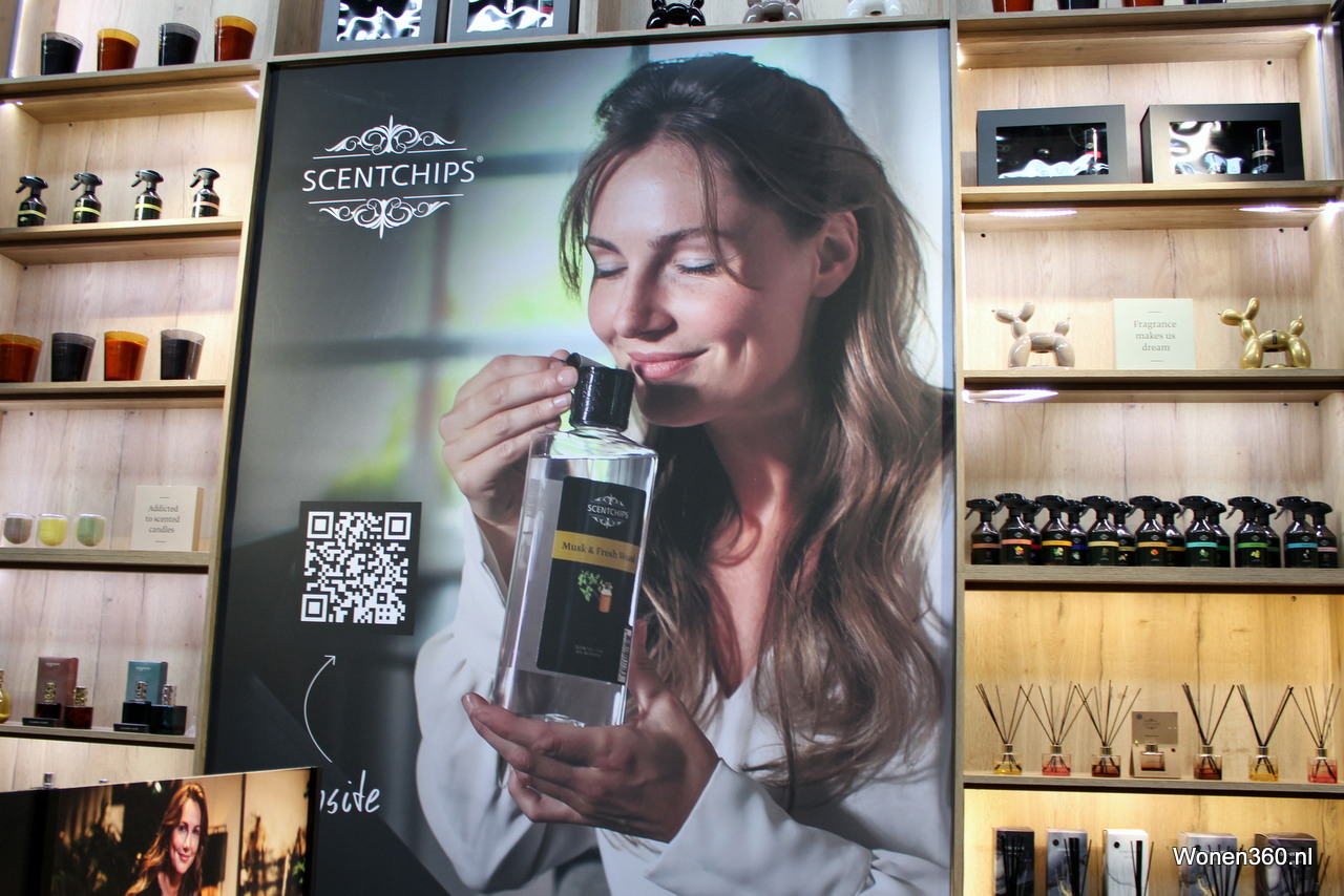 De grote Scentchips banner op de stand met de najaarscollectie aan de zijkanten.