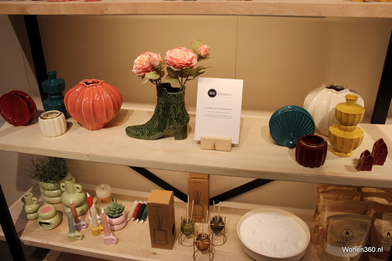 Kleurrijke najaarscollectie van Ideas 4 Seasons met kaarsen en vazen.