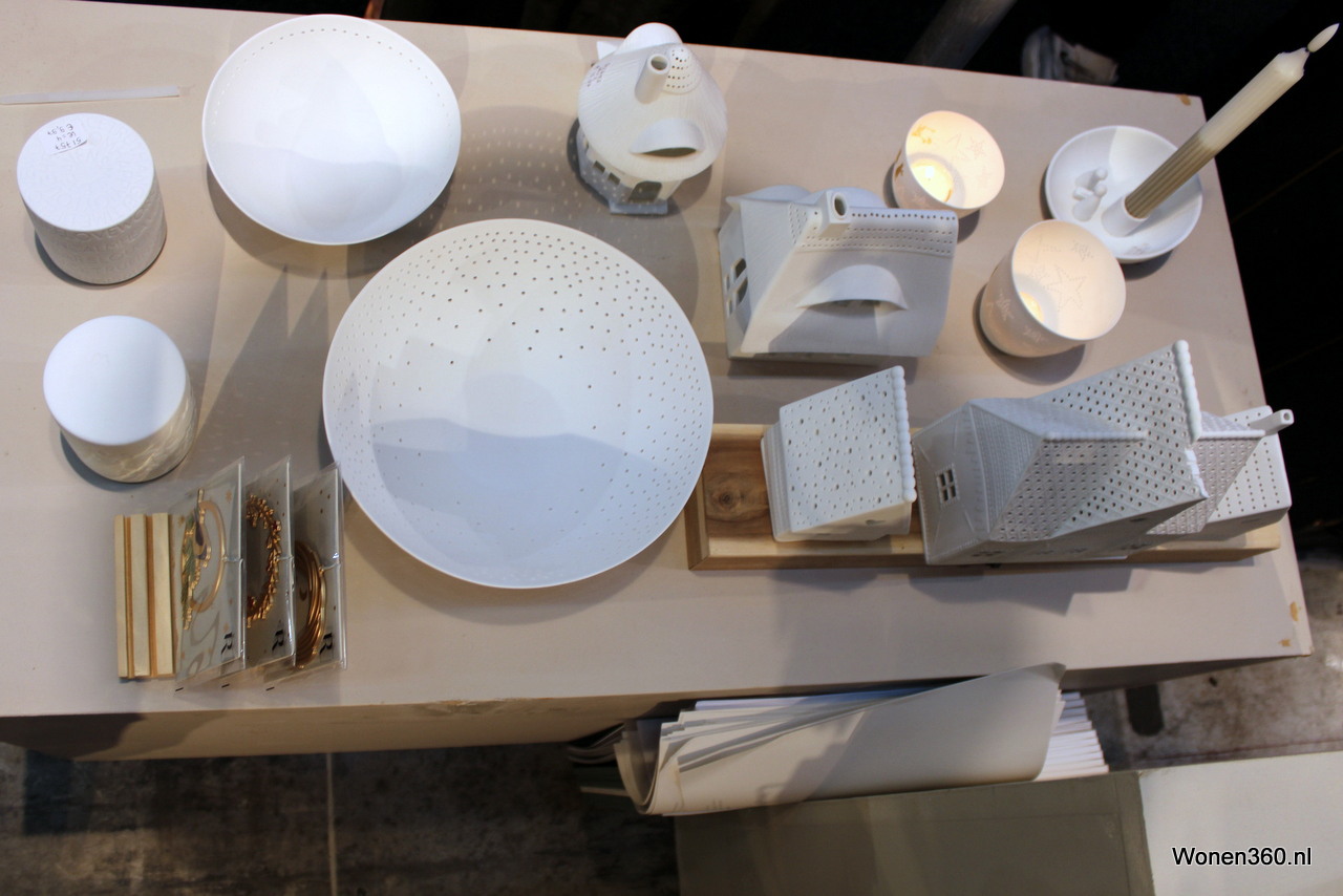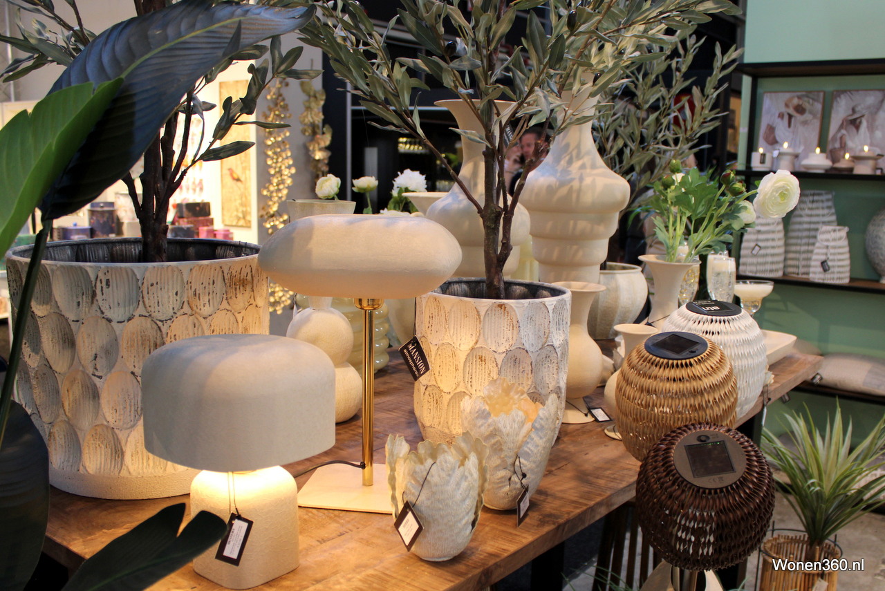 Close-up van de lichte woonaccessoires. Wit met ronde afwerkingen is nog steeds erg in trek op Trendz Najaar.