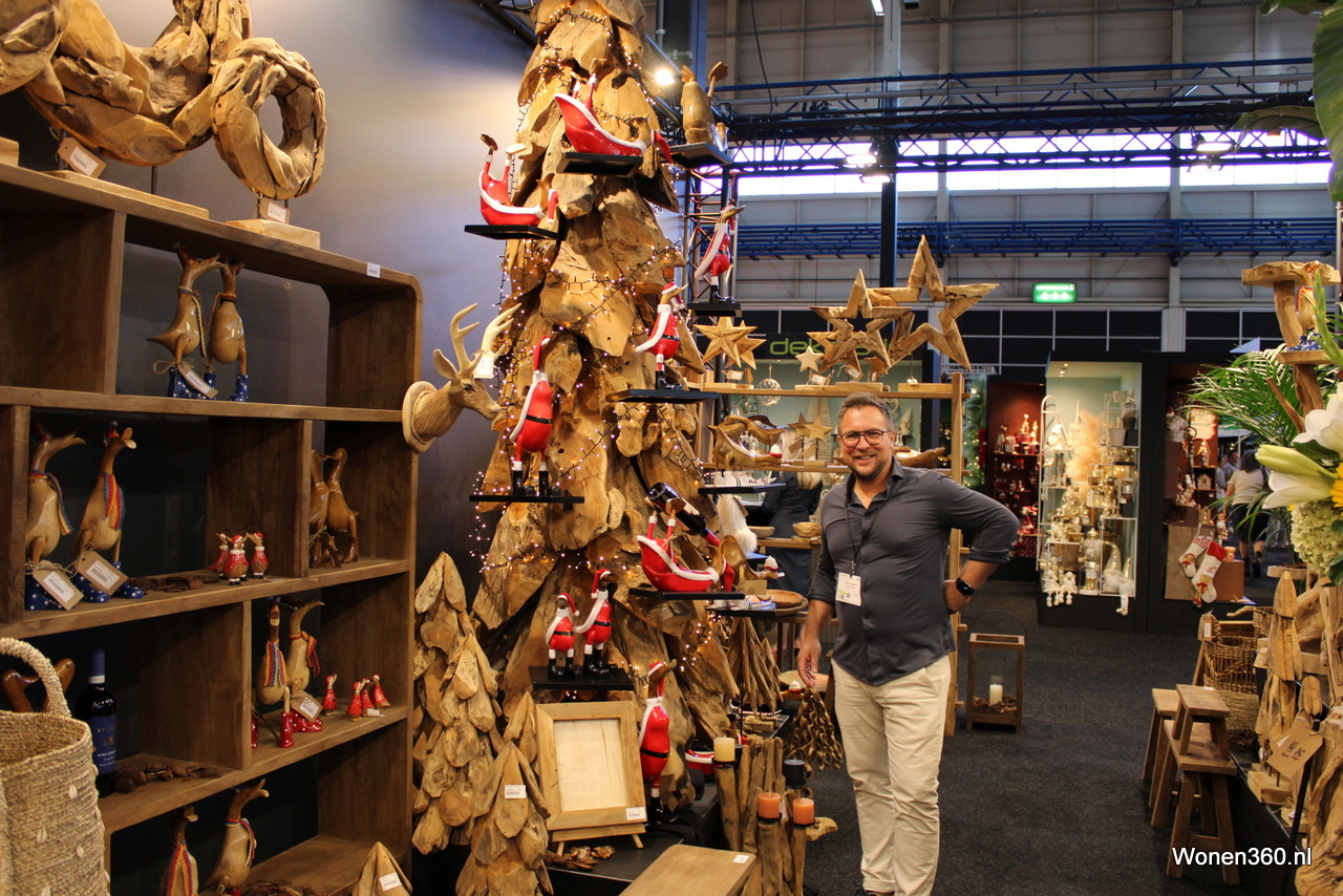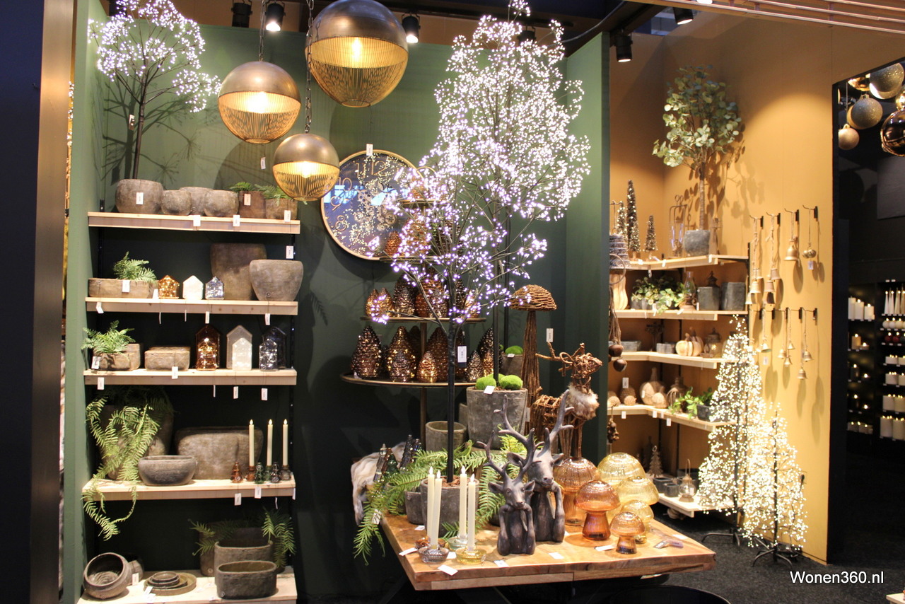 Niet alleen de lichten vallen op bij de stand van Evergreen Home Decoration, ook de kerstaccessoires zijn in trek.