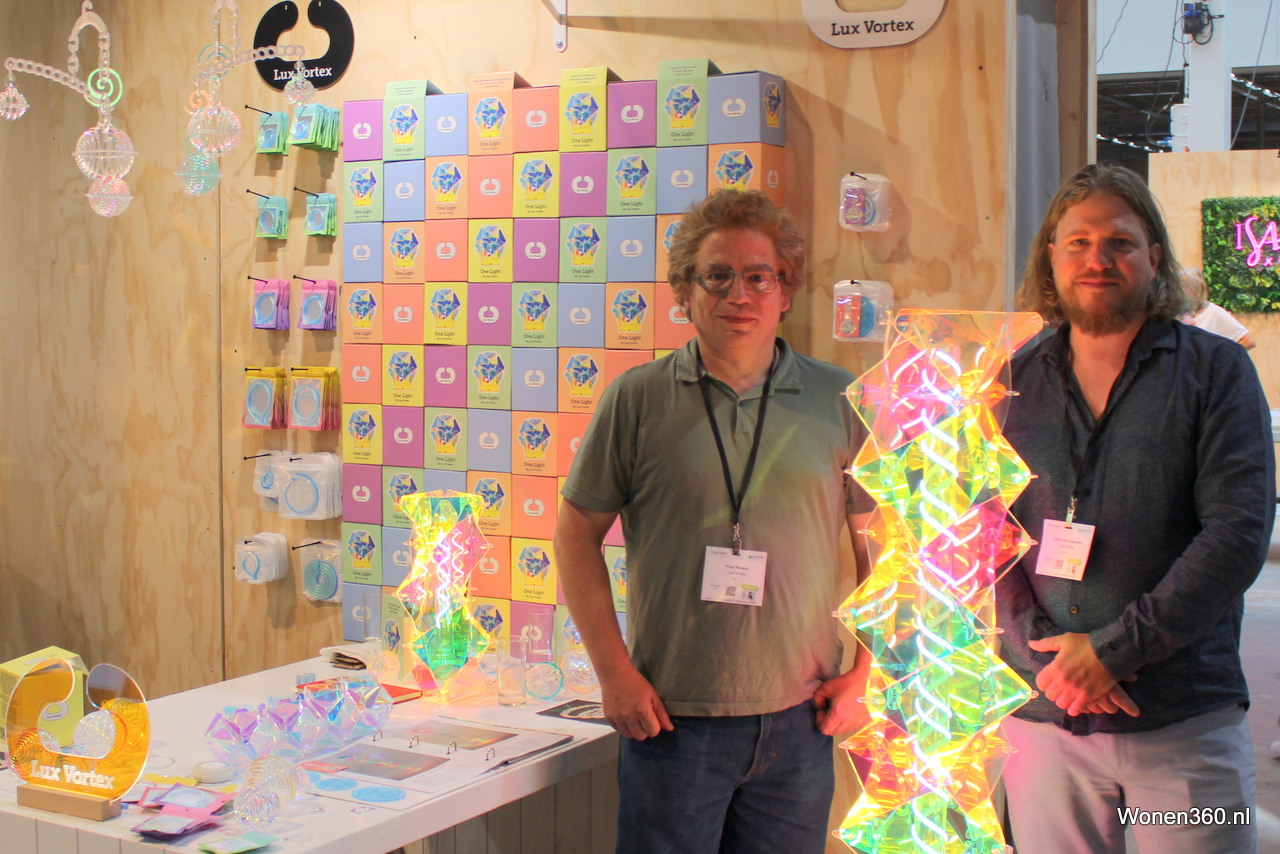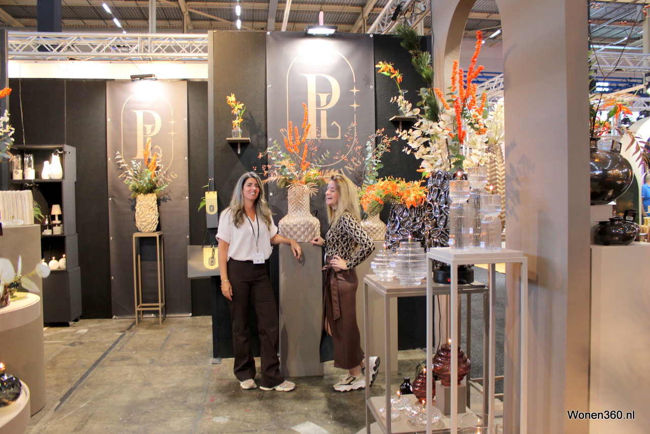 Bij de stand van Peri Living wordt er hard gelachen door Malu en Sandra Verwijmeren. Er is een nieuwe Diamond collectie, maar ook een wind- en olielampen collectie.