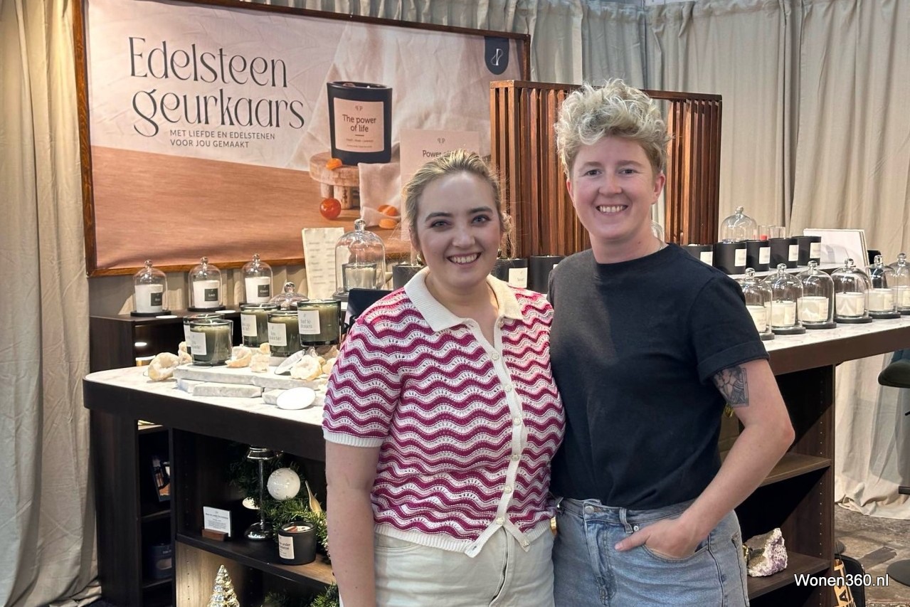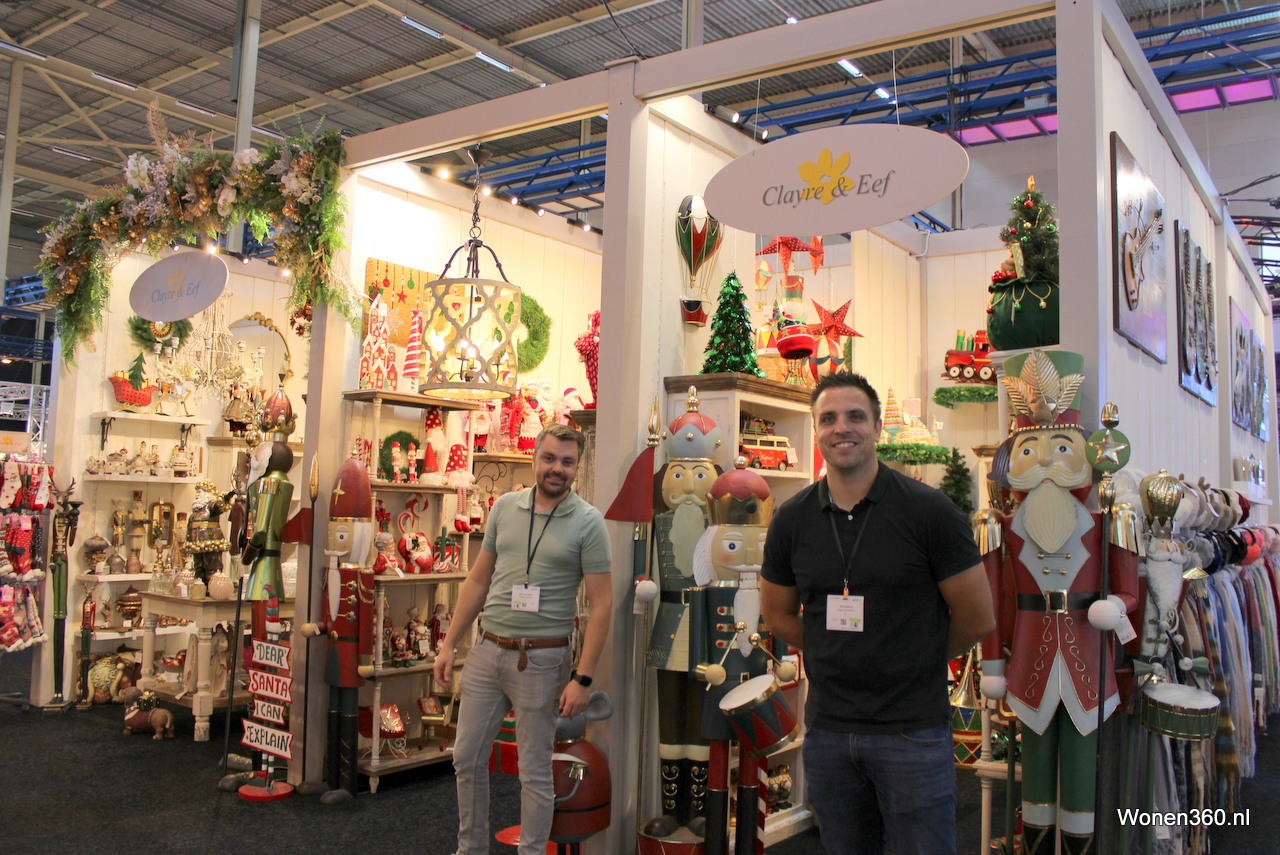 Stijn van Helden (links) en Eef Kusters bij de Clayre & Eef stand. Stijn gaf aan dat de kerstcollectie elk jaar uitbreidt, omdat ze zelf fan zijn van Kerst.