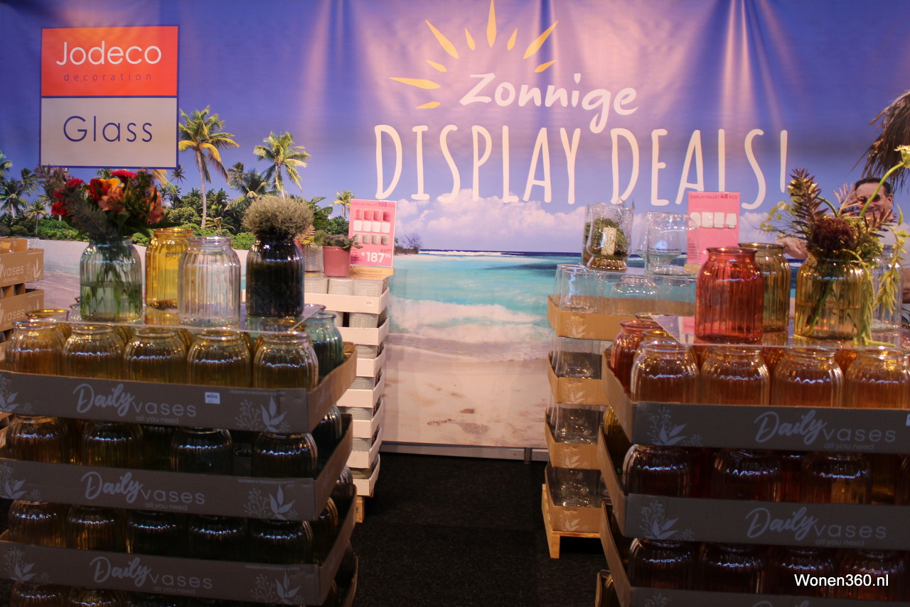 Jodeco Glass staat met een grote stand op de vakbeurs en veel verschillende kleuren.