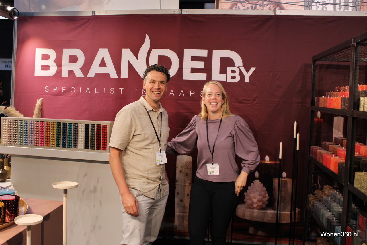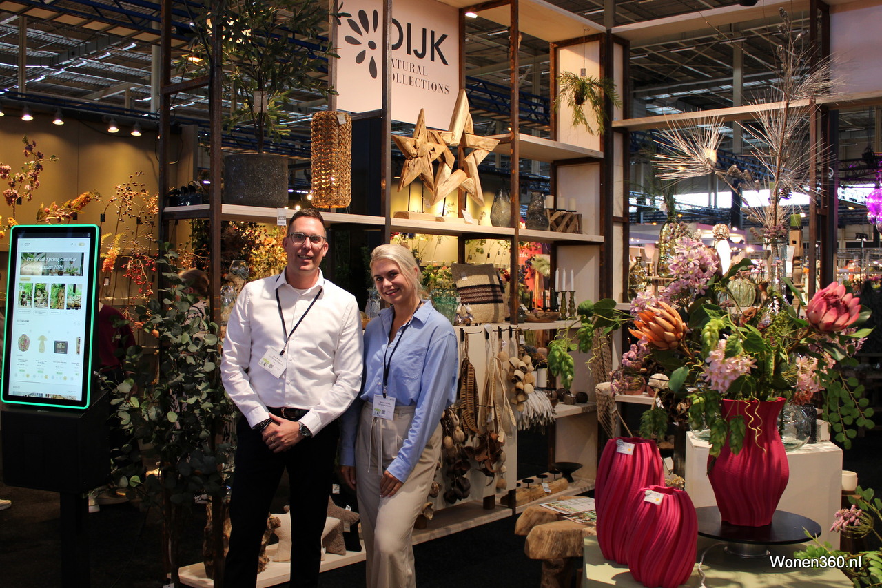 Roel Bouwes (links) en Sharon de Vries waren met Dijk Natural Collections aanwezig met de nieuwe 3D vazen van keramiek, Essentials, Spring summer en A.W.X. collecties.