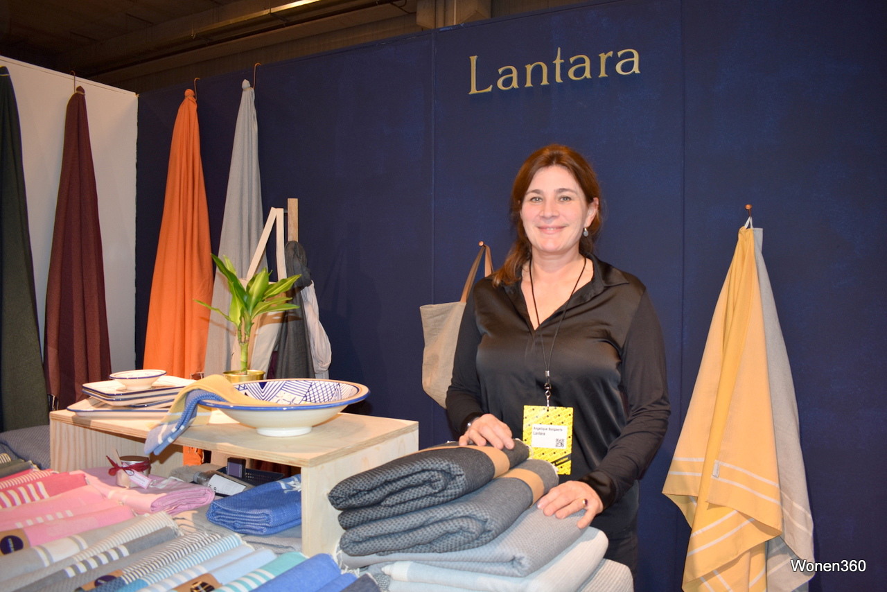 Lobna Terzi, Erdem Terzio en Wanda Florijn in de stand van Melli Mello, o.a. gespecialiseerd in dekbedovertrekken en sierkussens.