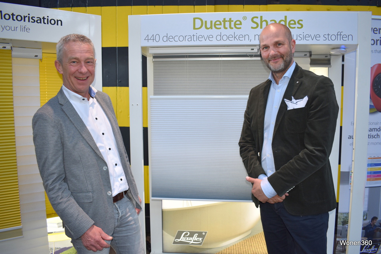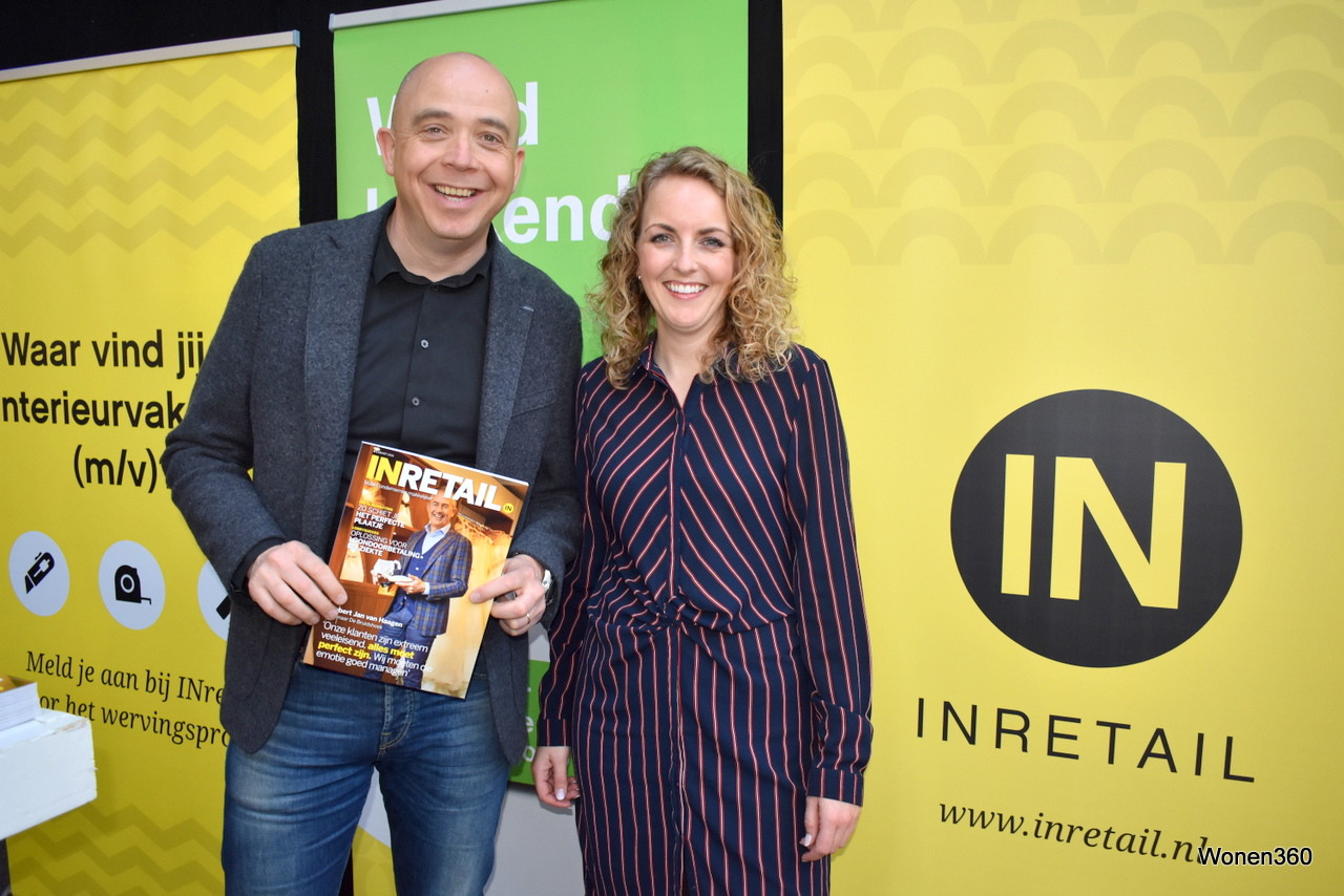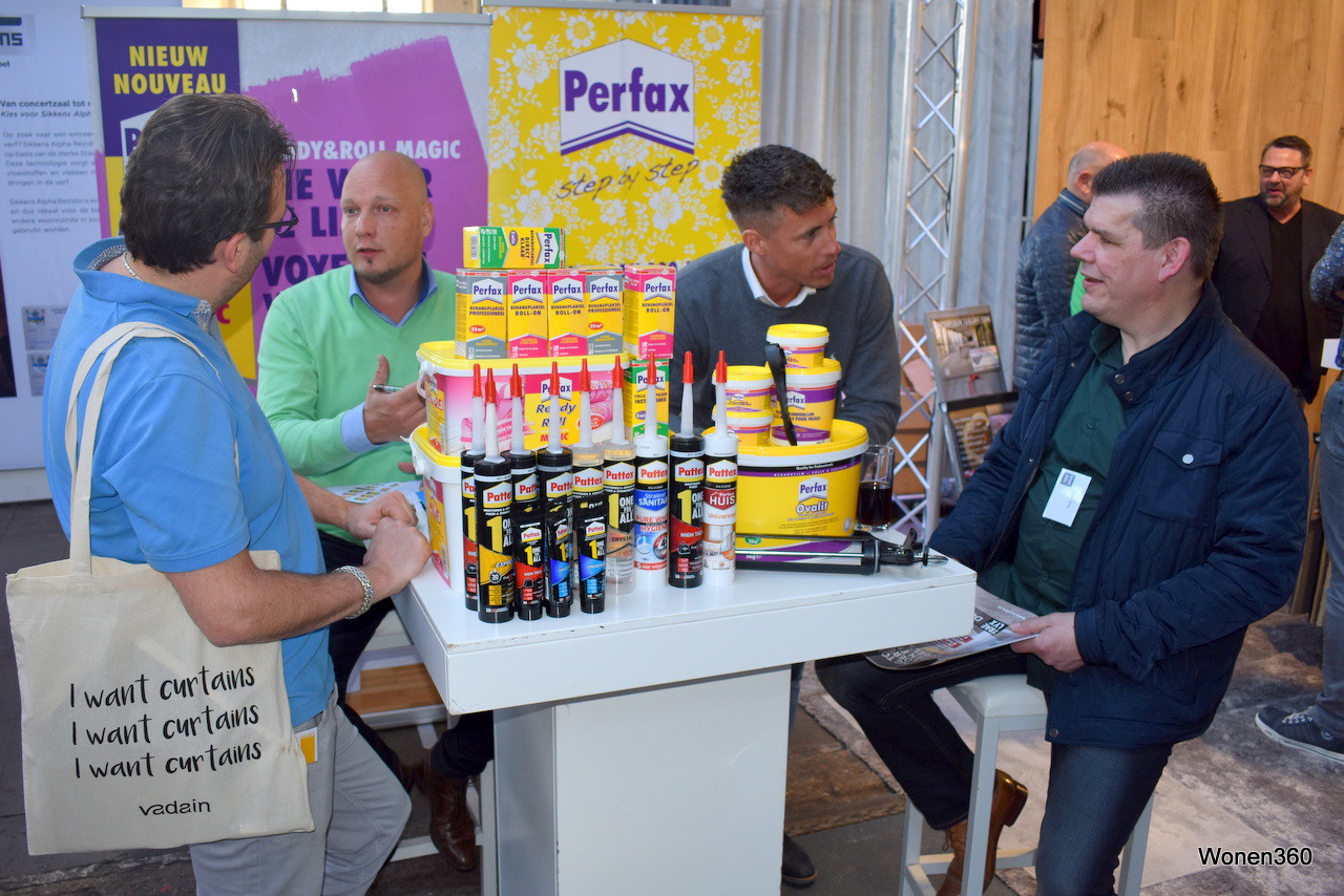 Lachende gezichten in de stand van Forinn (“partner voor vloer en raam”) en Groothandel (in woning en projectinrichting) Bosgoed.