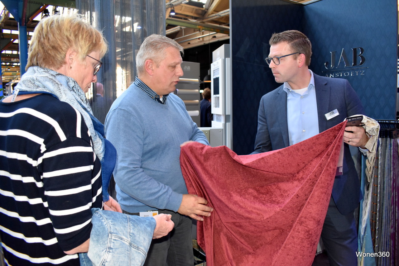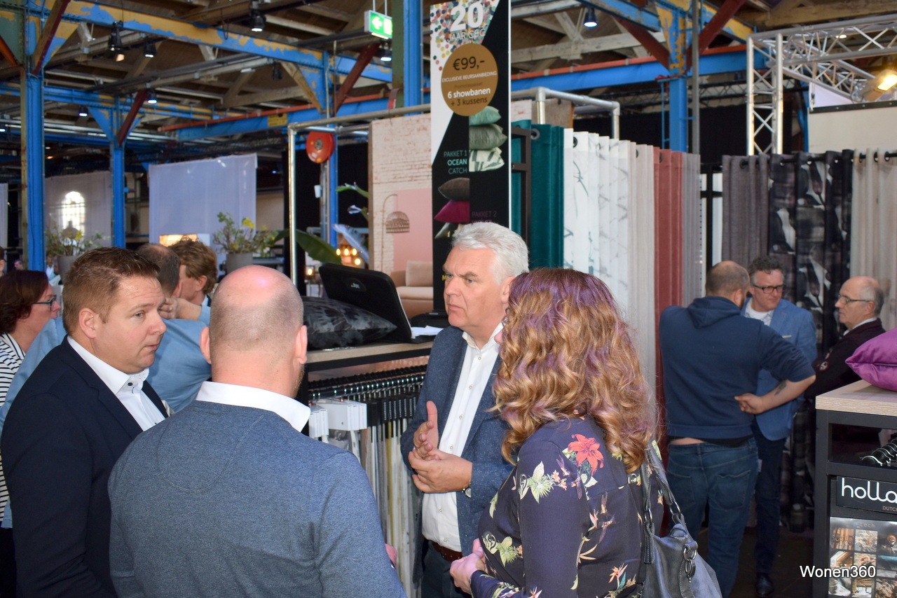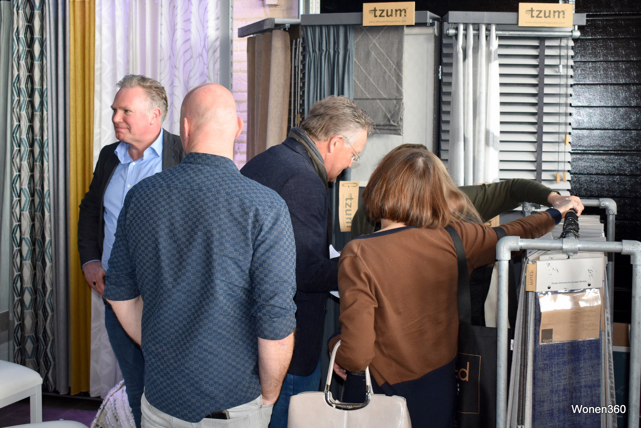 Een blik op de stand van Holland Haag. Het bedrijf biedt een breed assortiment van overgordijnen tot vitrage.