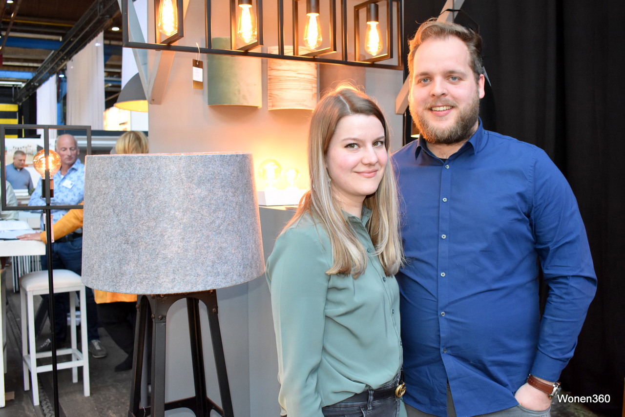 Angelique Braam met haar vriend Brent Semmelink van Van de Heg, gespecialiseerd in armaturen en lichtbronnen.