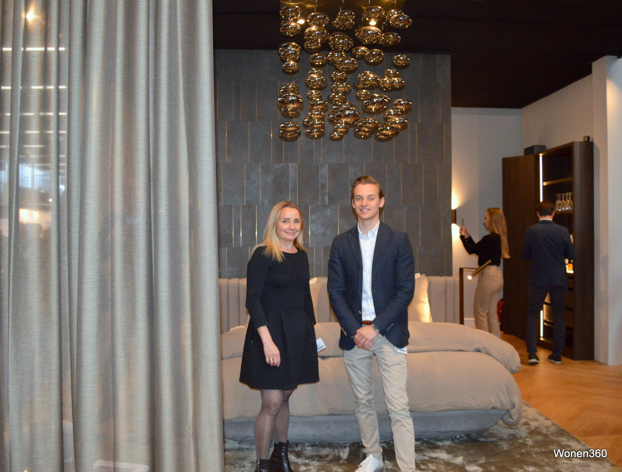 Suzanne en Thomas in The Concept Store bij het bed van Freshbed, een slaapsysteem met klimaattechnologie en actieve ventilatie. De ruimte is samen met interieurontwerper Robert Kolenik ingericht.