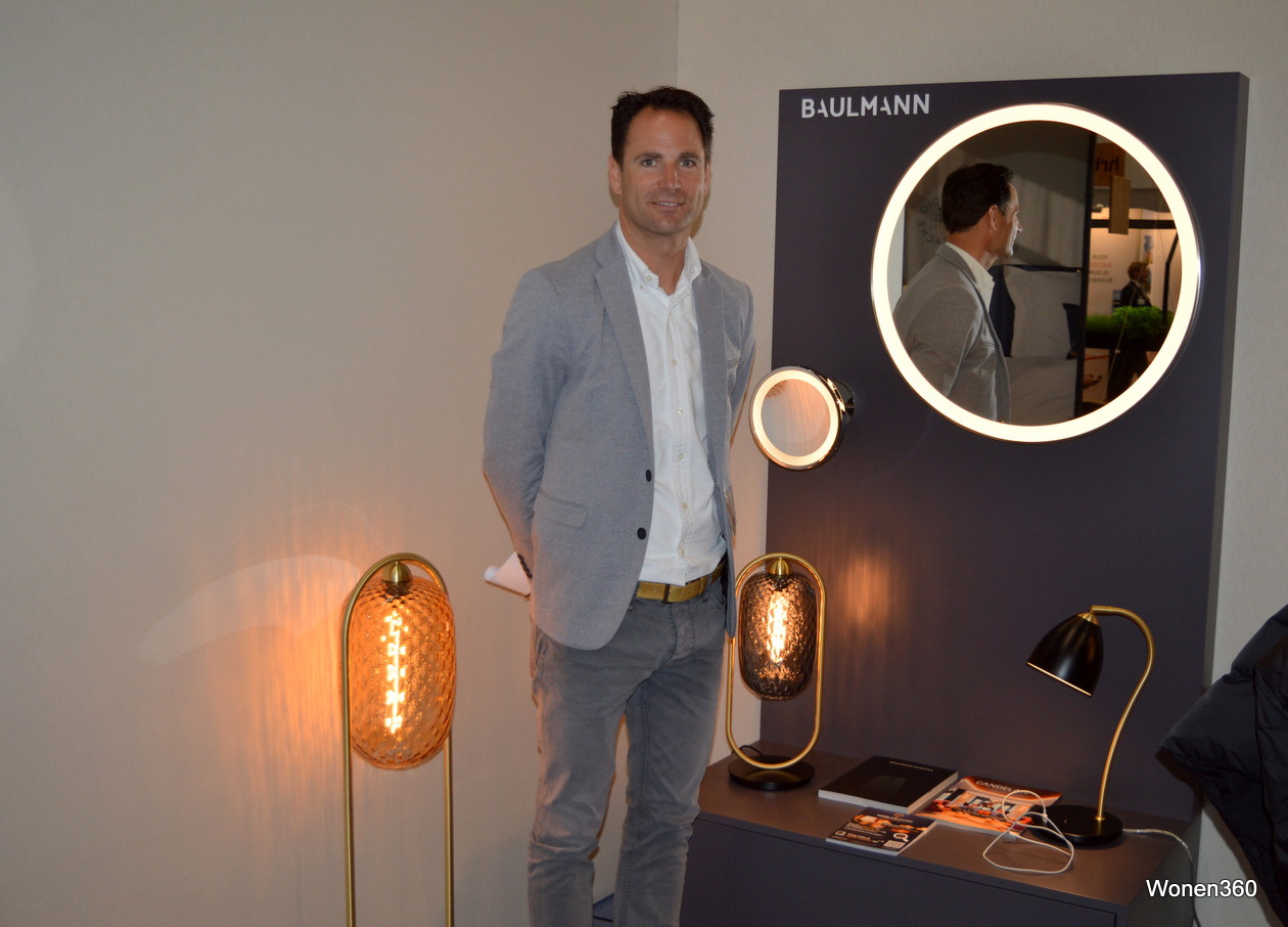 Stijn in de stand van Baulmann, fabrikant in de decoratieve verlichtingsindustrie voor hotels, restaurants, kantoren en rust- en verzorgingstehuizen.