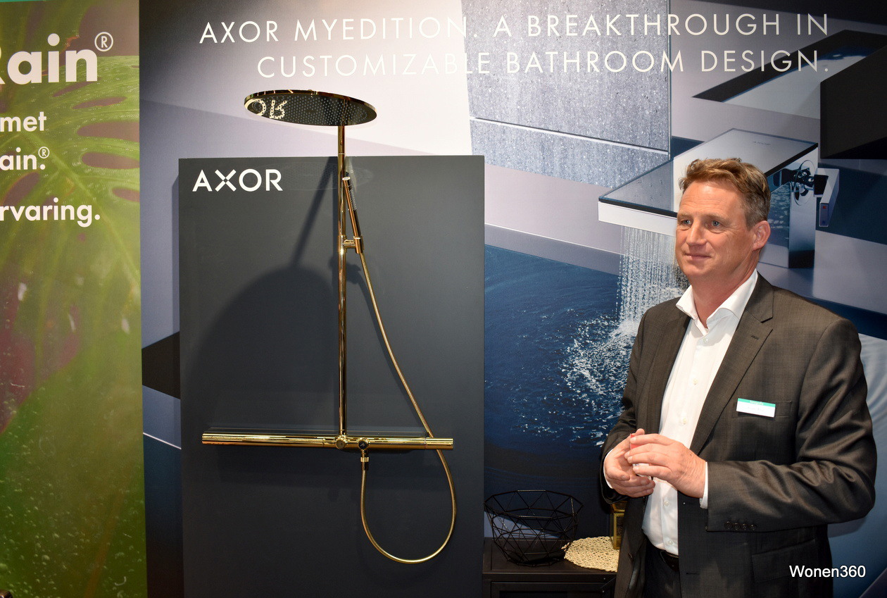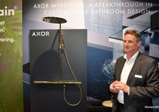 Arjan Knul met de laatste sanitairnoviteiten van Hansgrohe voor de hotelbranche.