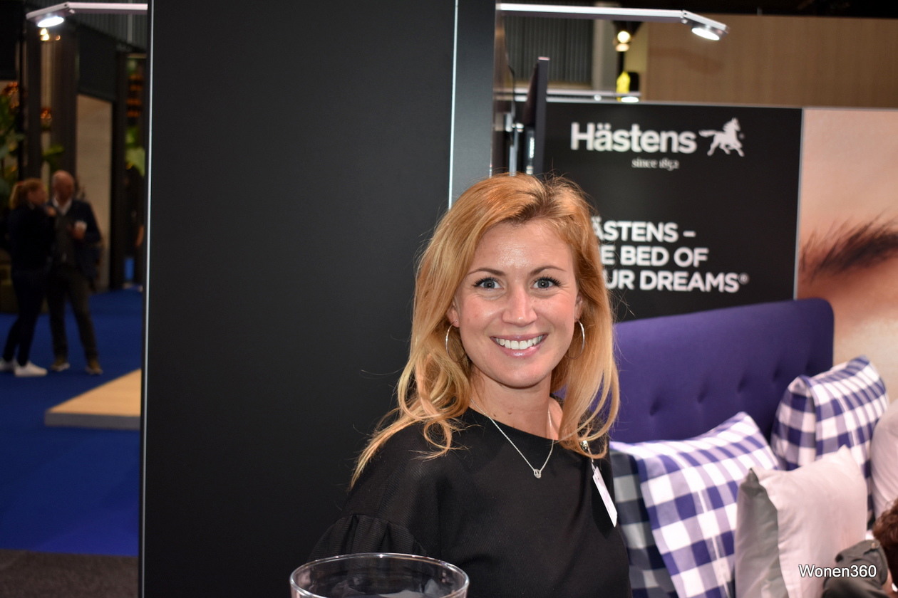 Linnéa van Hästens was ook aanwezig om de voordelen van de Hästnens bedden te laten zien in de RAI voor de hotelbranche.