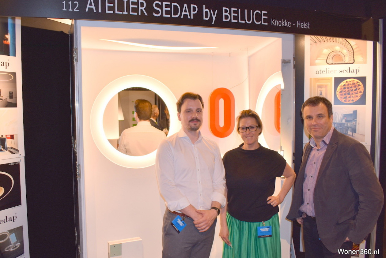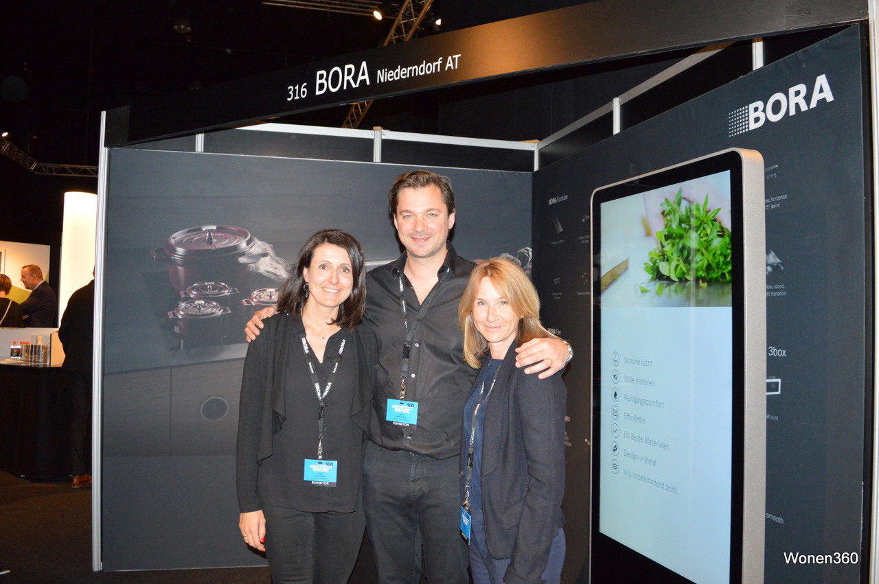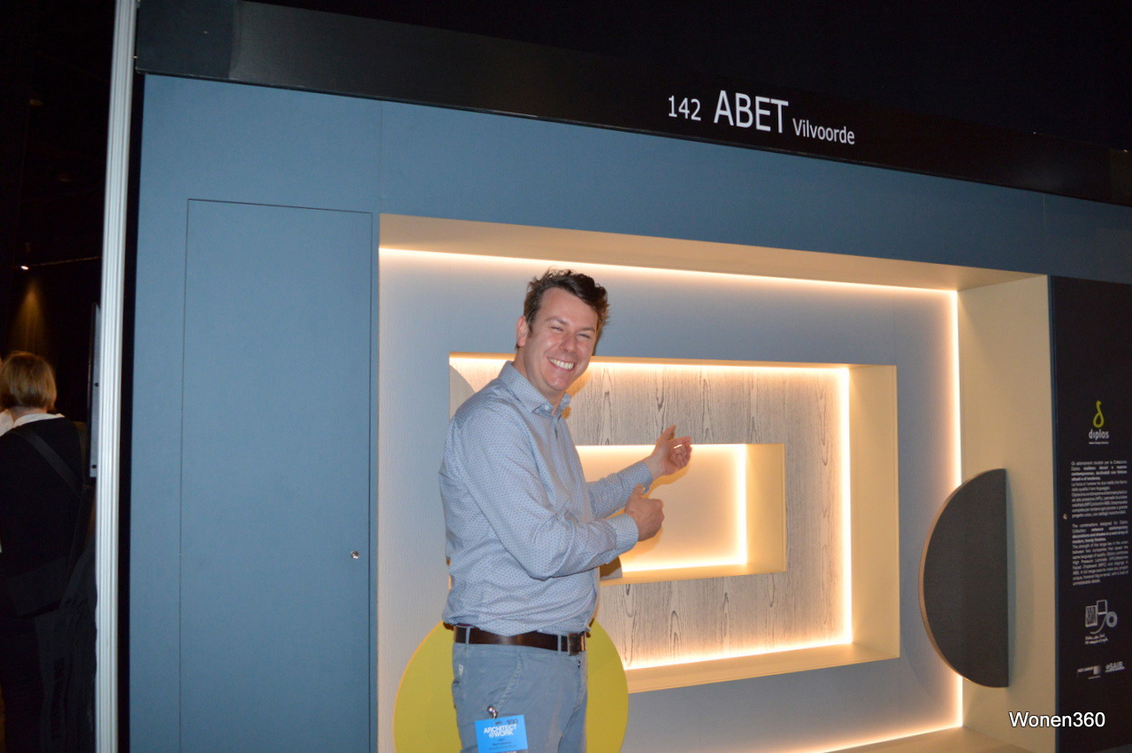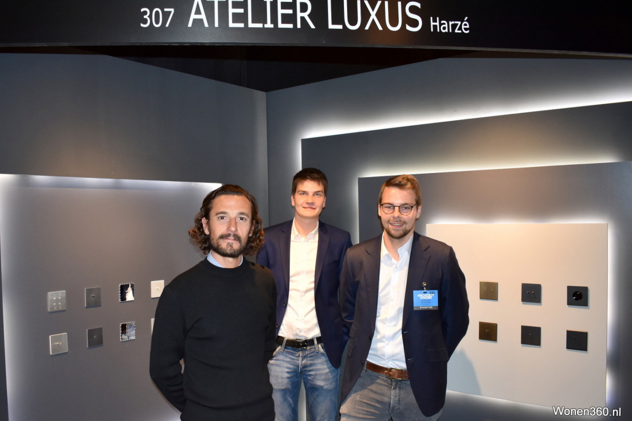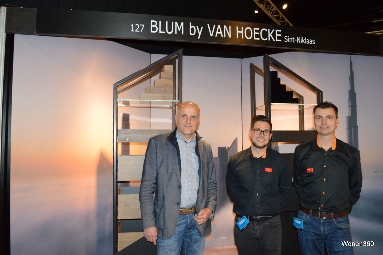 Links Arjan, Mattia (midden) en Martijn (rechts) van de o.a. ladekastenfabrikant Van Hoecke presenteerden de innovatieve kast, waar lades omgetoverd kunnen wordt tot een 'traptrede'.