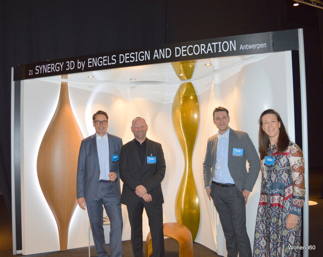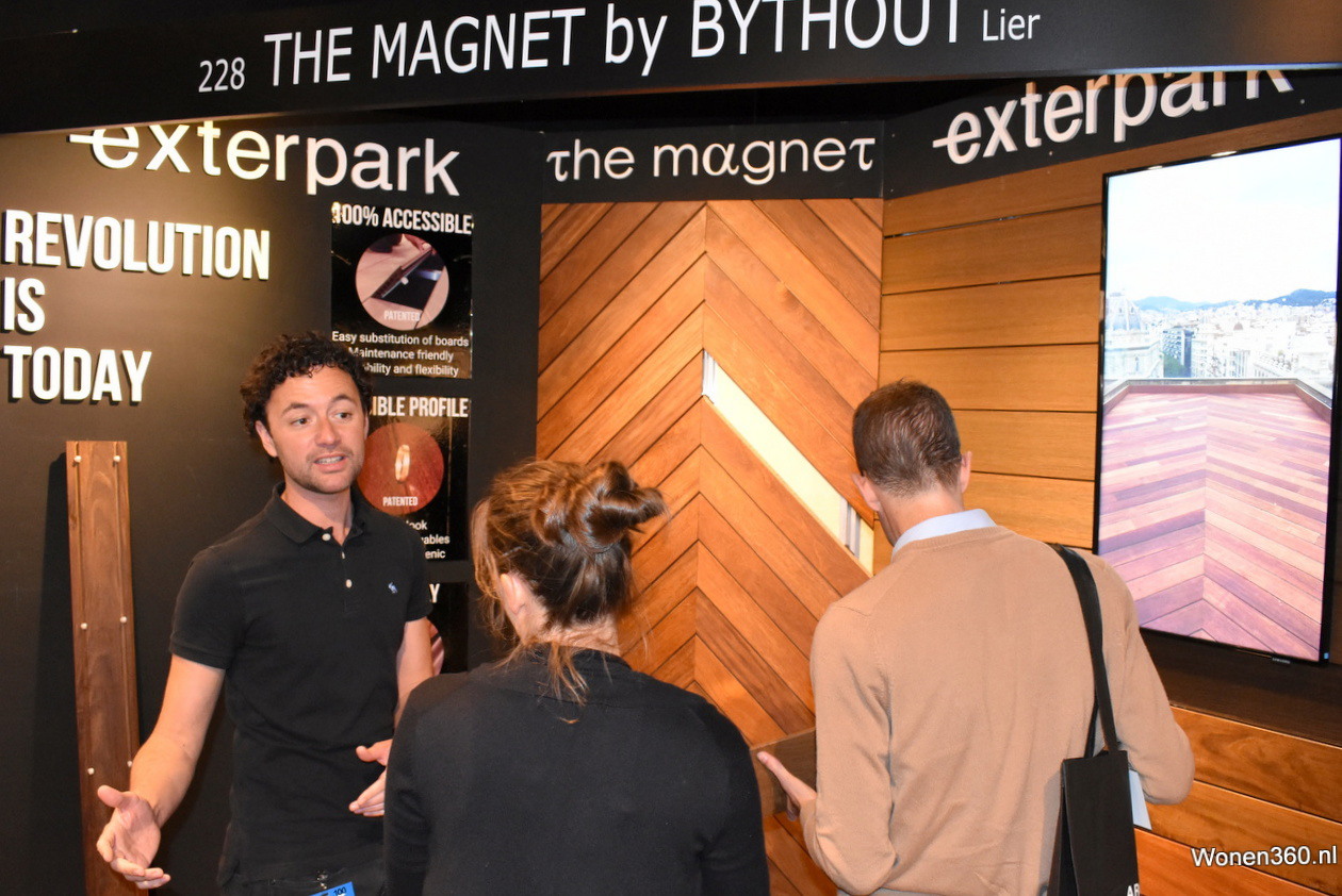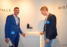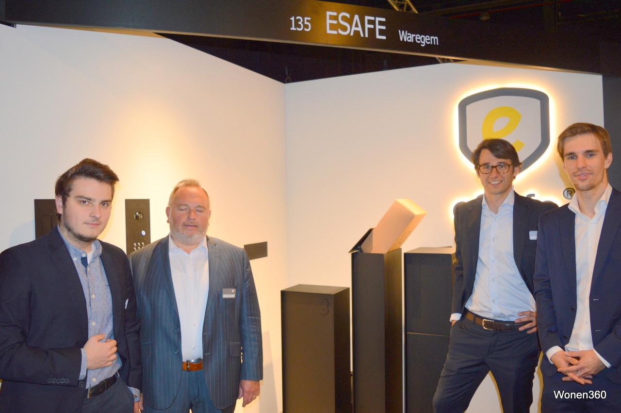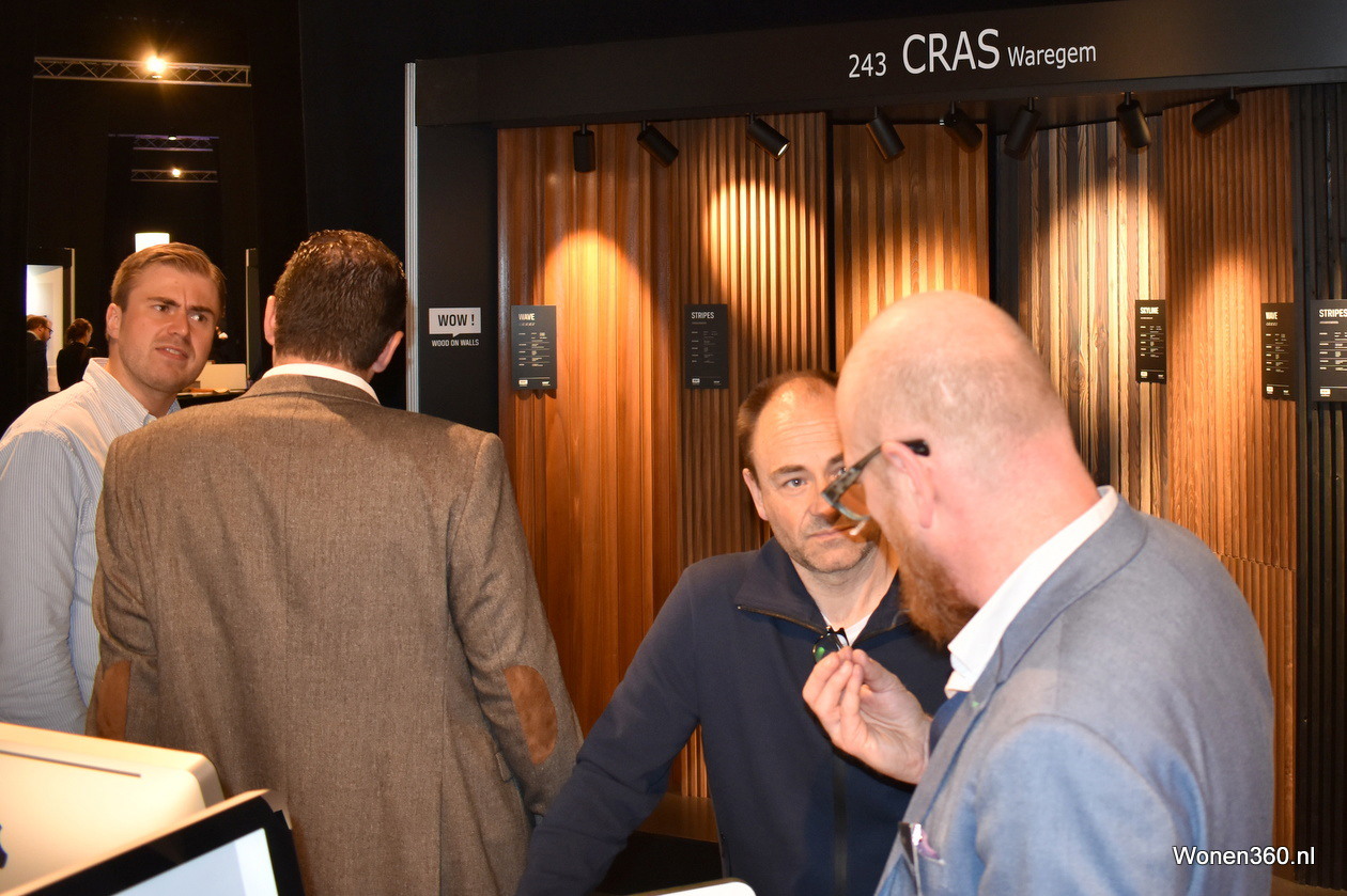Links Arjan, Mattia (midden) en Martijn (rechts) van de o.a. ladekastenfabrikant Van Hoecke presenteerden de innovatieve kast, waar lades omgetoverd kunnen wordt tot een 'traptrede'.