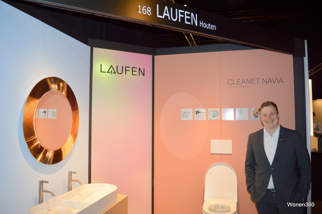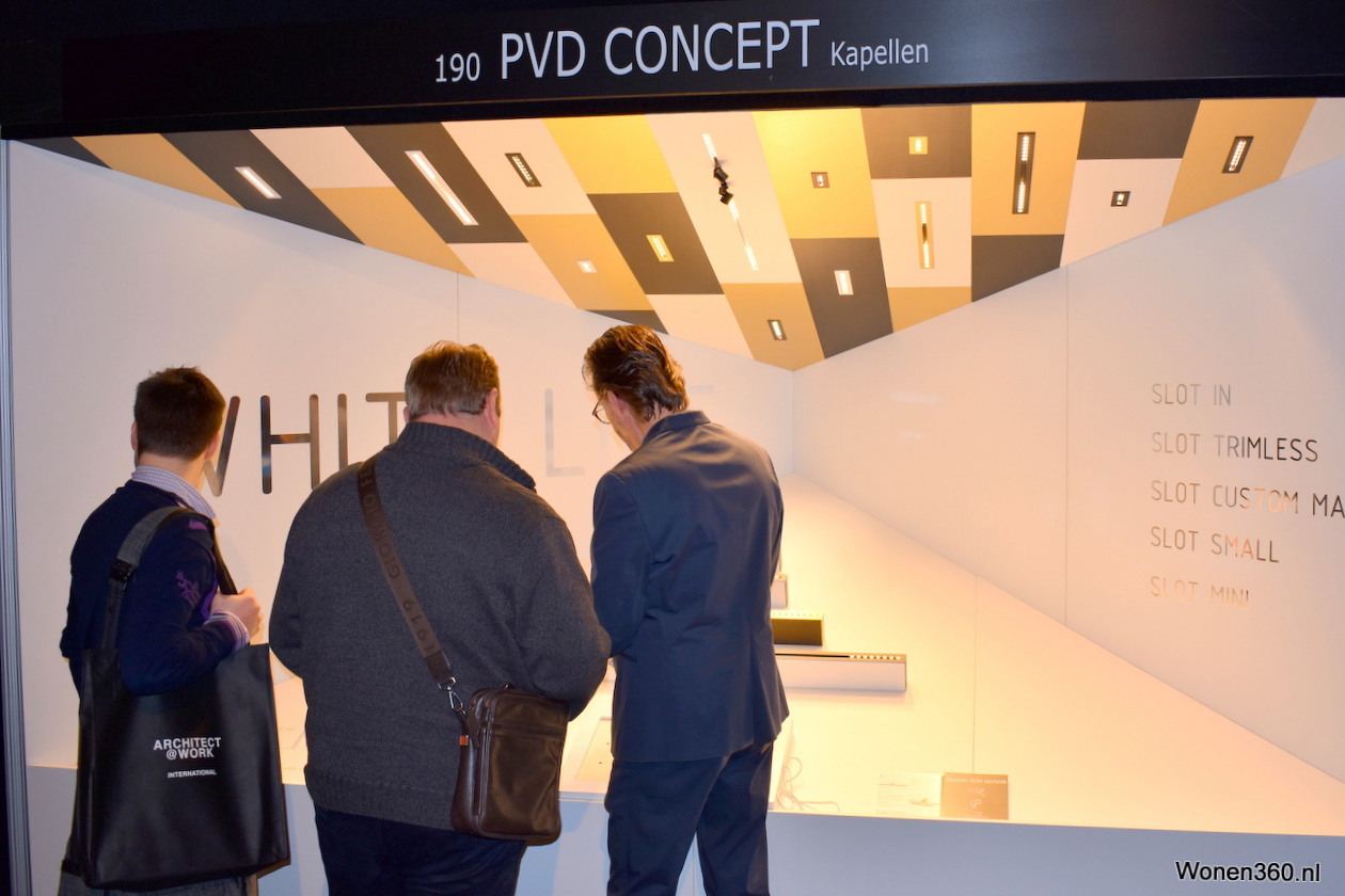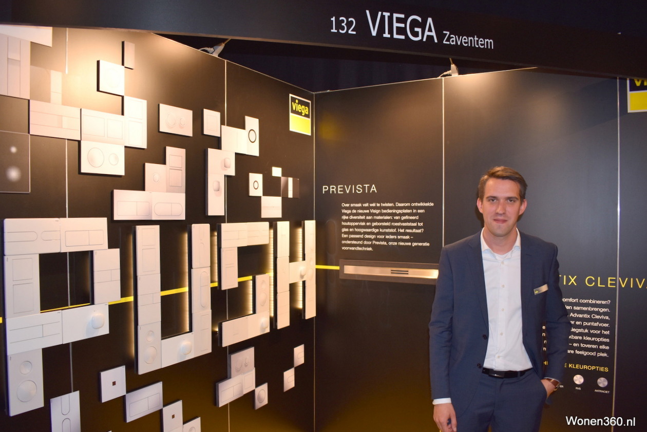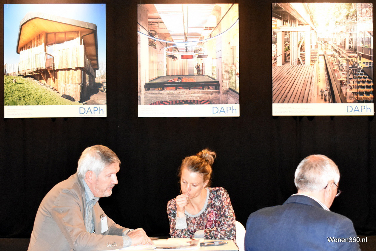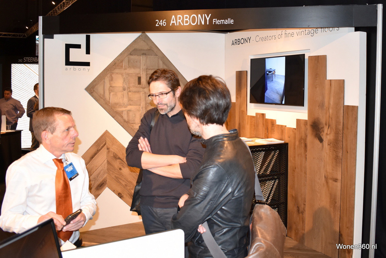 Links Arjan, Mattia (midden) en Martijn (rechts) van de o.a. ladekastenfabrikant Van Hoecke presenteerden de innovatieve kast, waar lades omgetoverd kunnen wordt tot een 'traptrede'.