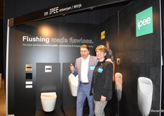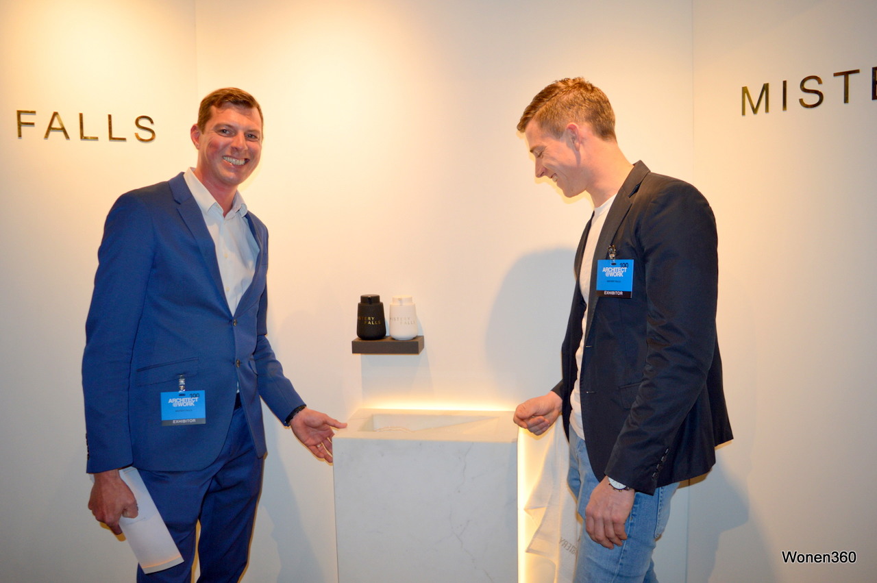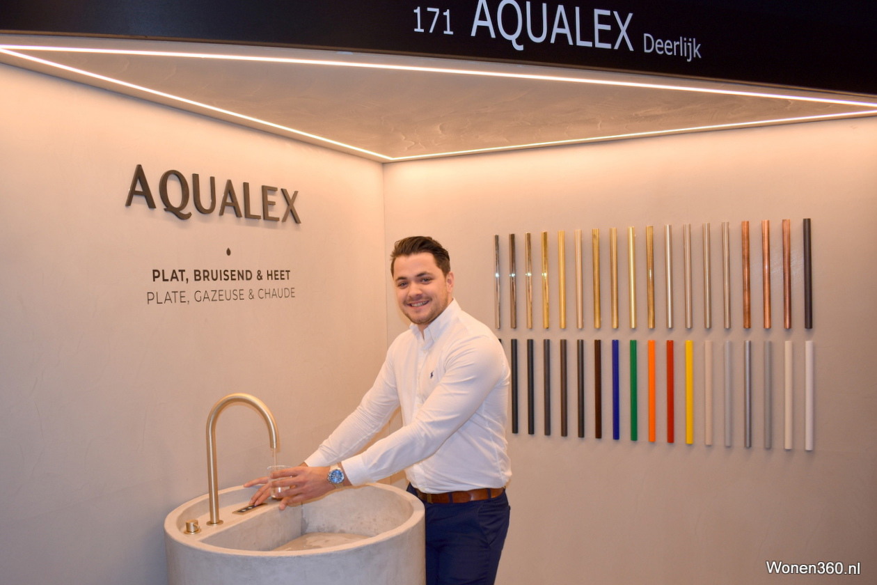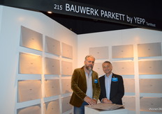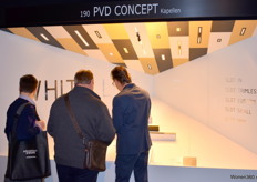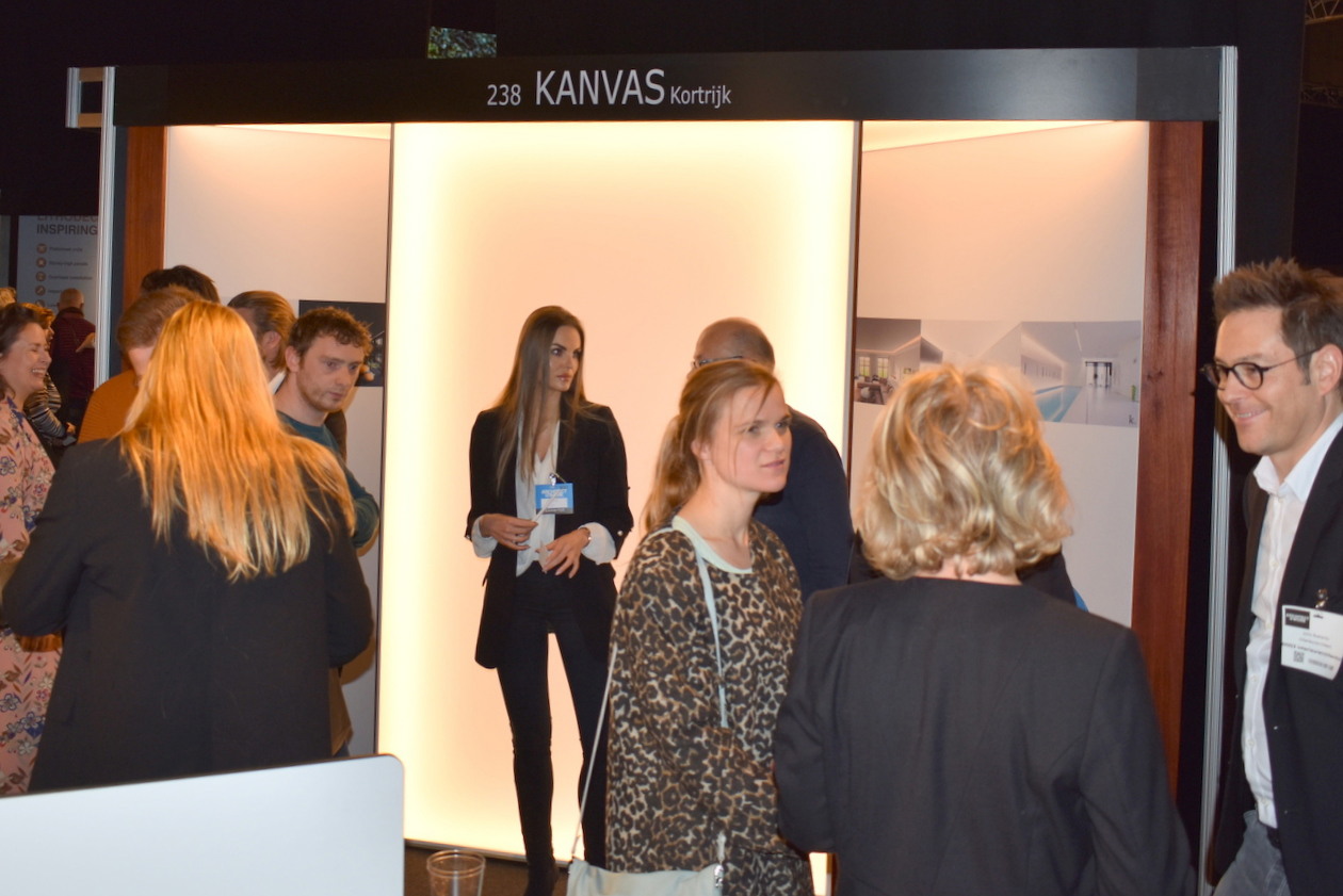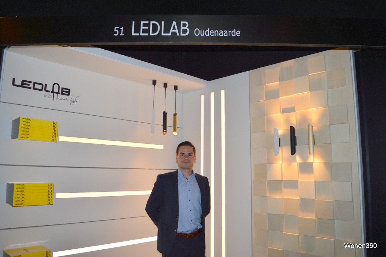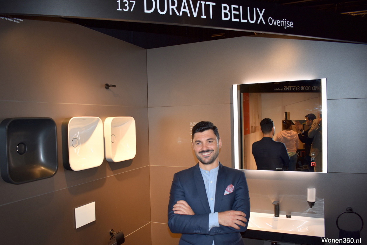 Links Arjan, Mattia (midden) en Martijn (rechts) van de o.a. ladekastenfabrikant Van Hoecke presenteerden de innovatieve kast, waar lades omgetoverd kunnen wordt tot een 'traptrede'.